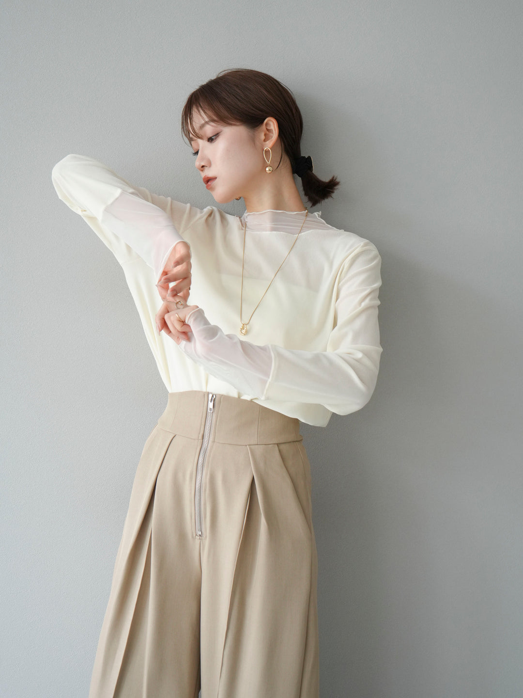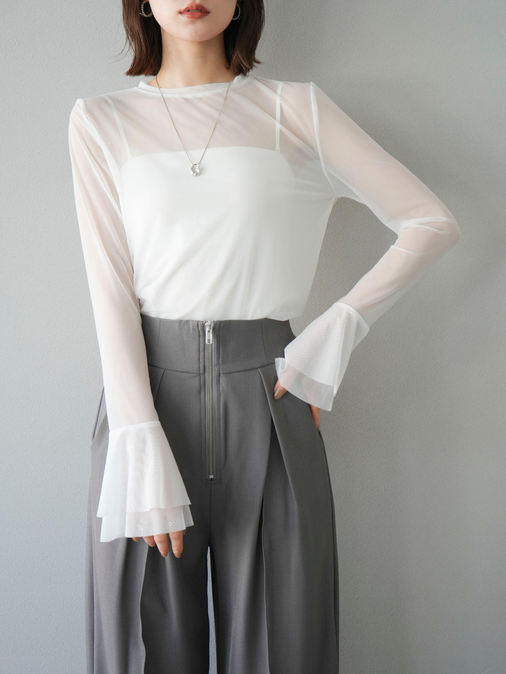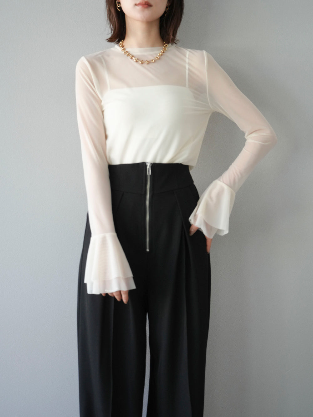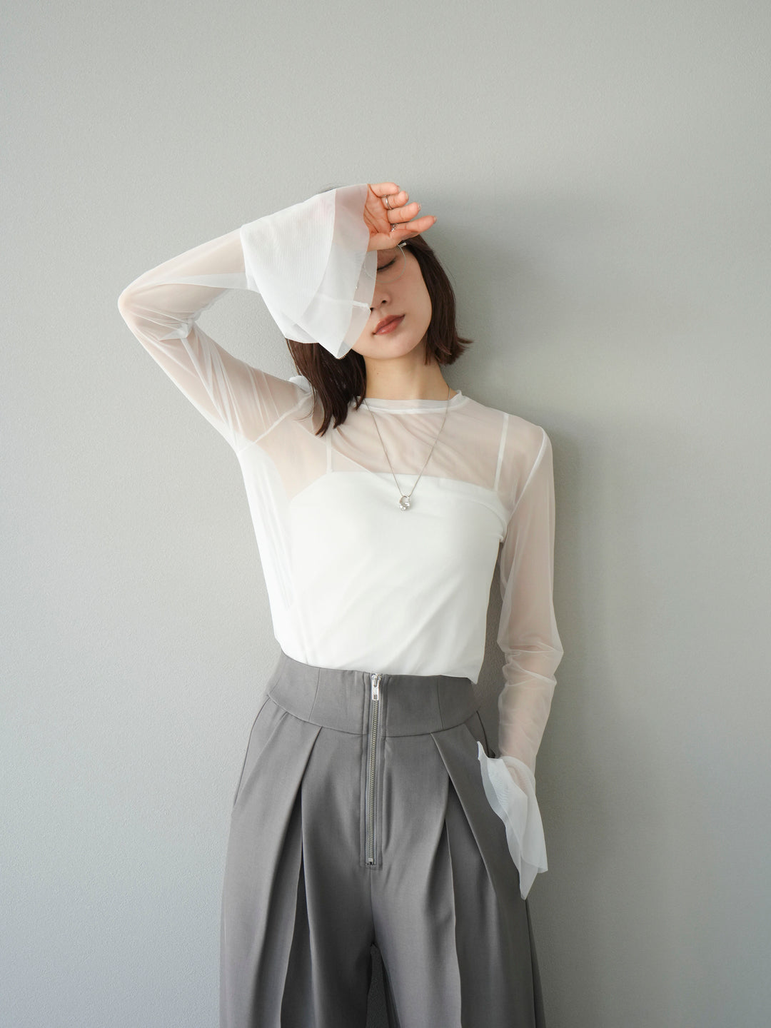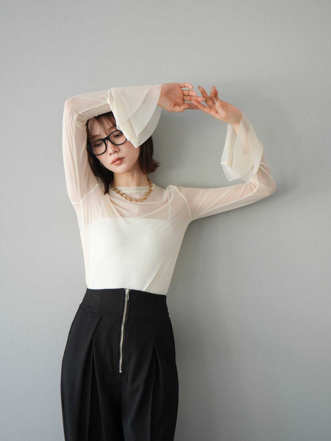 [予約]フレアロングスリーブパワーメッシュトップス/アイボリー