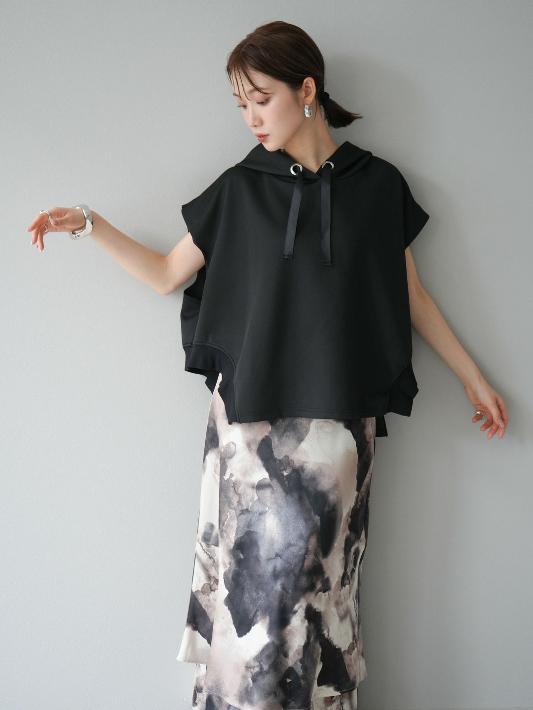 [予約]アシンメトリードルマンバックZIPフーディー/ブラック