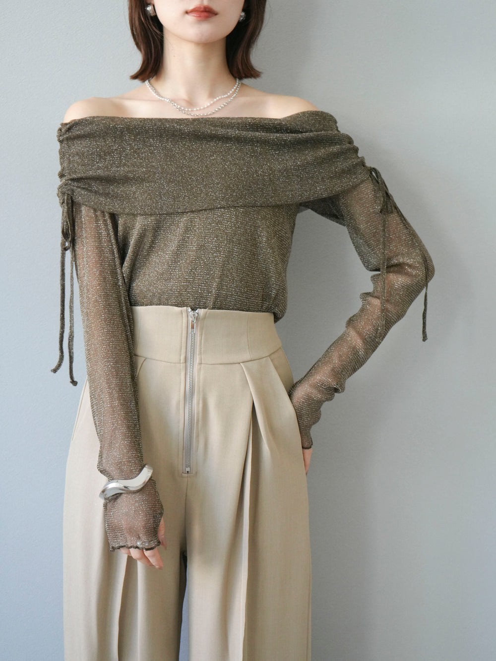 [予約]ラメシアーウィンガーホールオフショルトップス/ブラウン