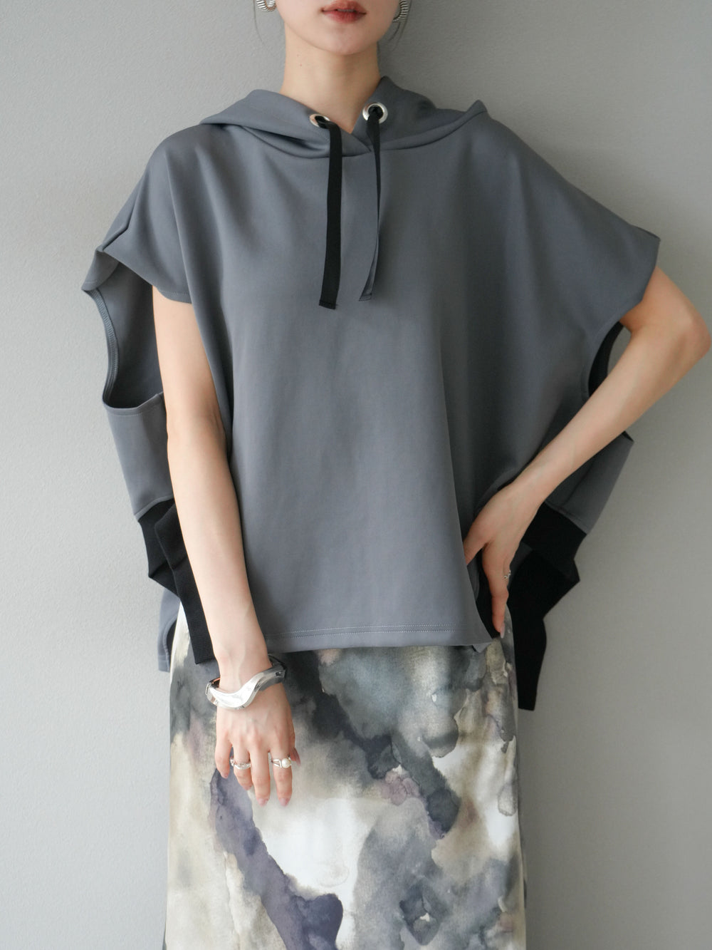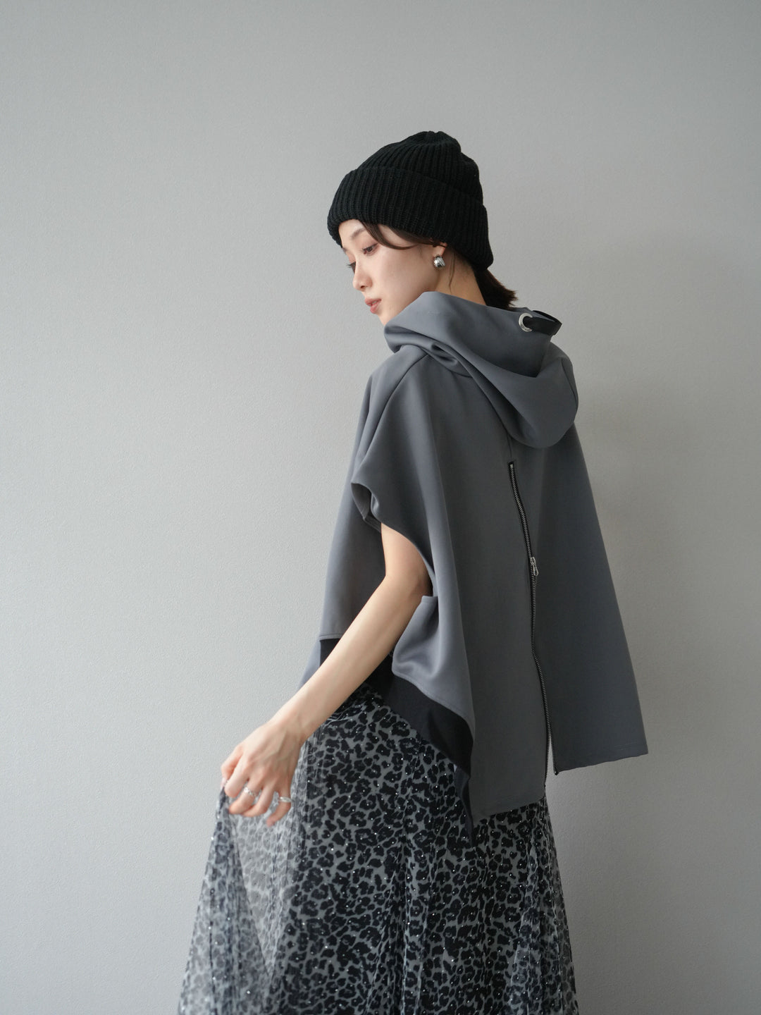 [予約]アシンメトリードルマンバックZIPフーディー/チャコール