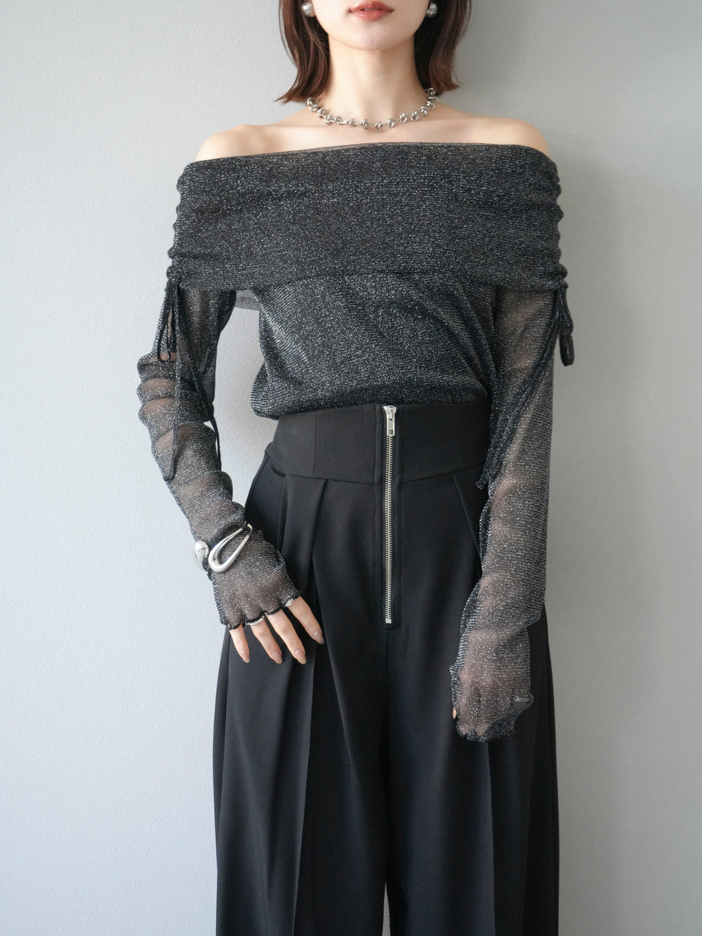 [予約]ラメシアーウィンガーホールオフショルトップス/ブラック