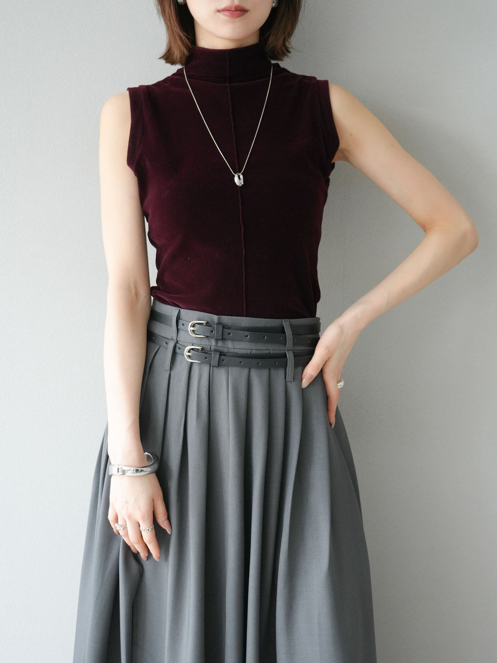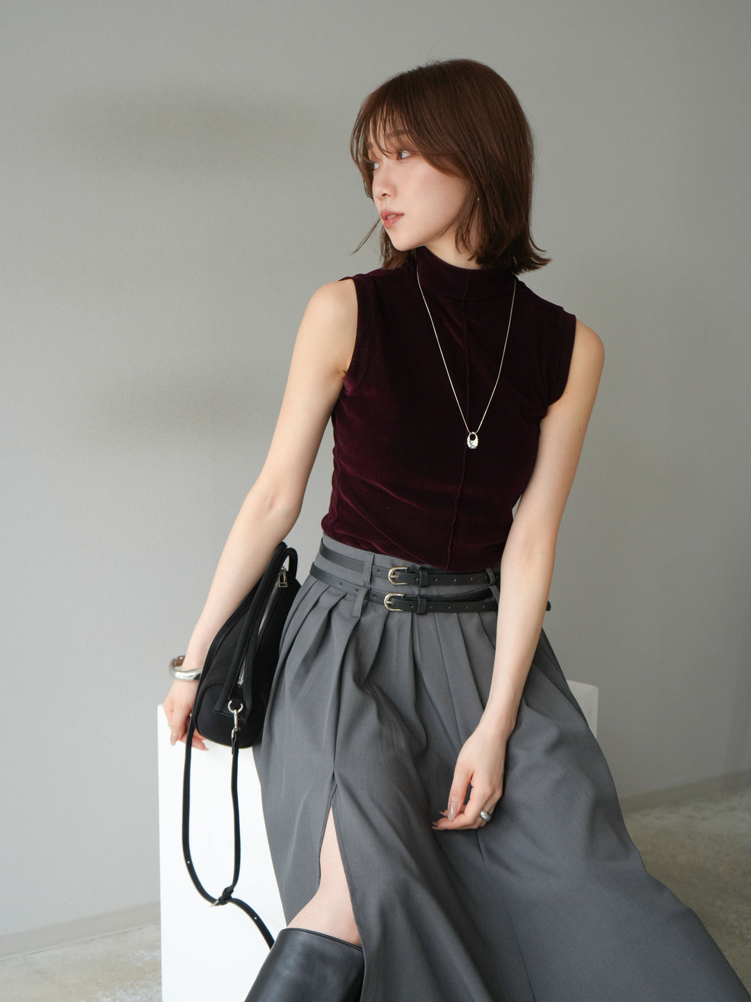 [予約]シアーベロアプチネックノースリーブトップス/ボルドー