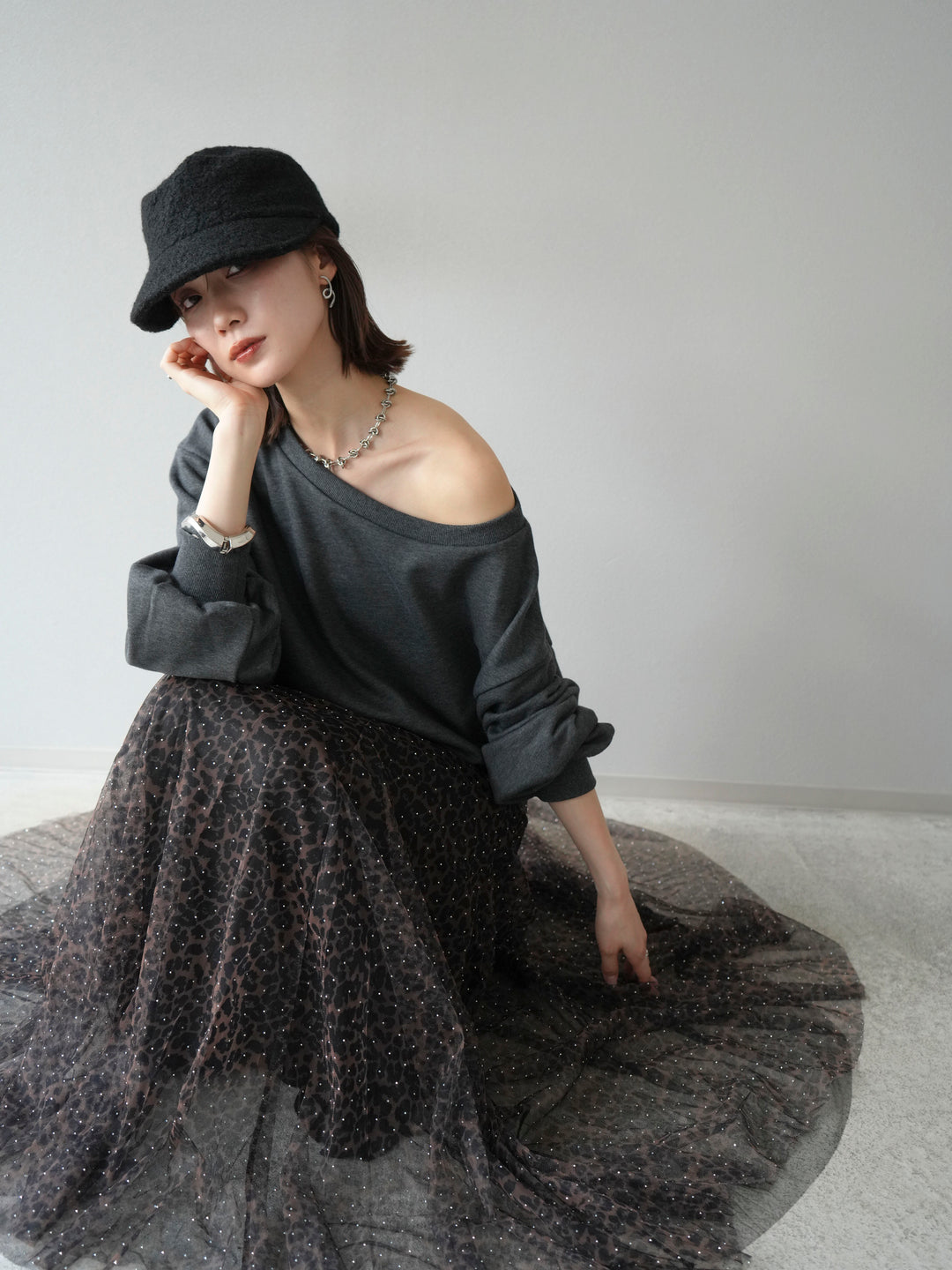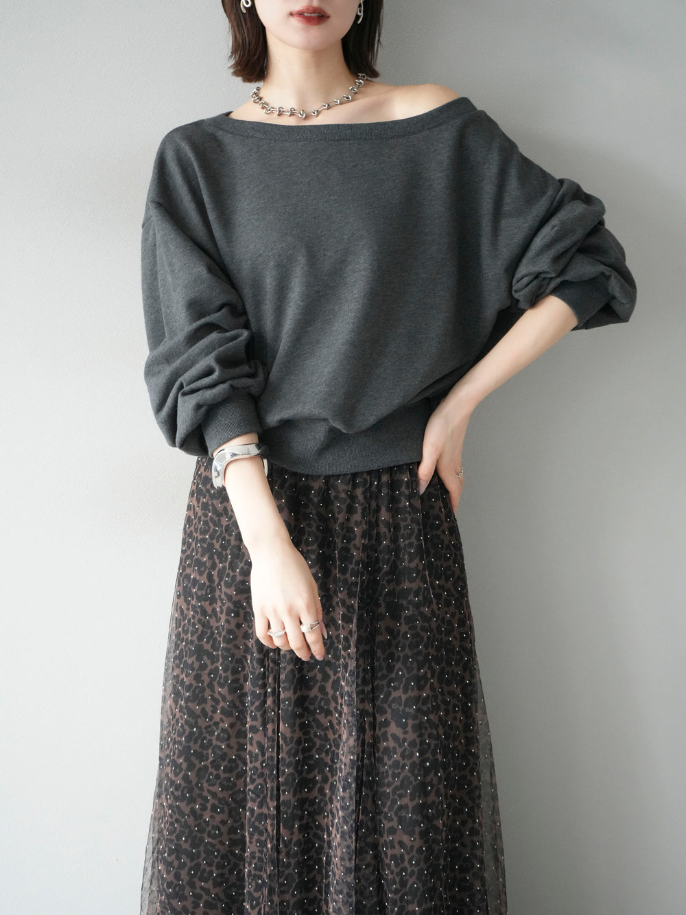[予約]オフショルスウェットプルオーバー/杢グレー