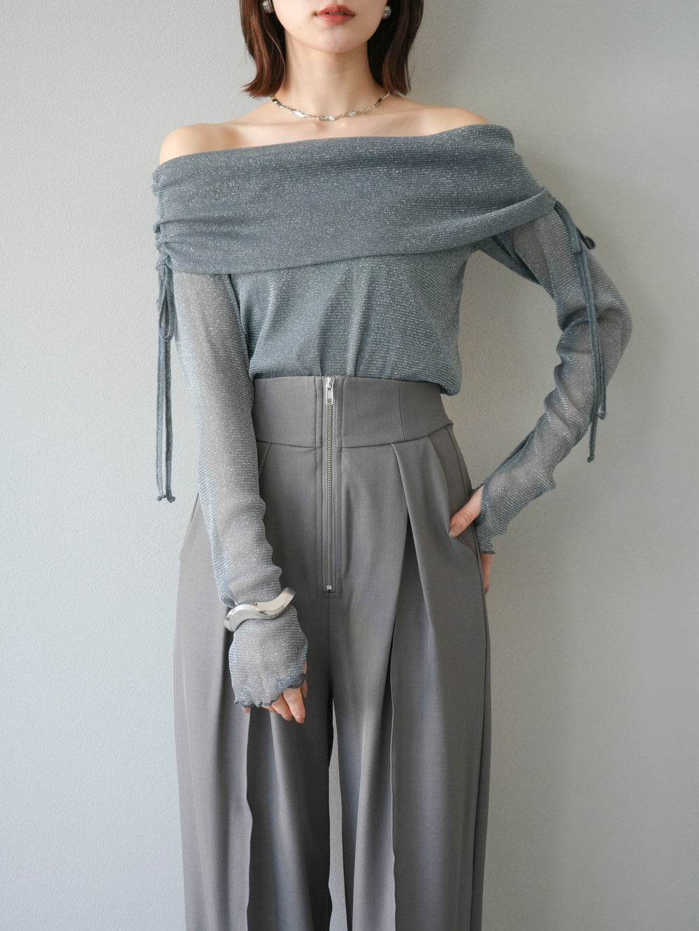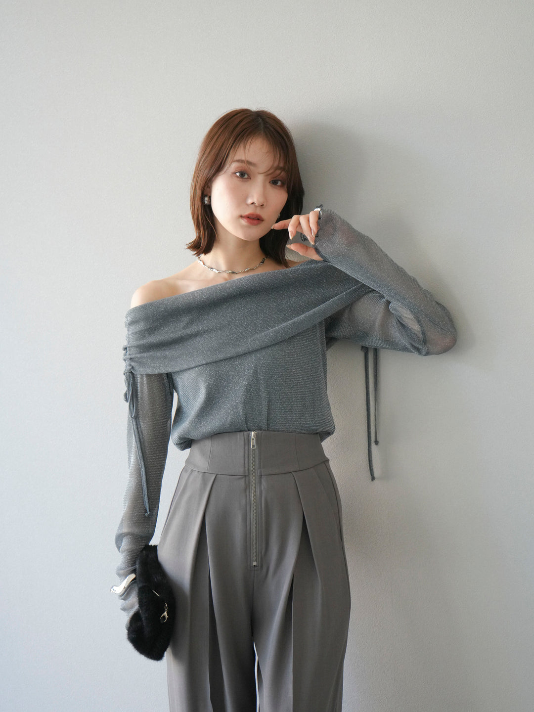[予約]ラメシアーウィンガーホールオフショルトップス/チャコール