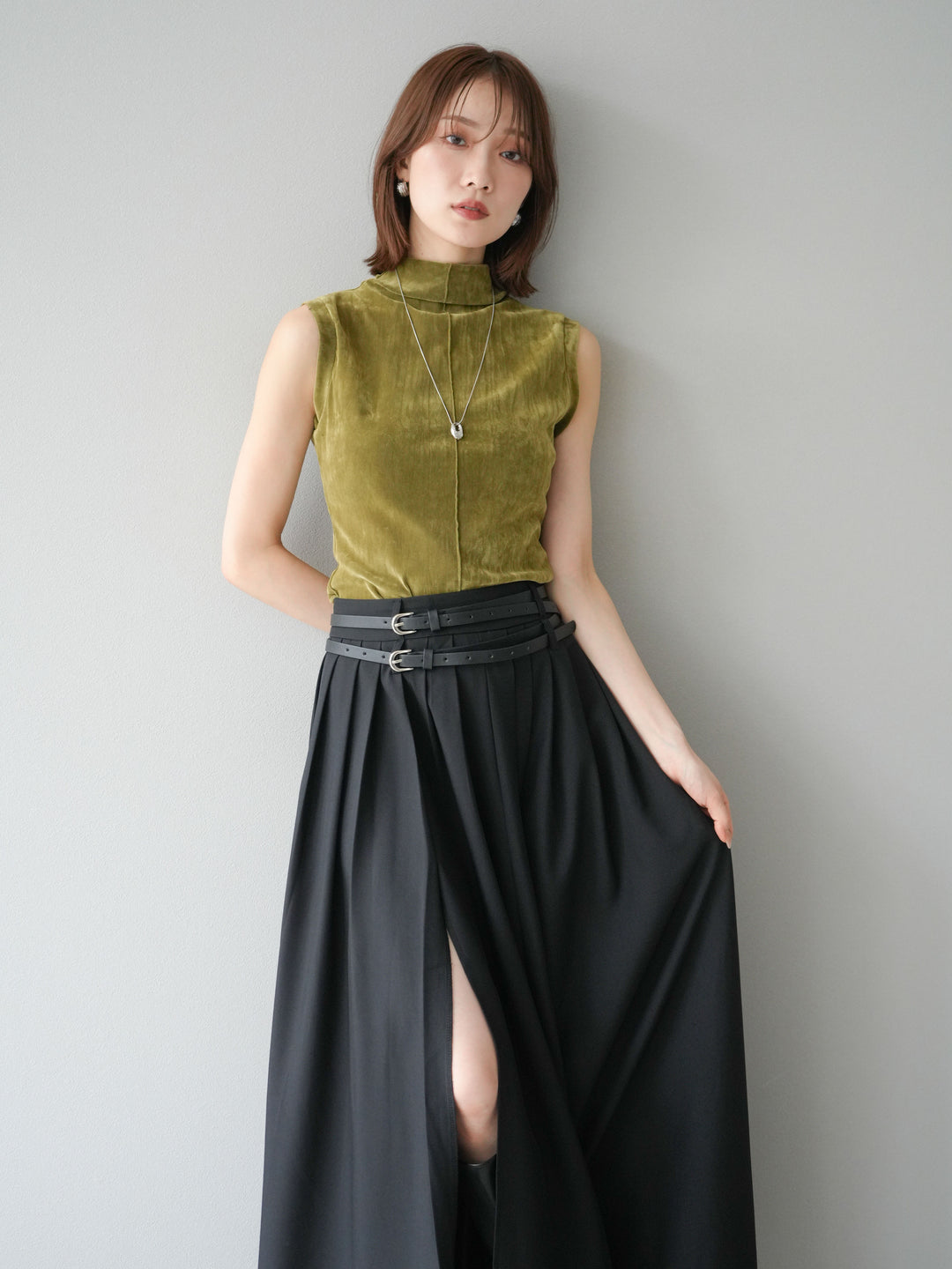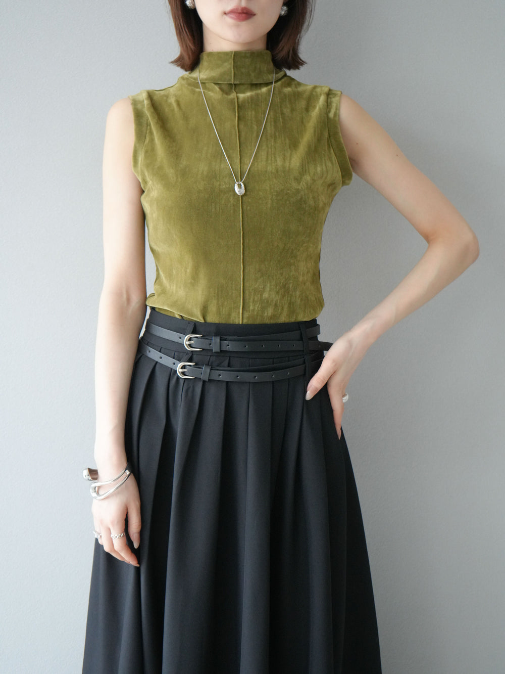 [予約]シアーベロアプチネックノースリーブトップス/カーキ