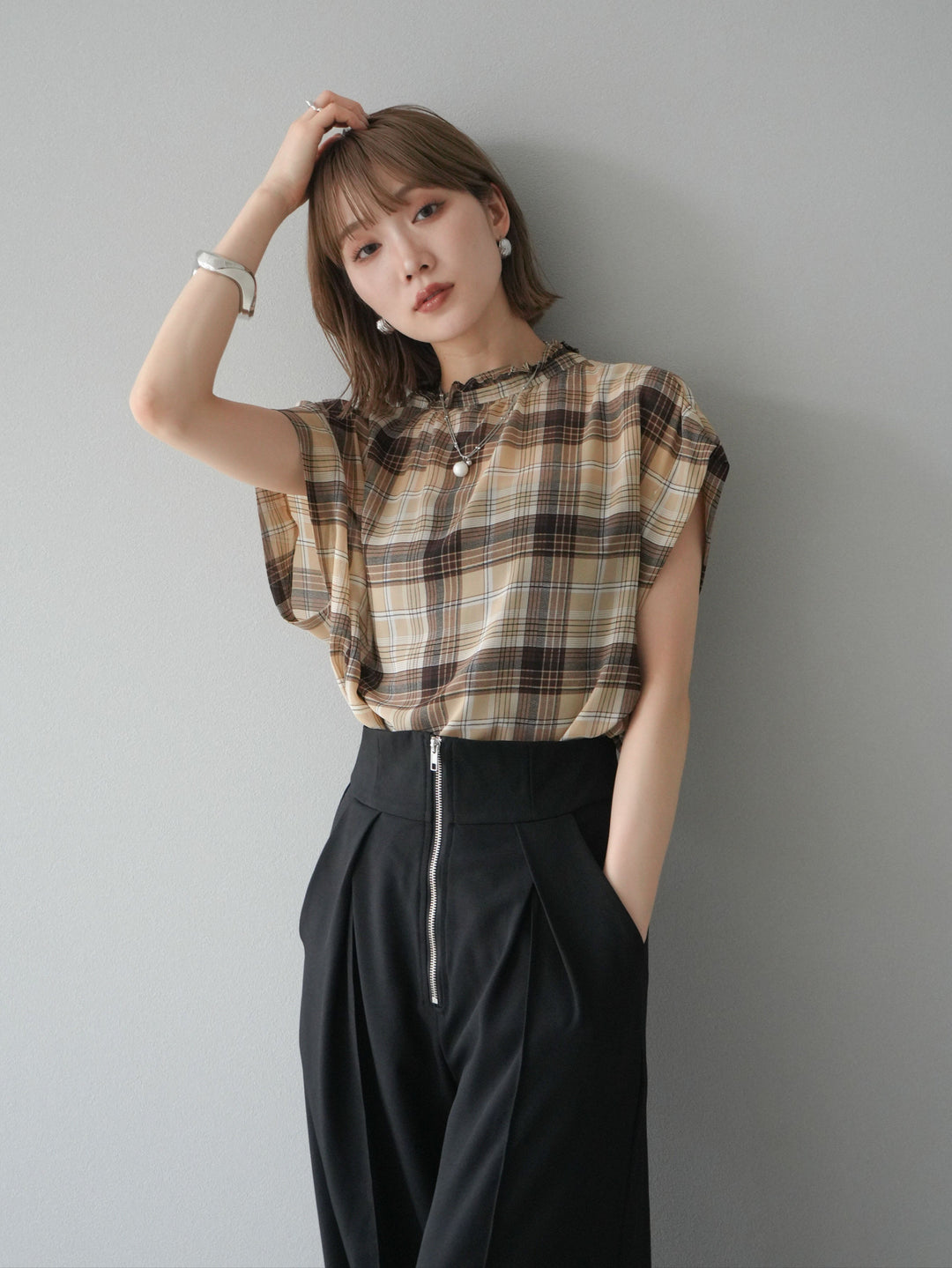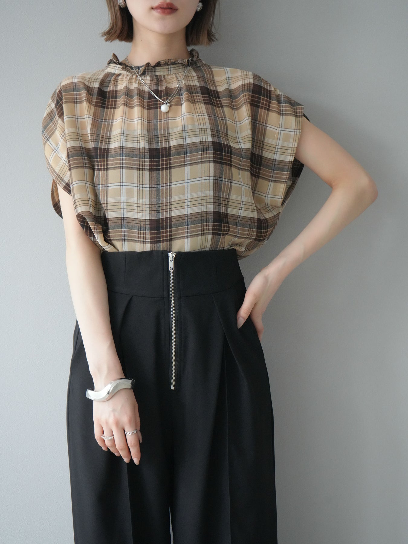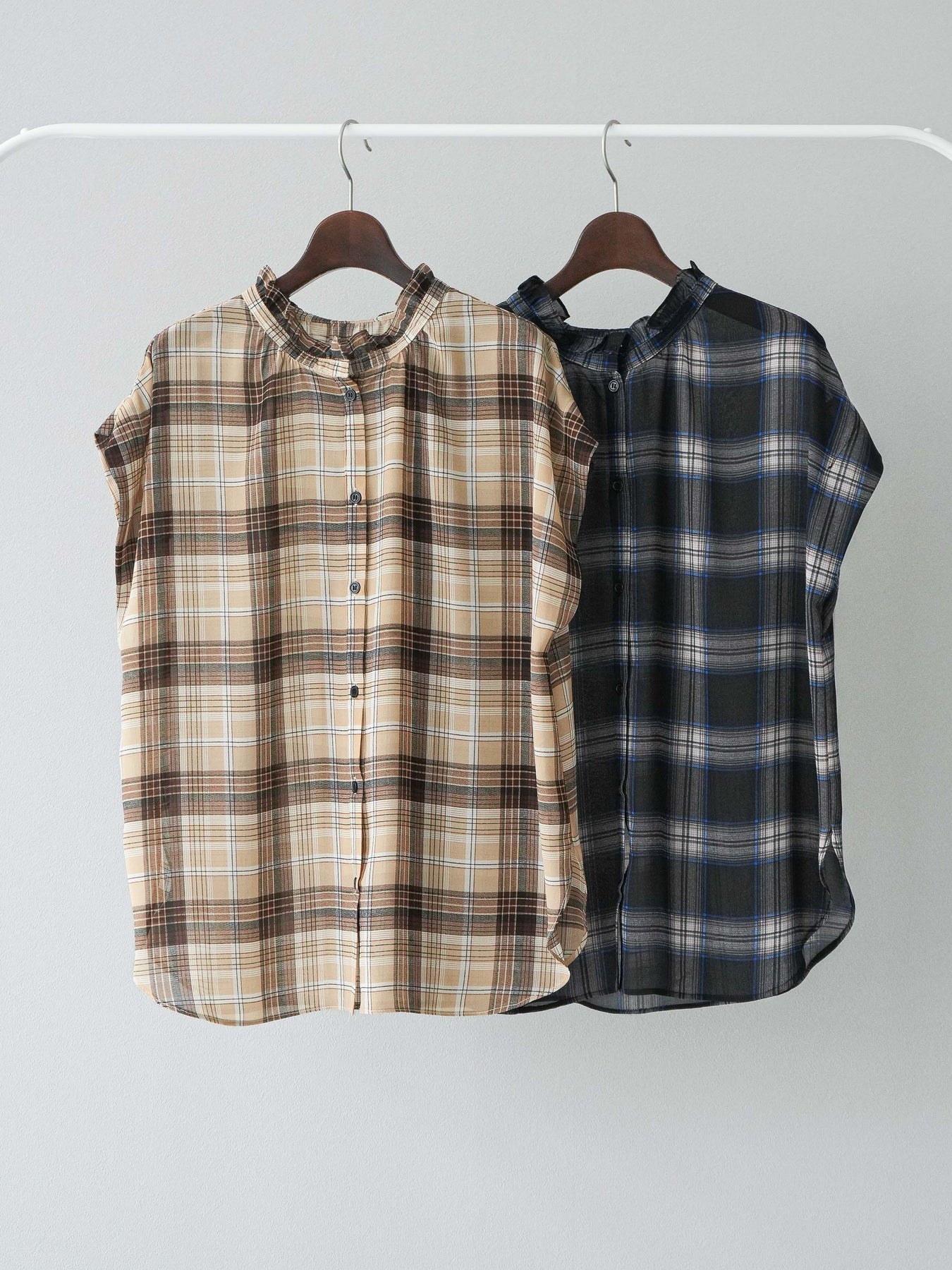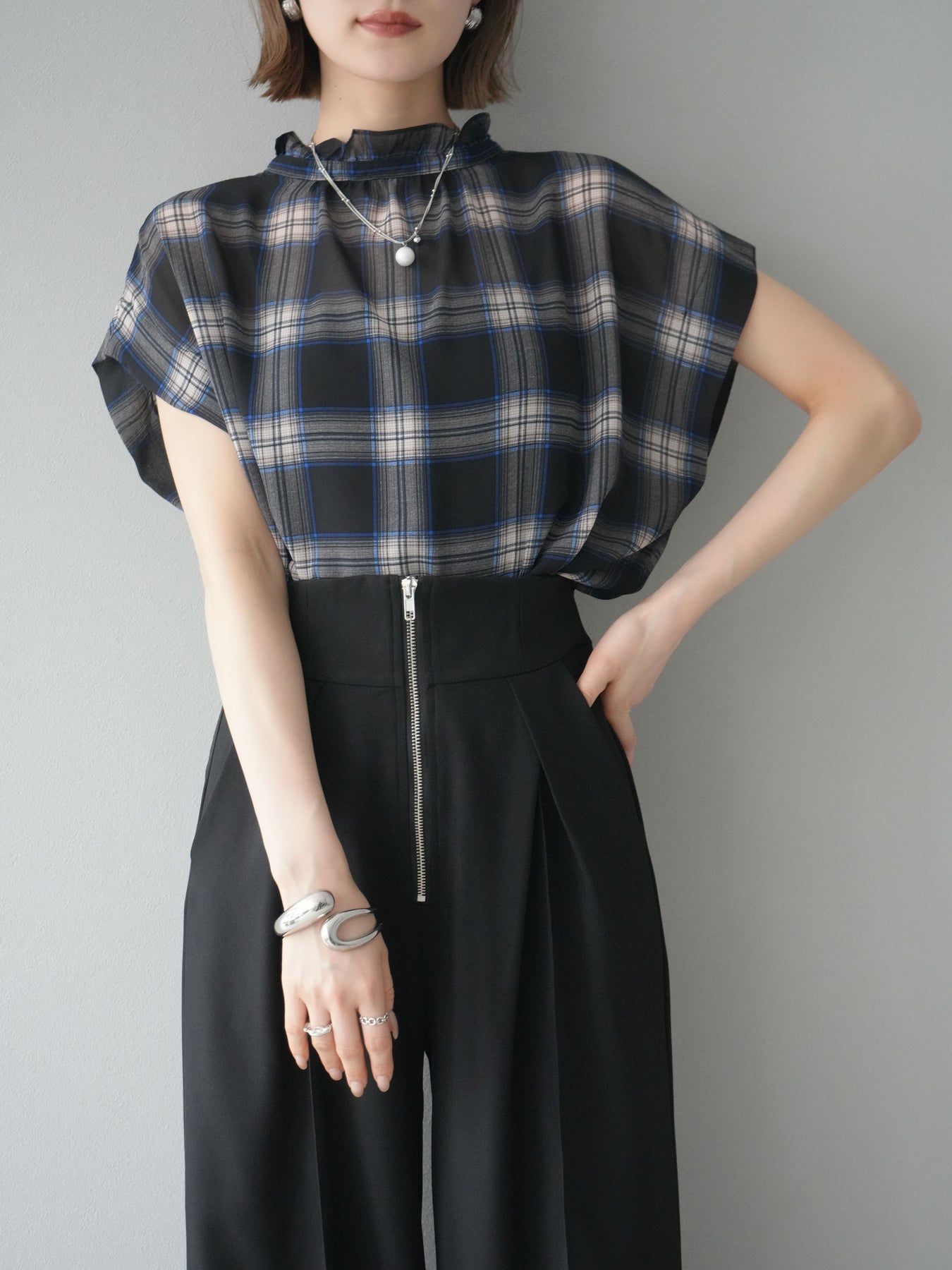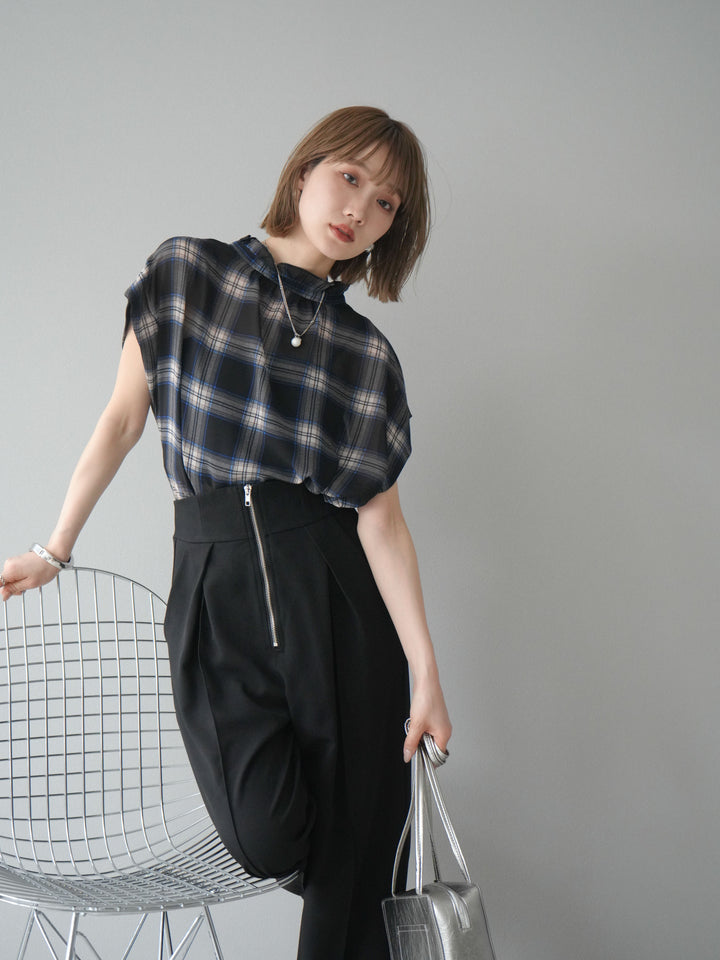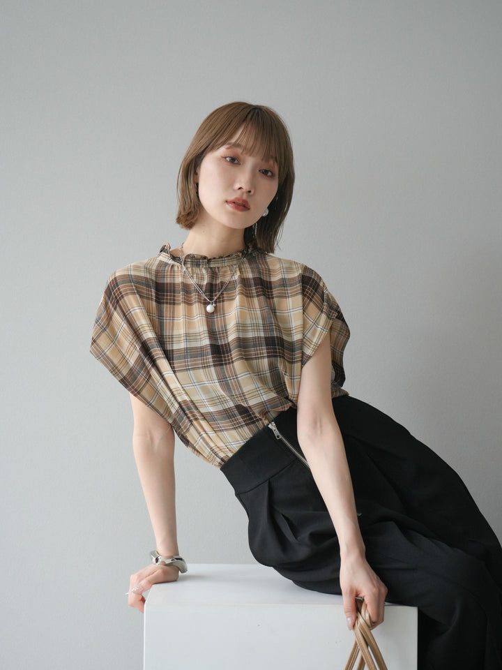 ◆ [予約]2WAYシアーチェックフレンチスリーブブラウス