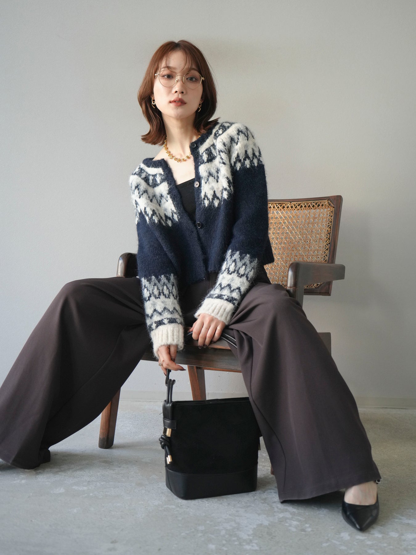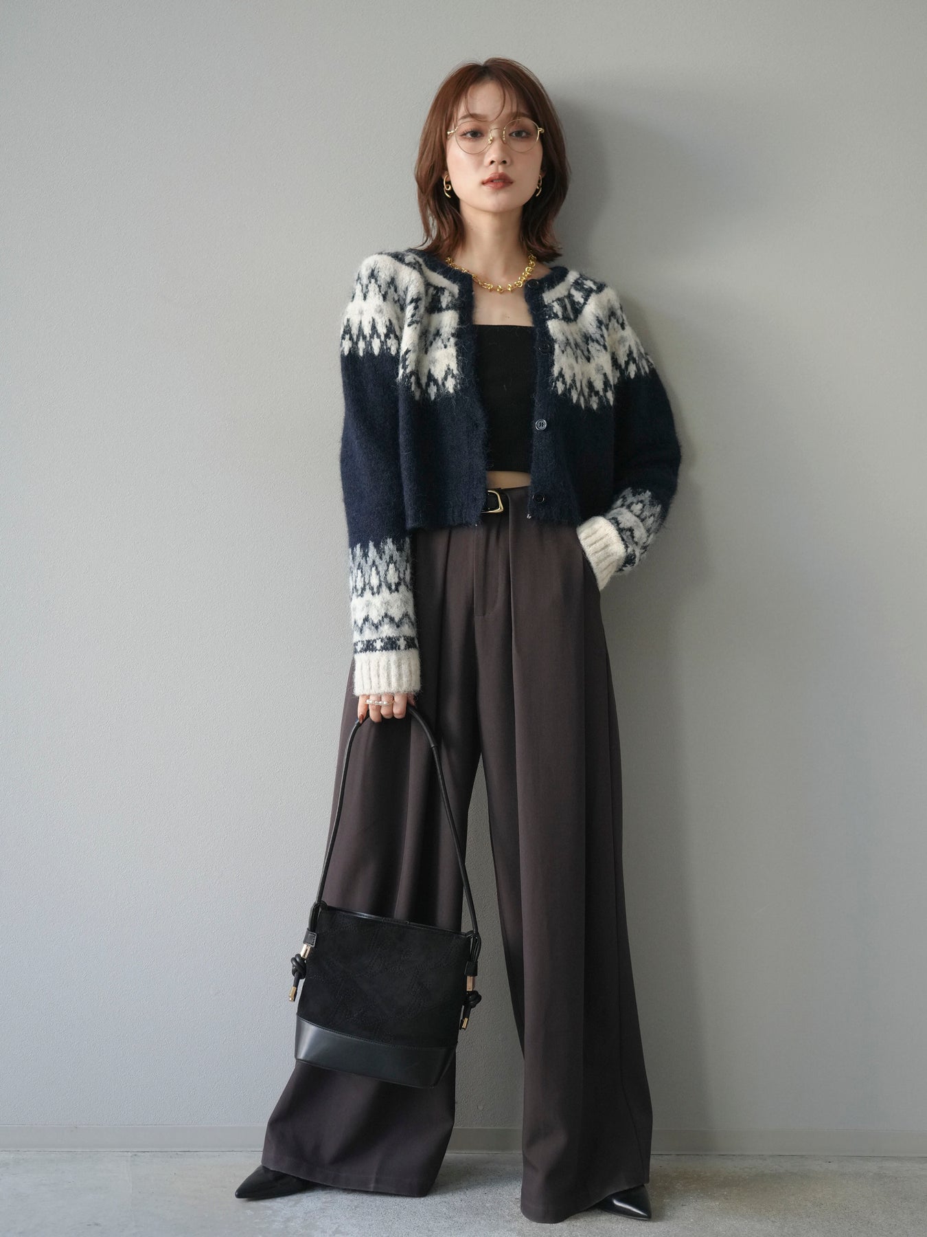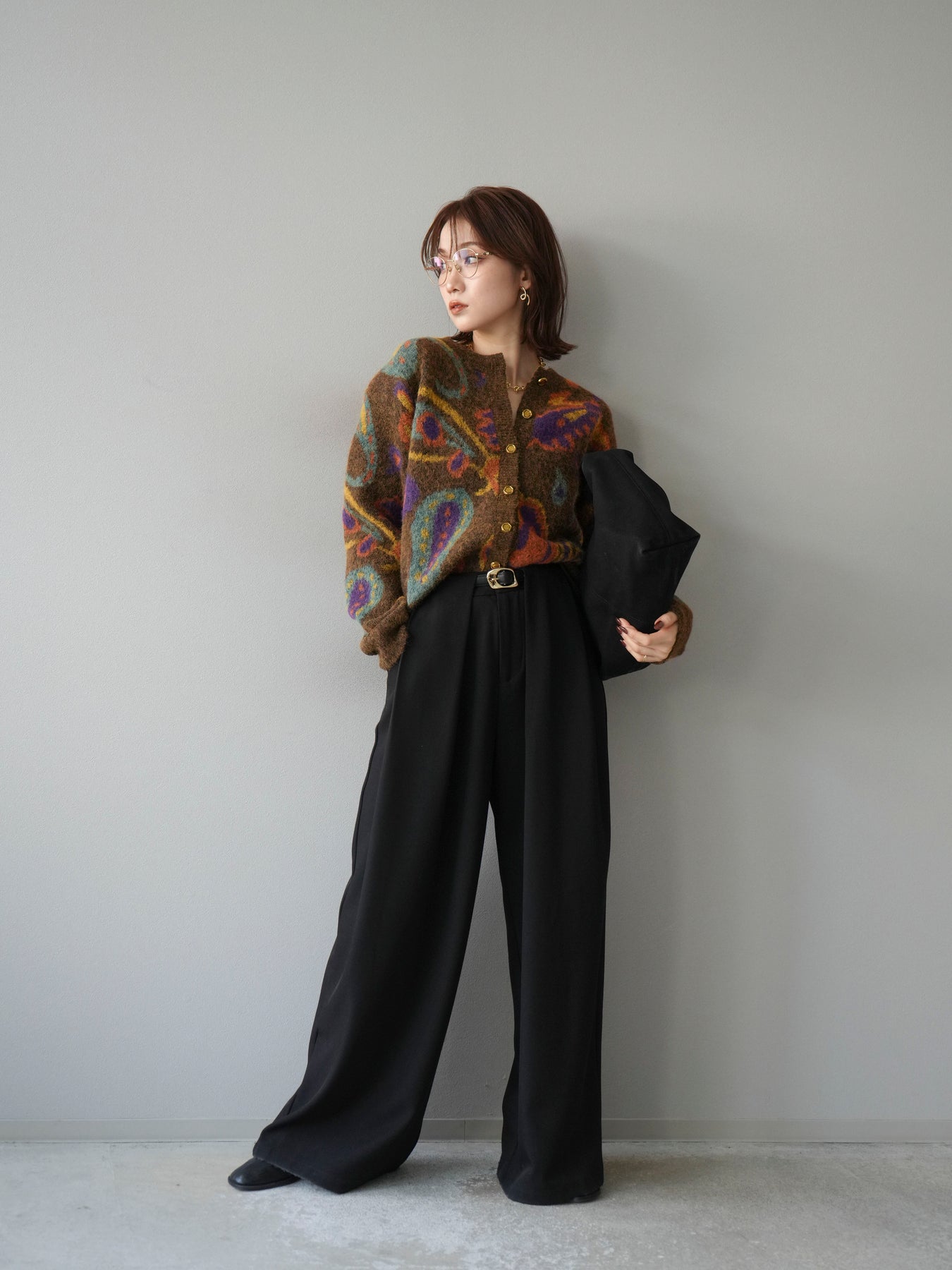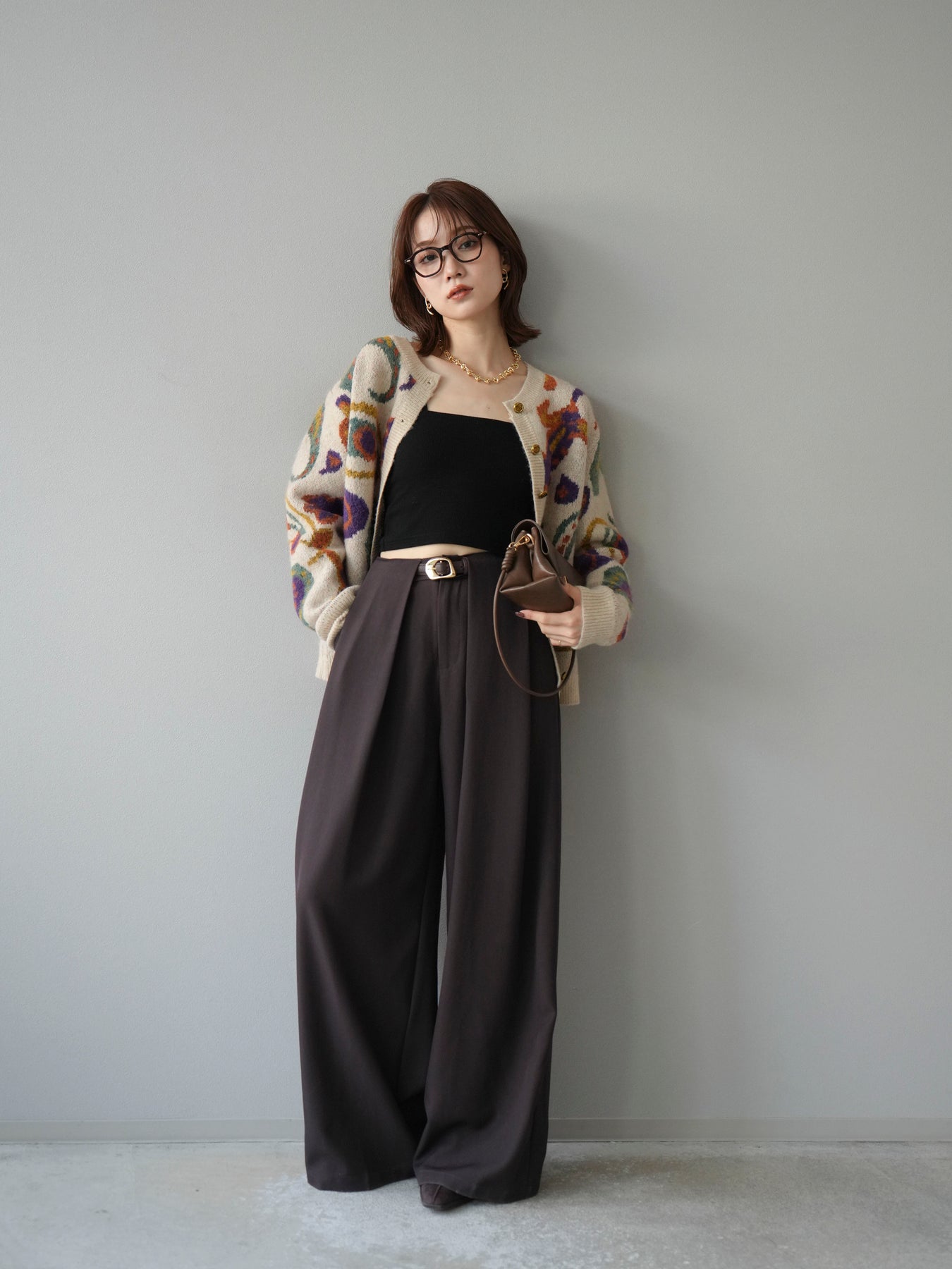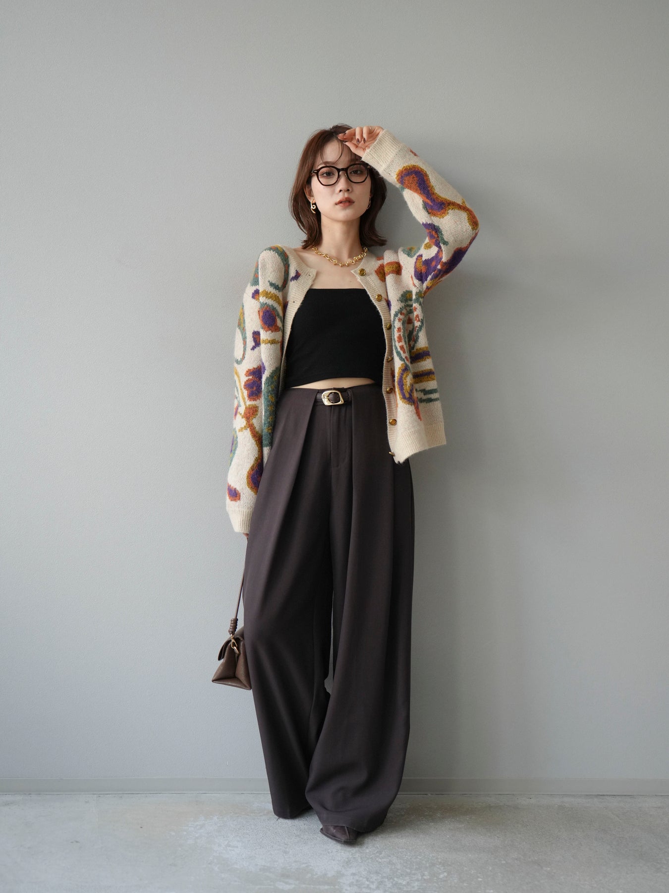 【着回しセット】[SET]求心柄クロップドニットカーディガン+ミックスヤーンペイズリー柄ニットカーディガン+ベルトループデザインワイドパンツ(3set)