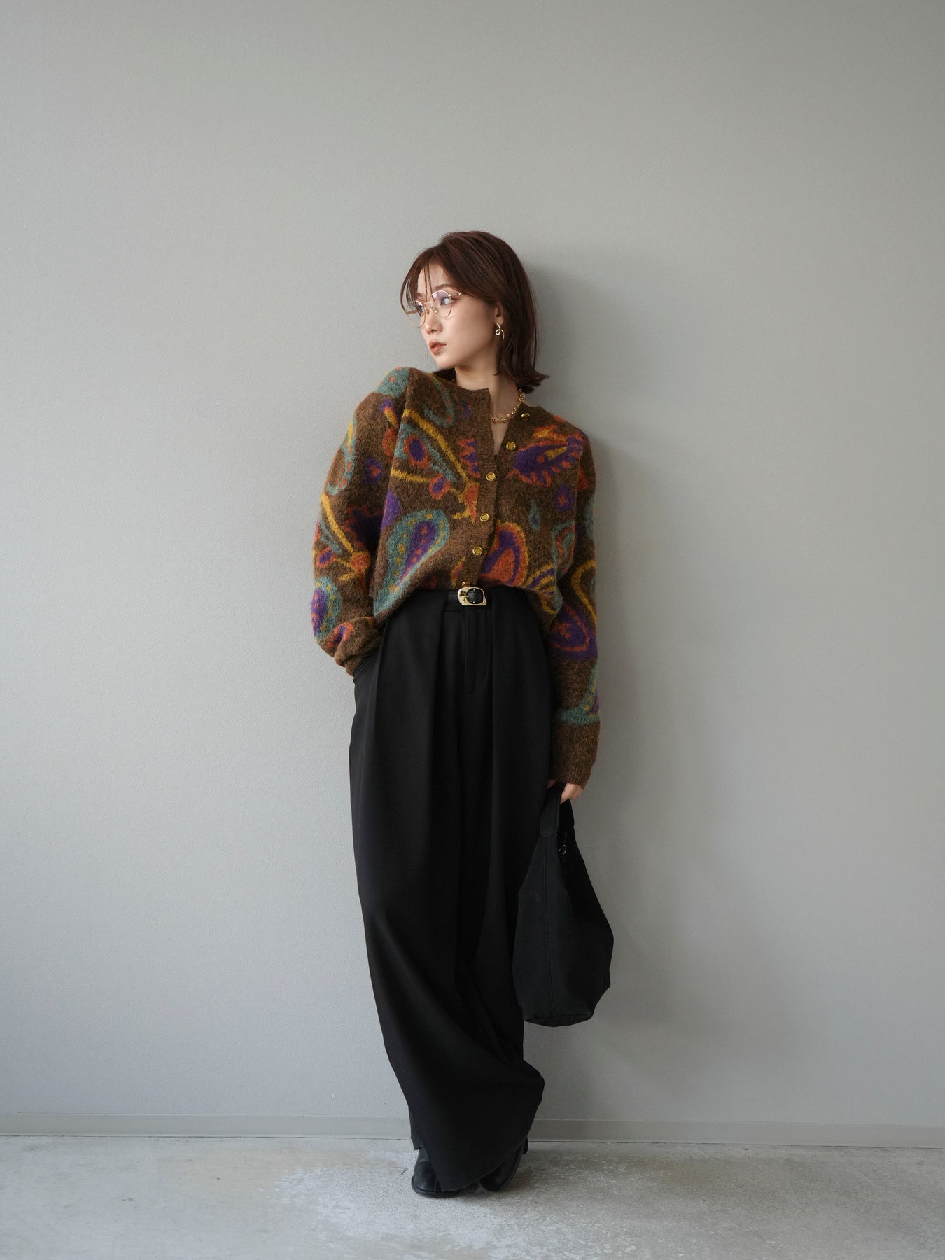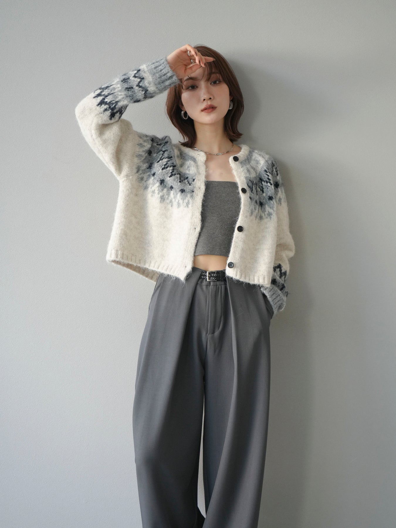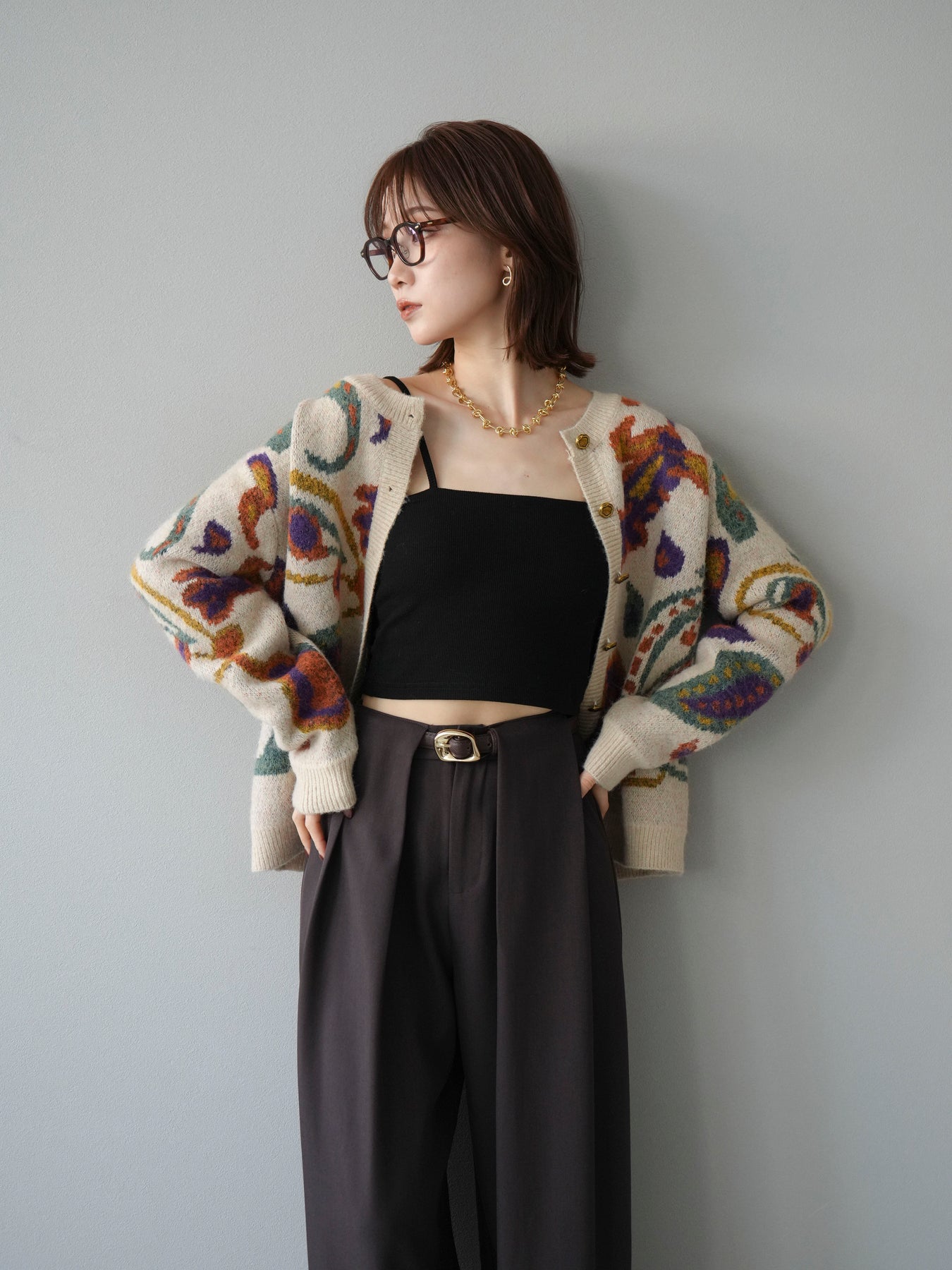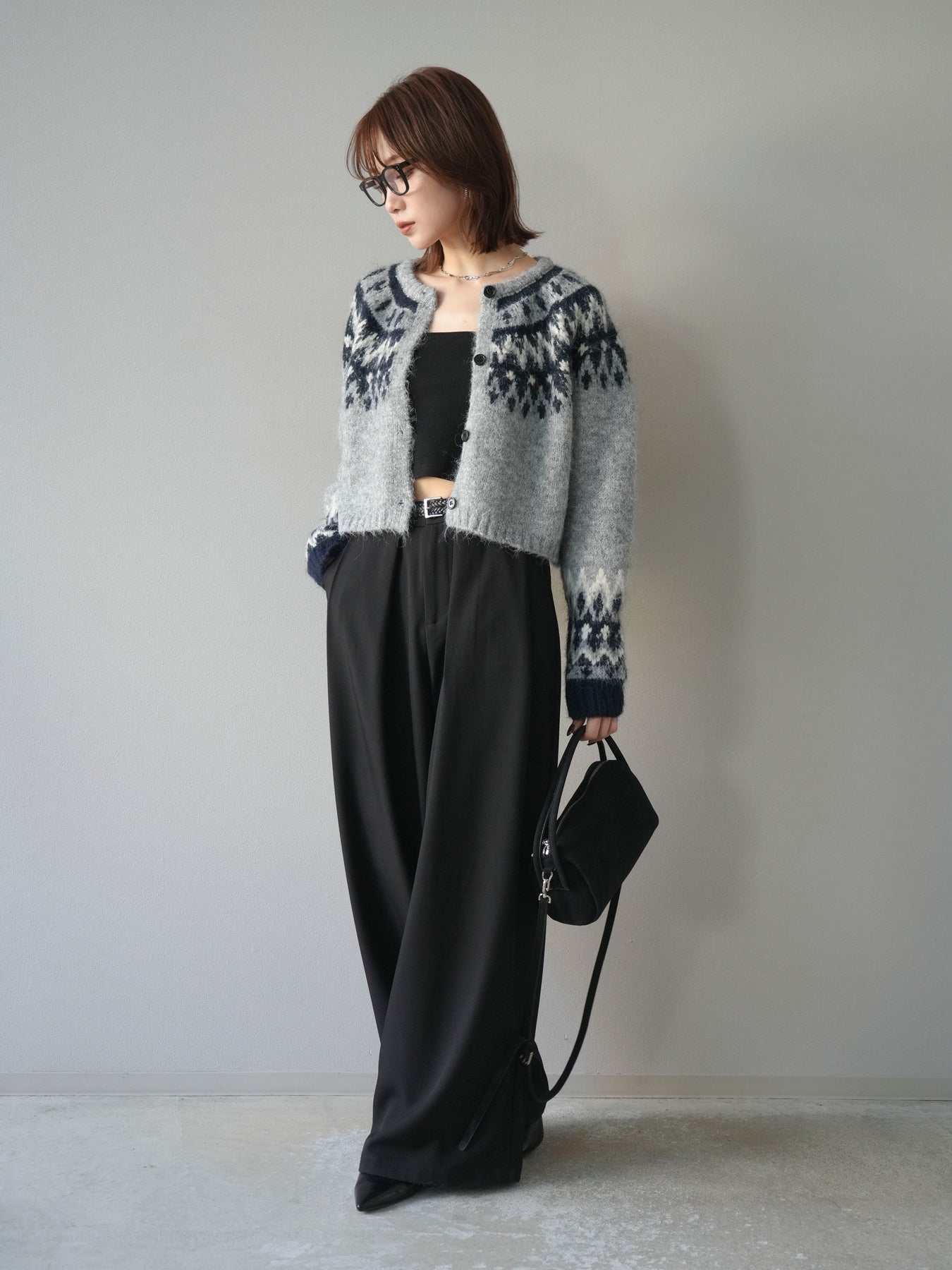 【着回しセット】[SET]求心柄クロップドニットカーディガン+ミックスヤーンペイズリー柄ニットカーディガン+ベルトループデザインワイドパンツ(3set)