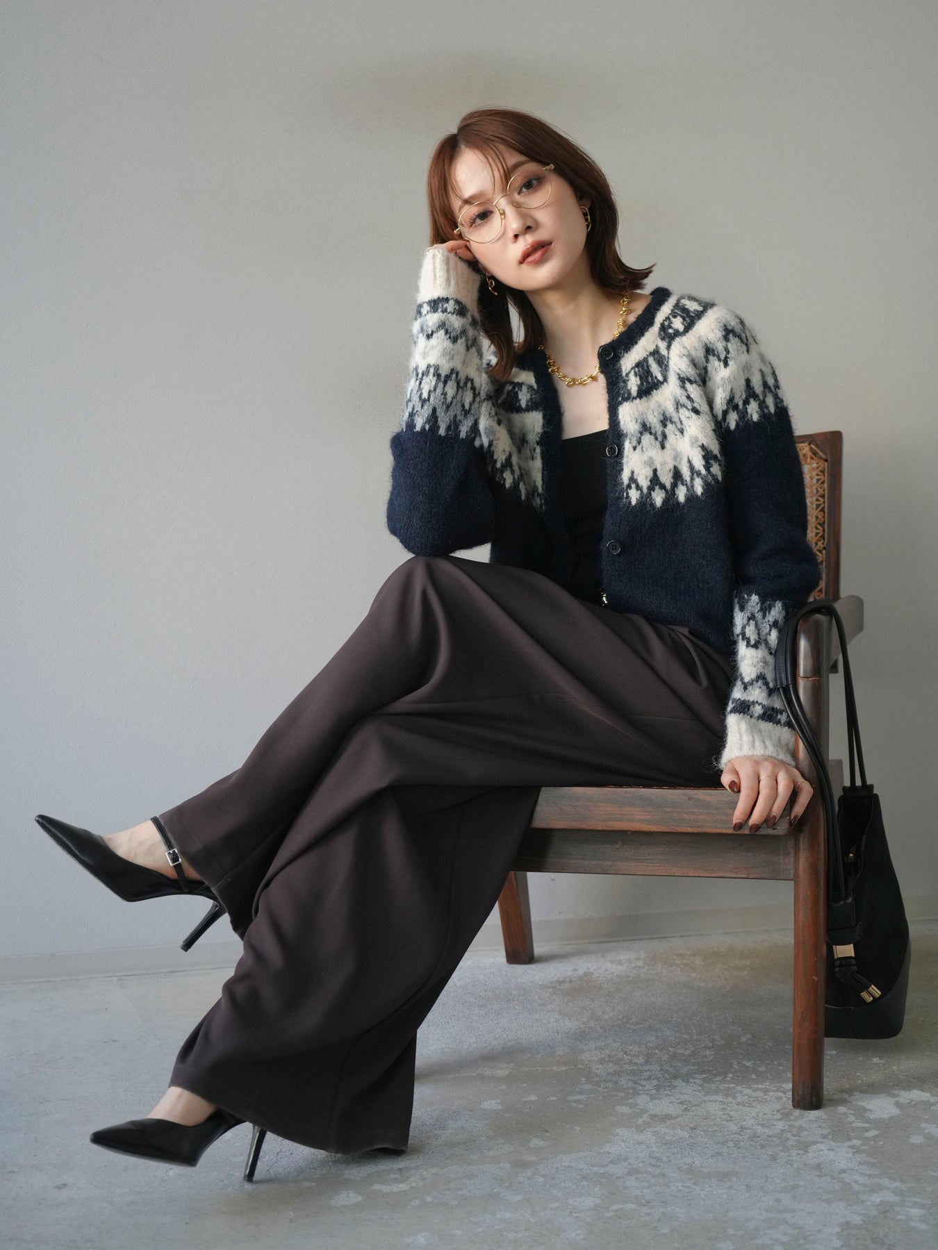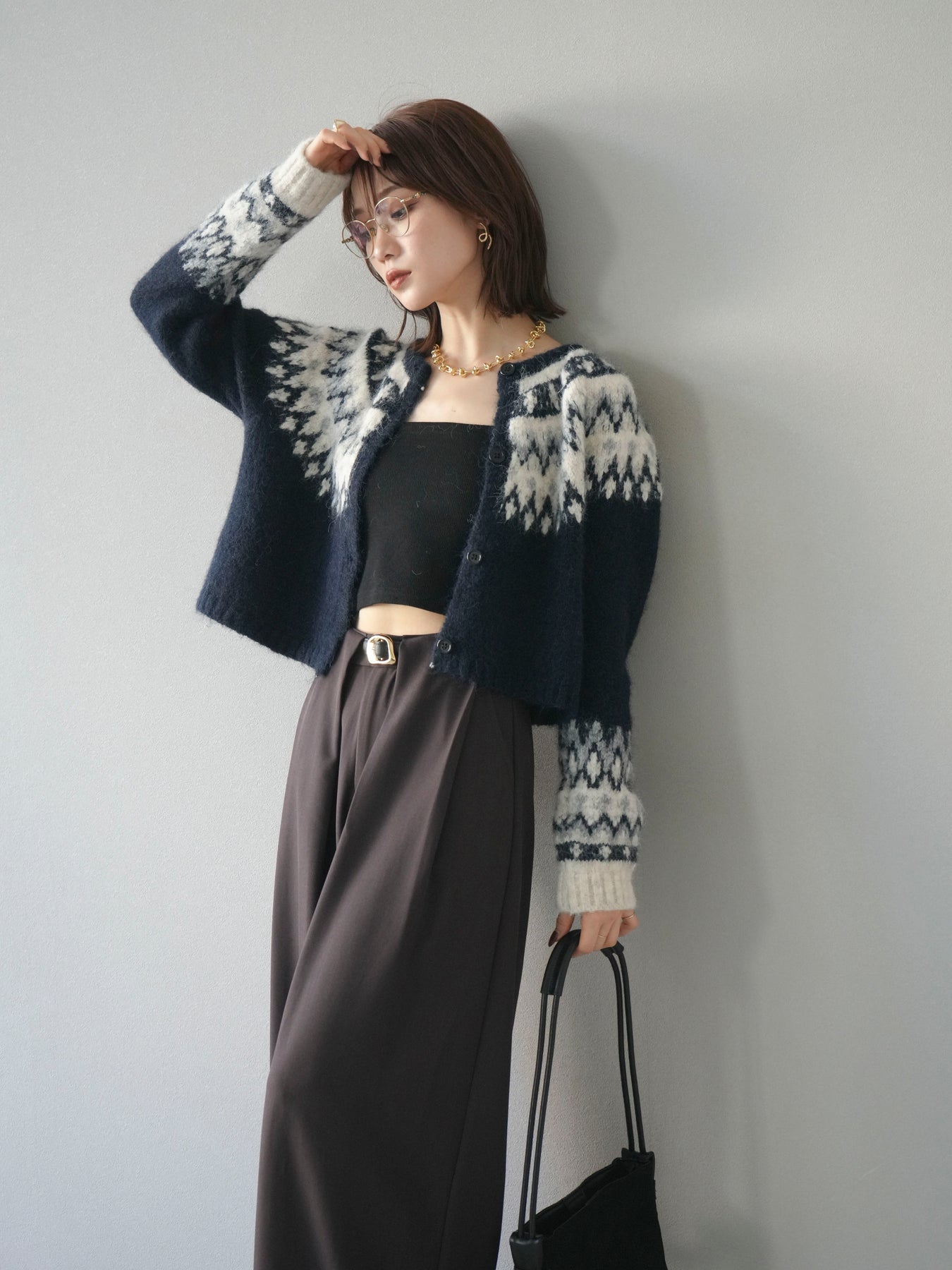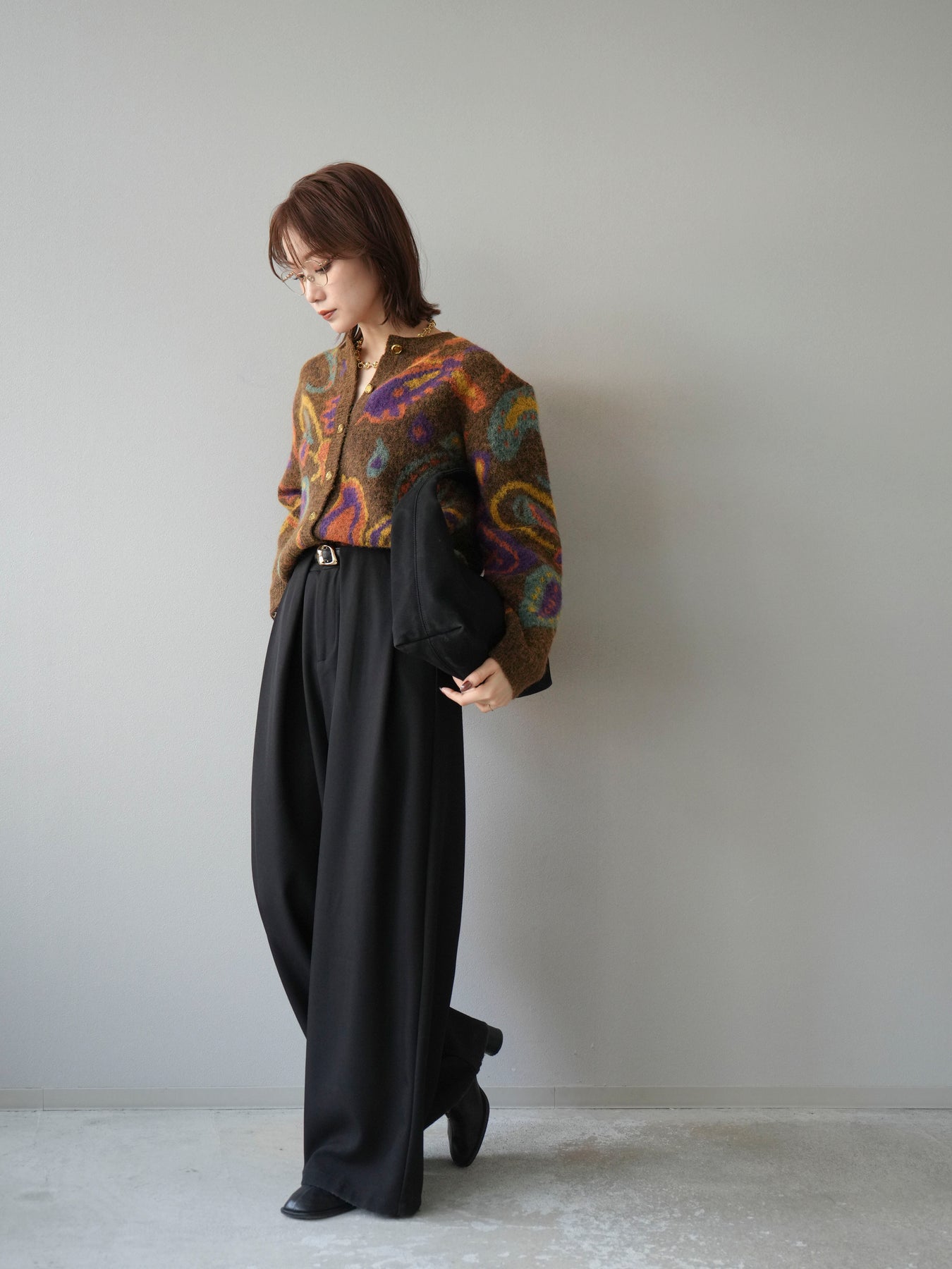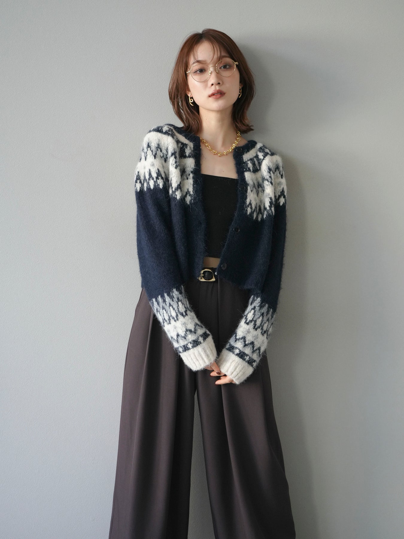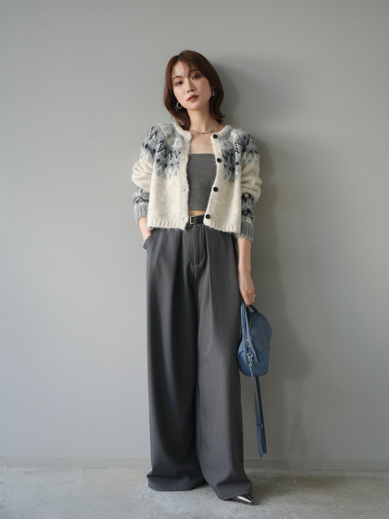 【着回しセット】[SET]求心柄クロップドニットカーディガン+ミックスヤーンペイズリー柄ニットカーディガン+ベルトループデザインワイドパンツ(3set)