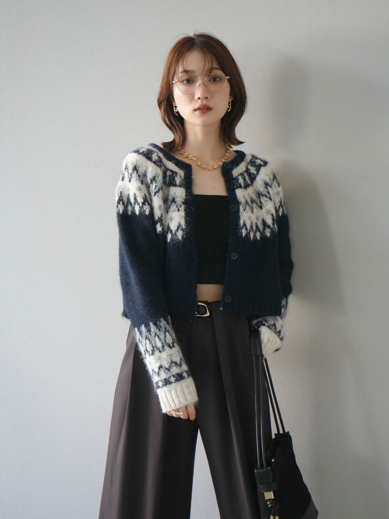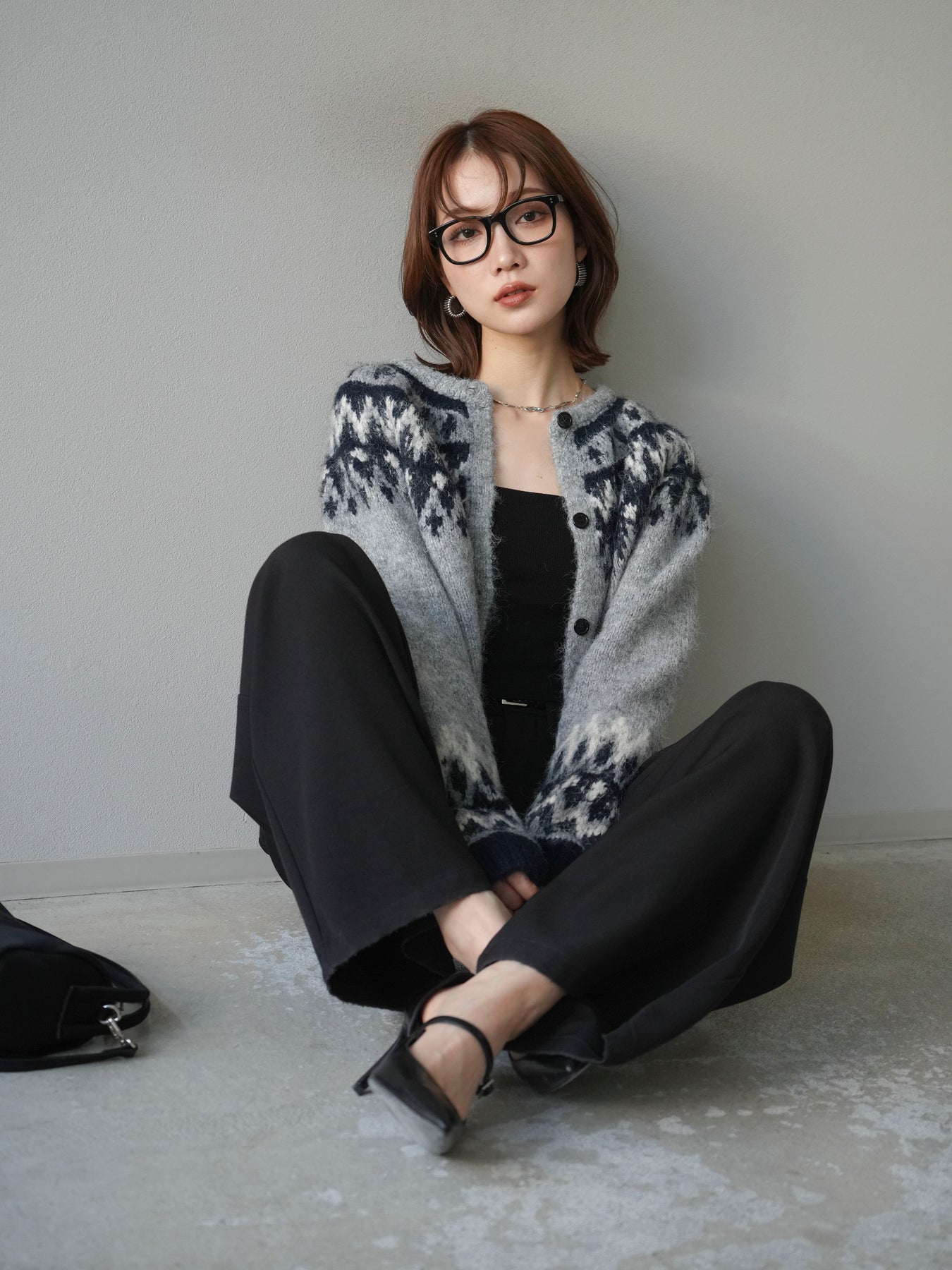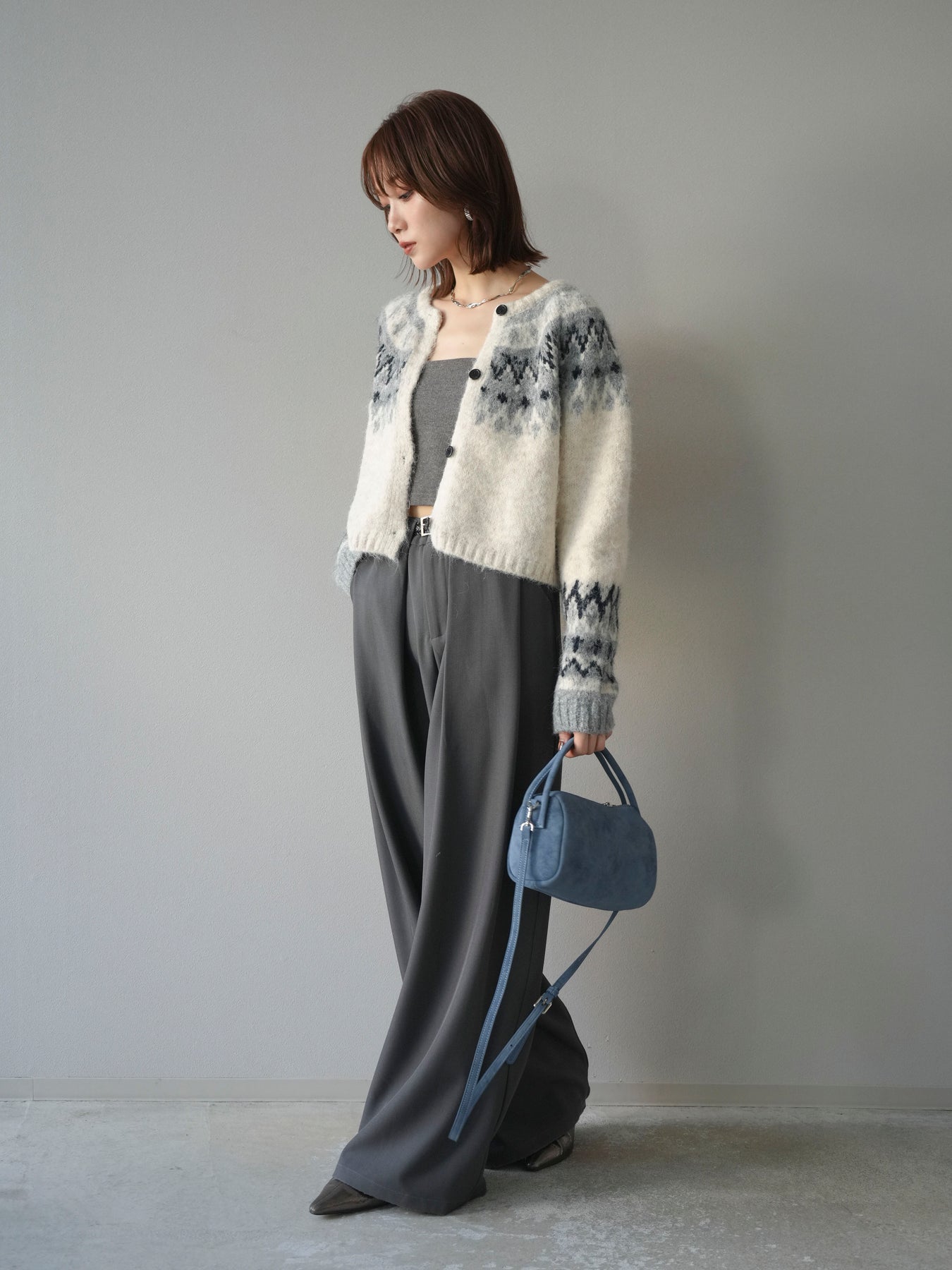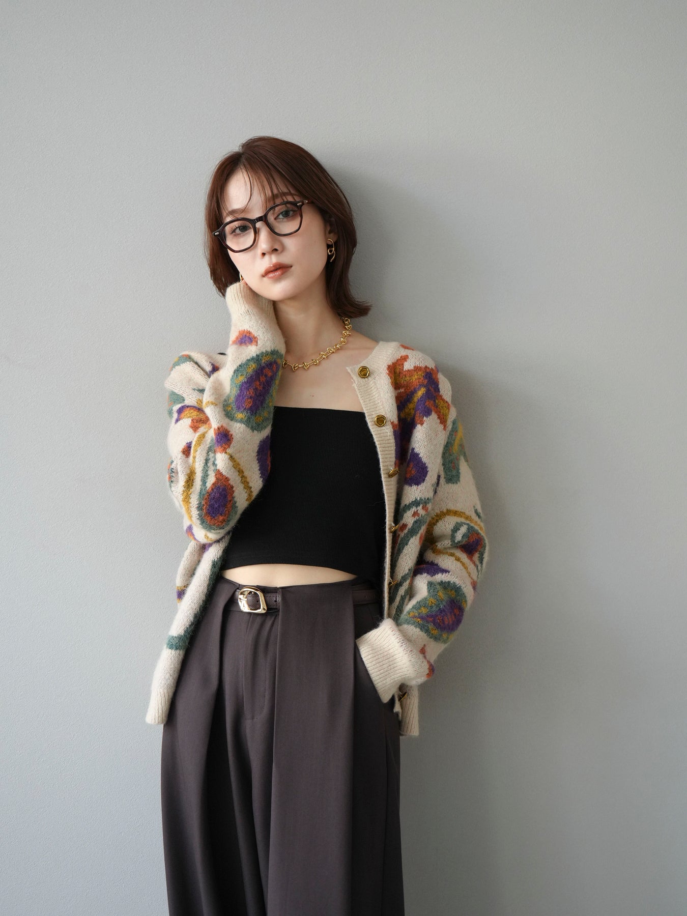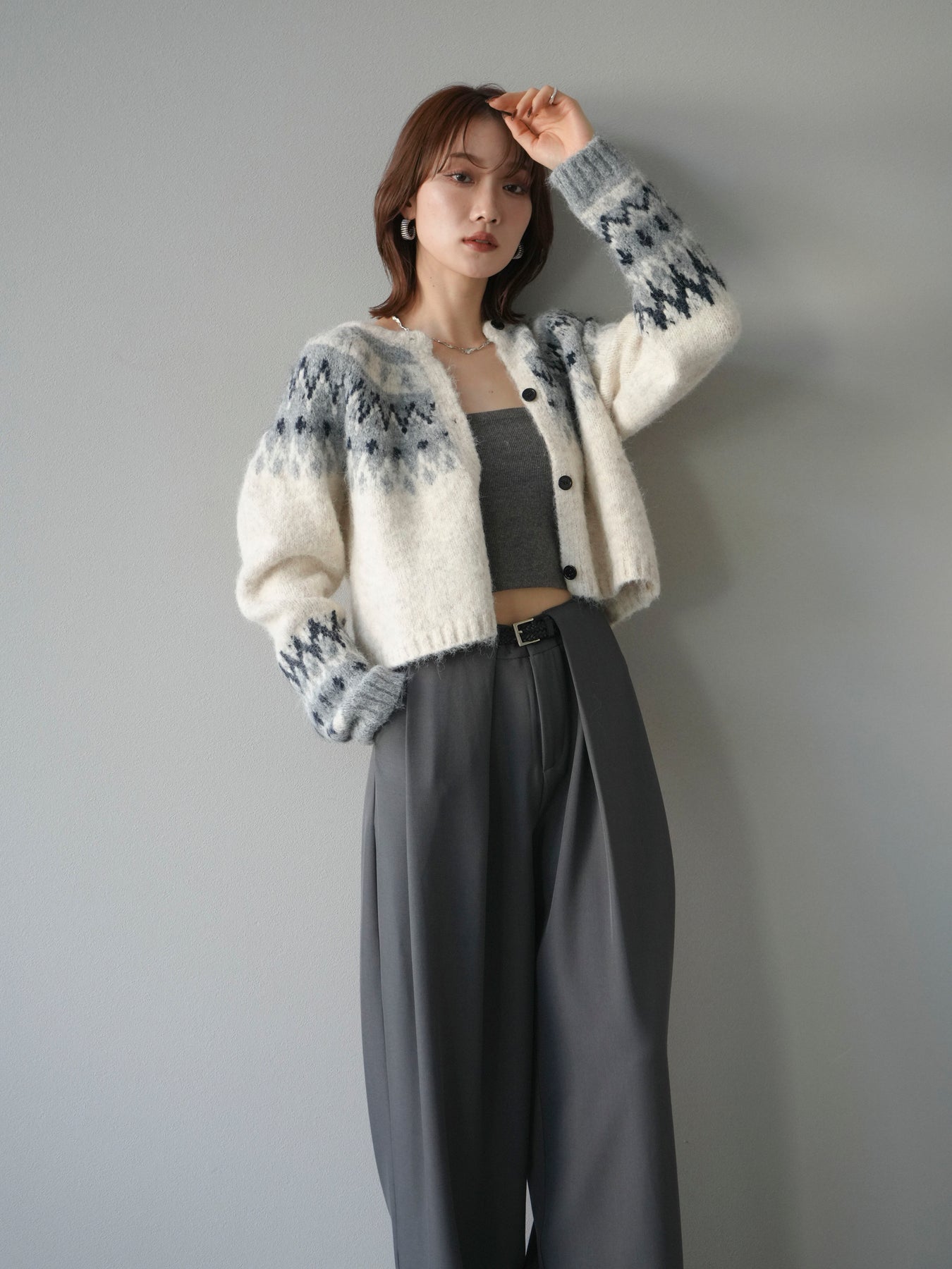 【着回しセット】[SET]求心柄クロップドニットカーディガン+ミックスヤーンペイズリー柄ニットカーディガン+ベルトループデザインワイドパンツ(3set)