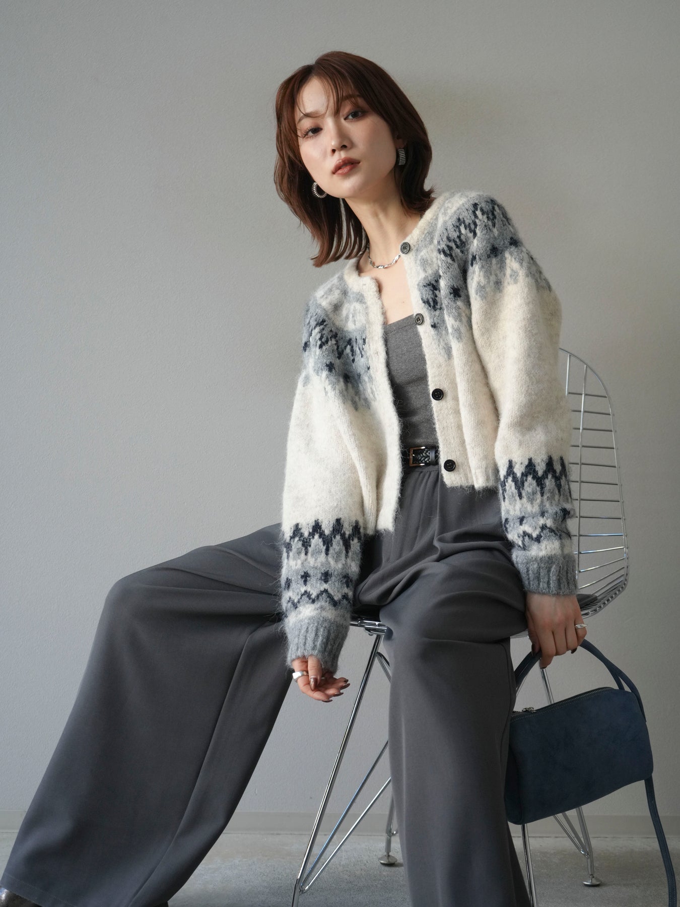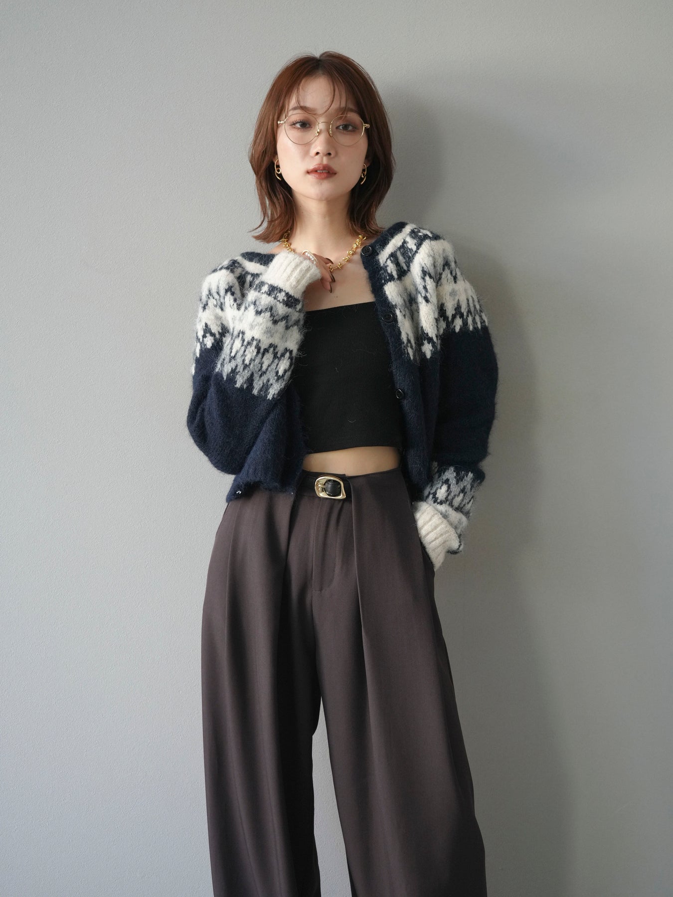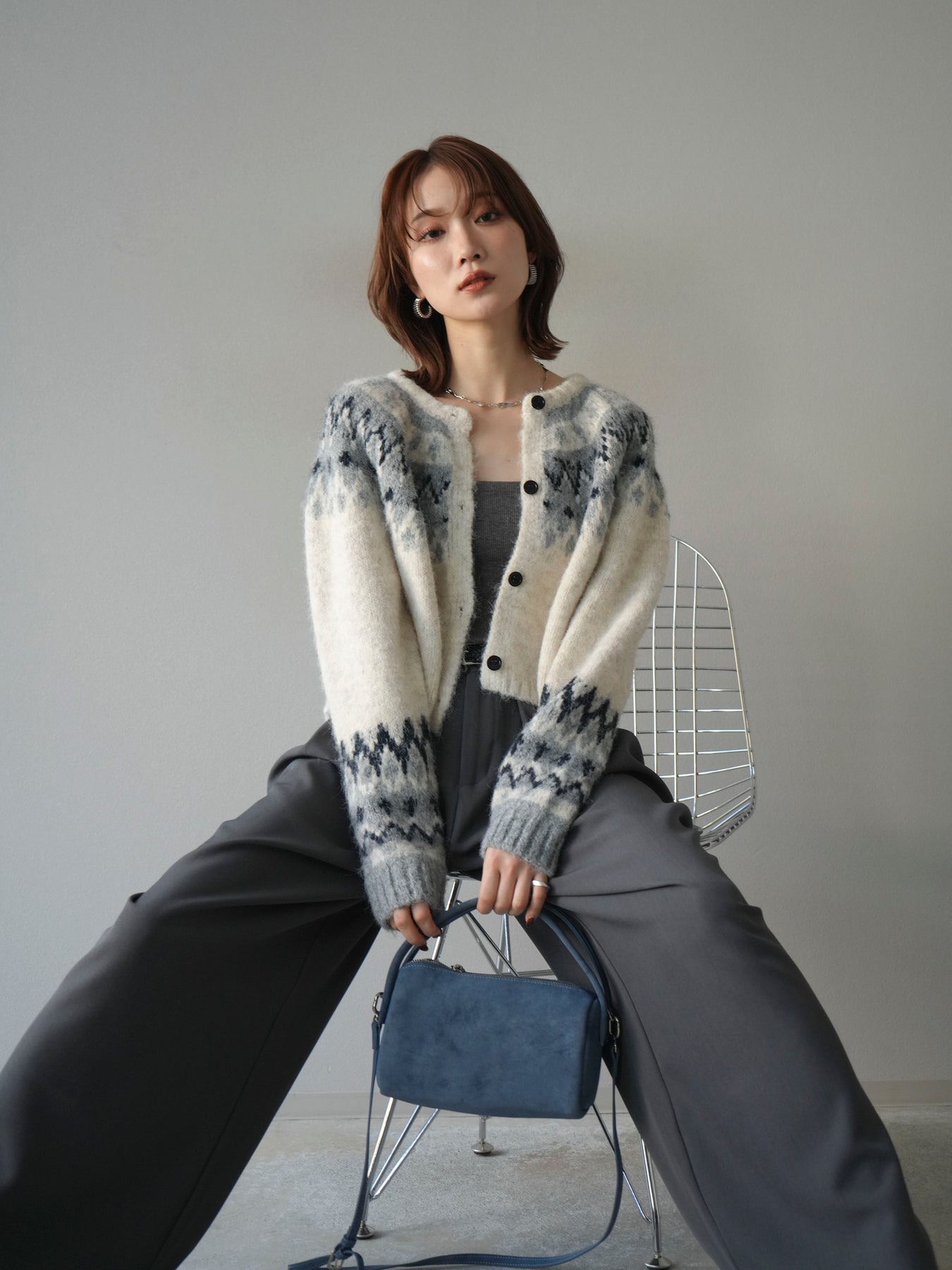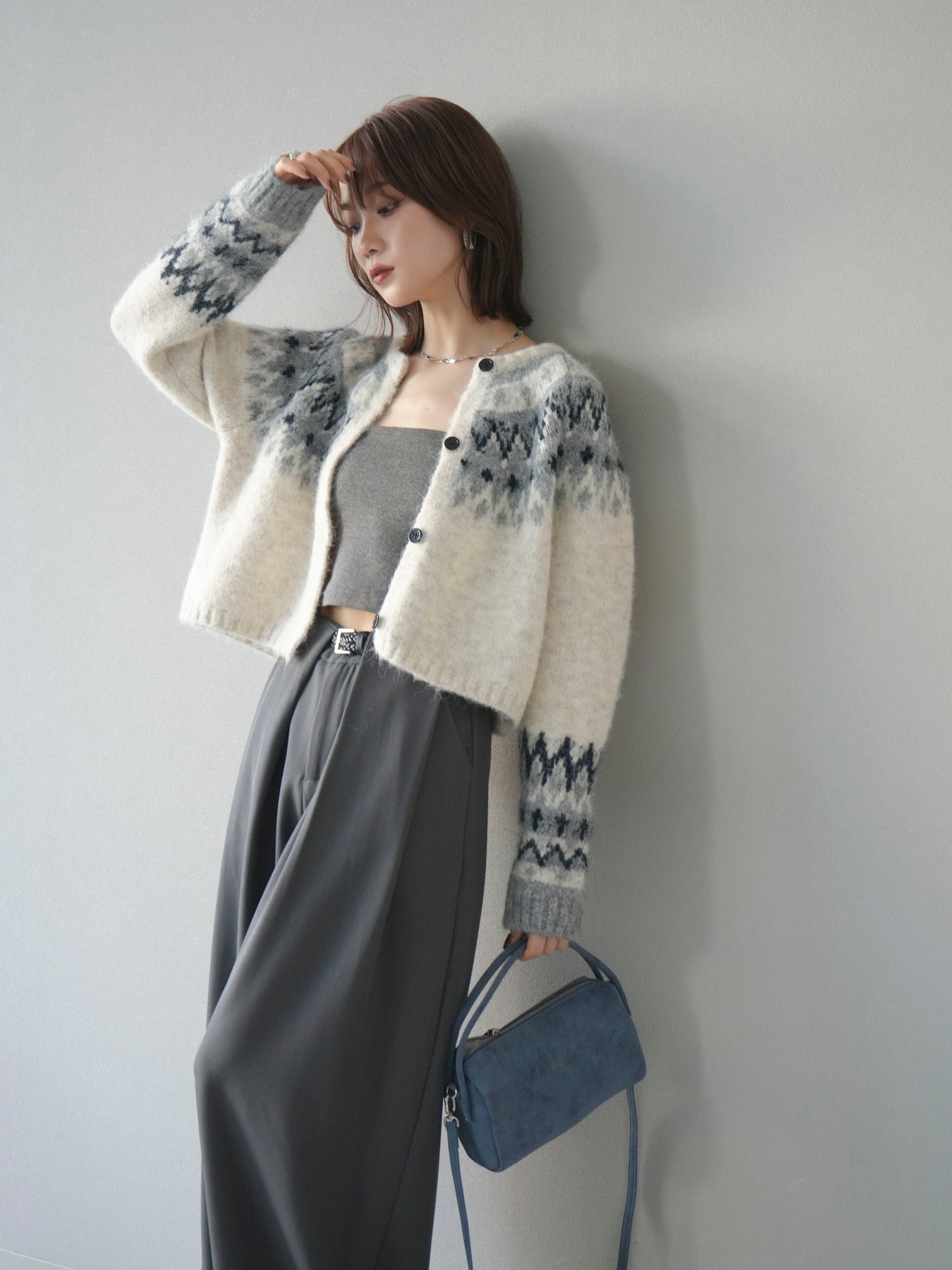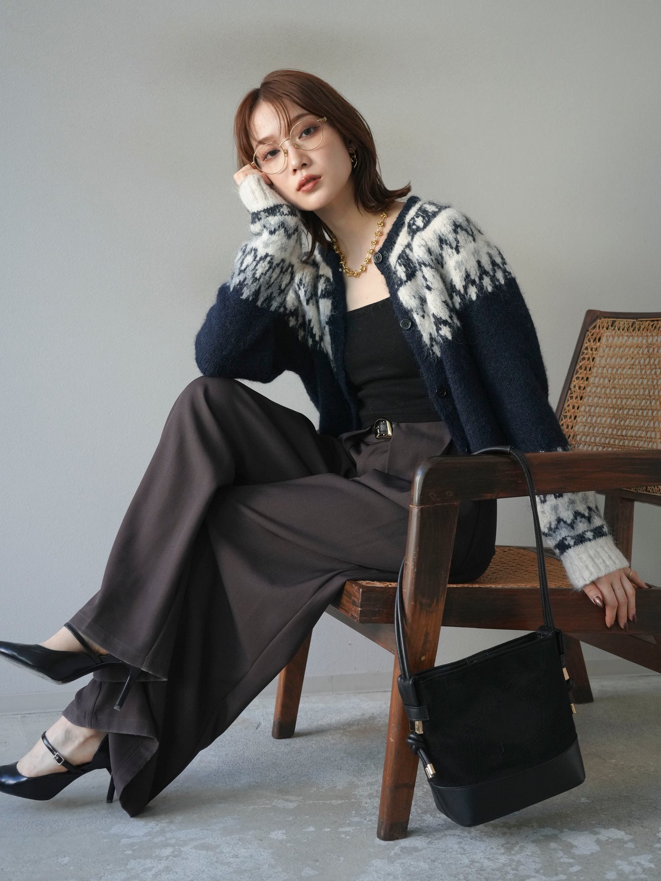 【着回しセット】[SET]求心柄クロップドニットカーディガン+ミックスヤーンペイズリー柄ニットカーディガン+ベルトループデザインワイドパンツ(3set)