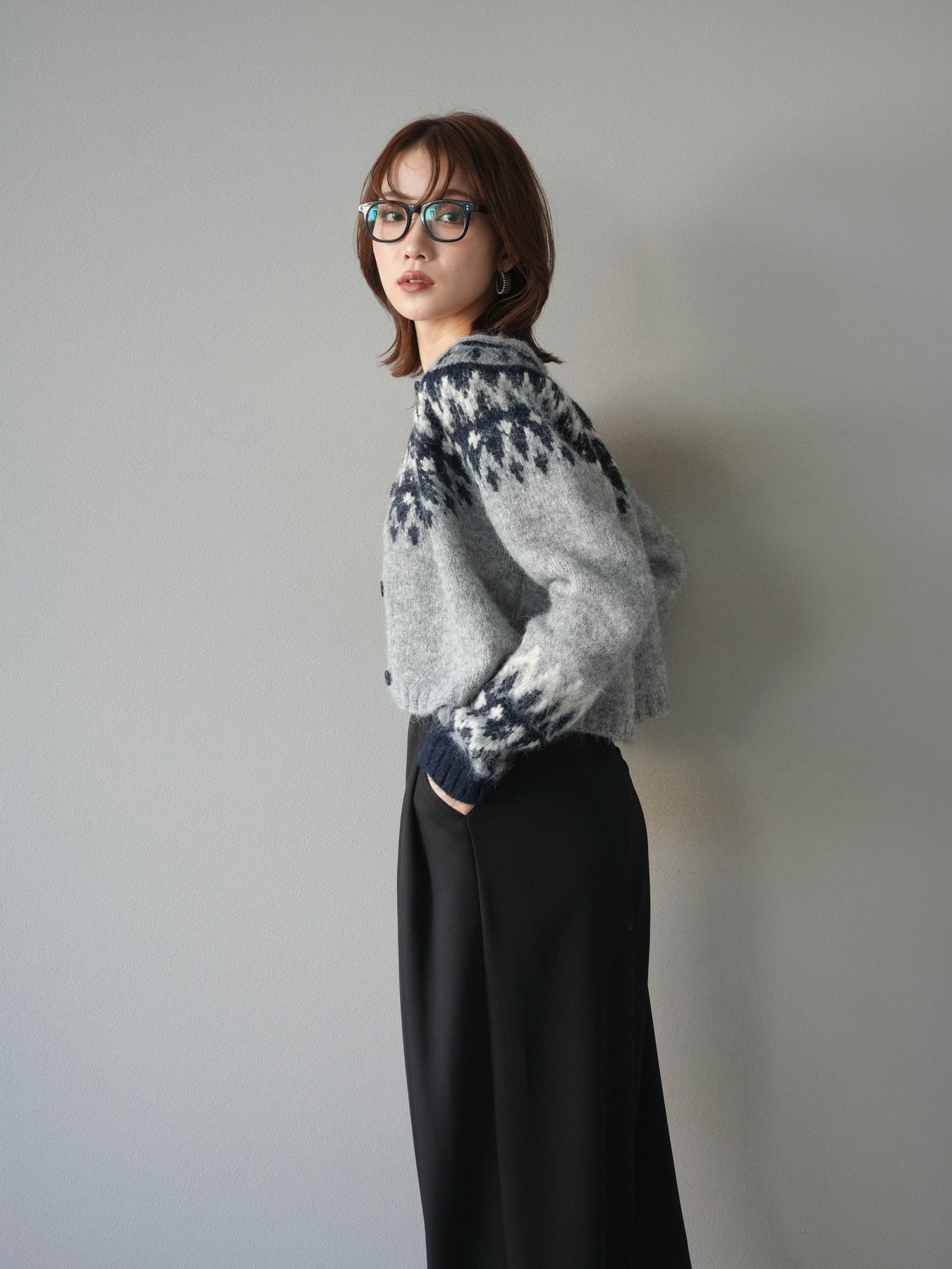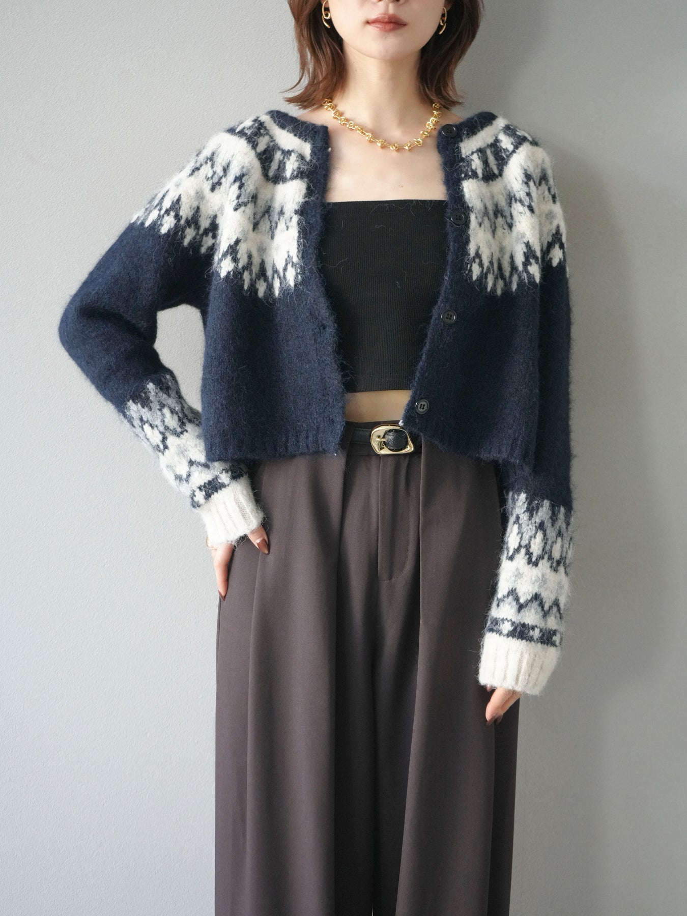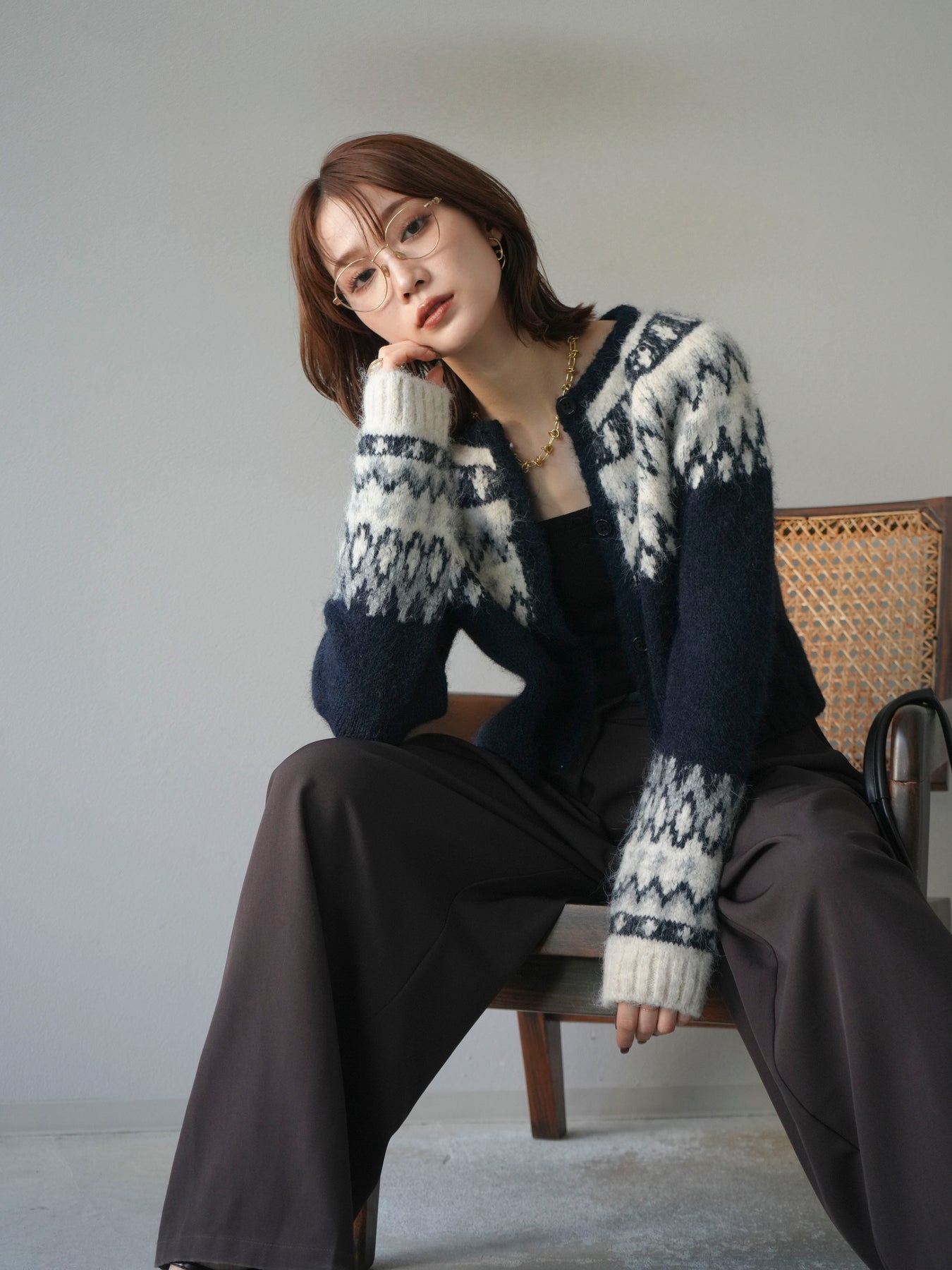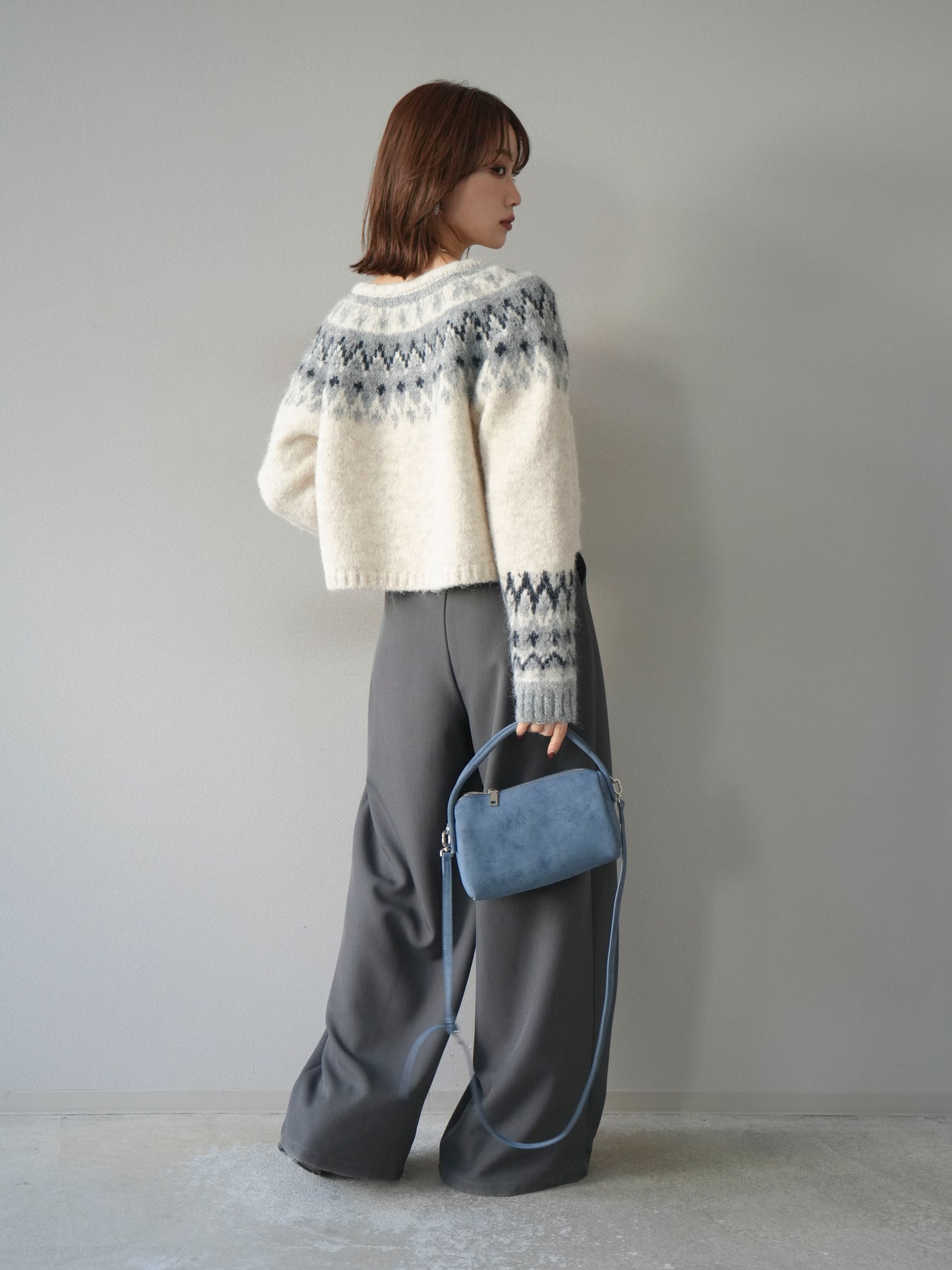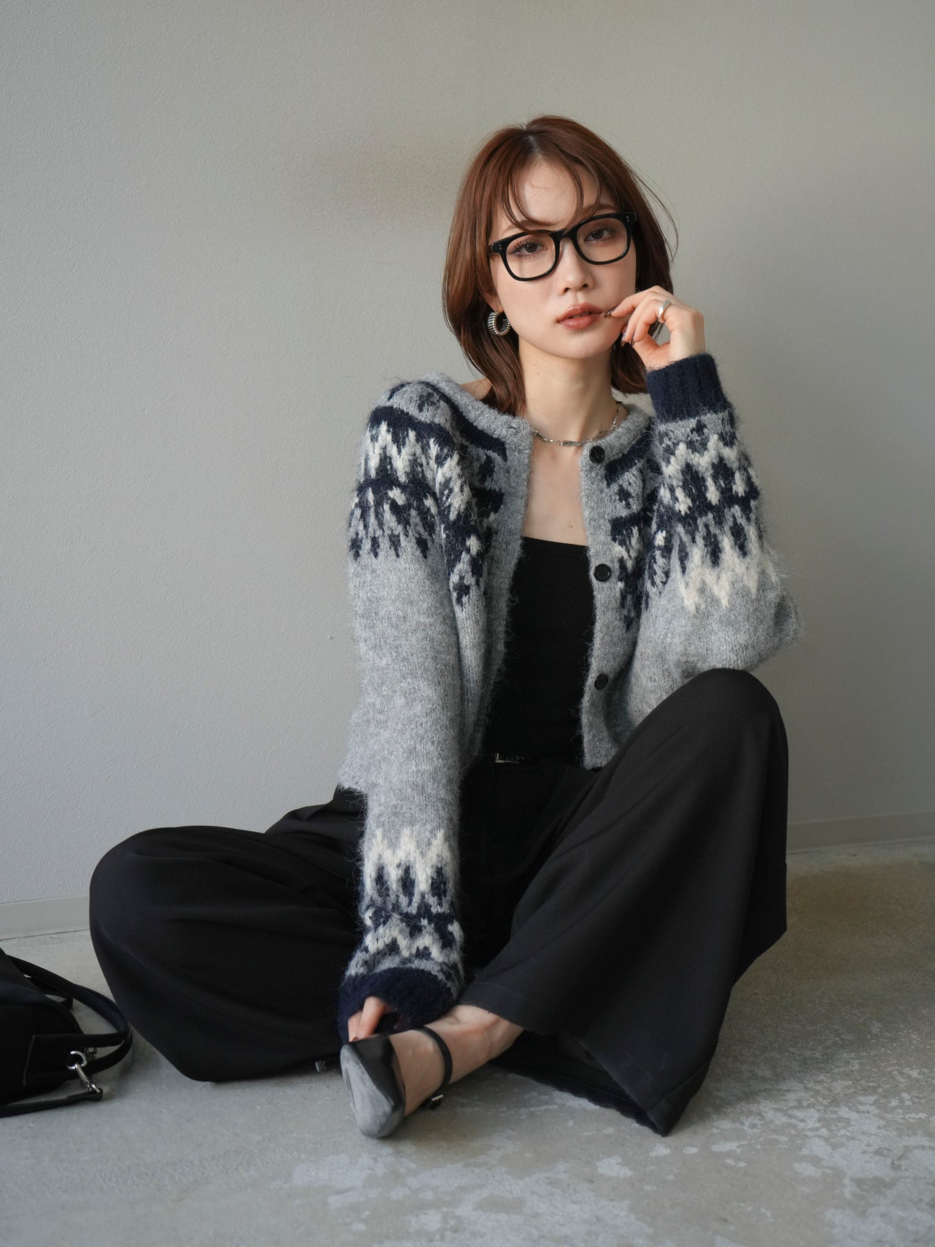 【着回しセット】[SET]求心柄クロップドニットカーディガン+ミックスヤーンペイズリー柄ニットカーディガン+ベルトループデザインワイドパンツ(3set)