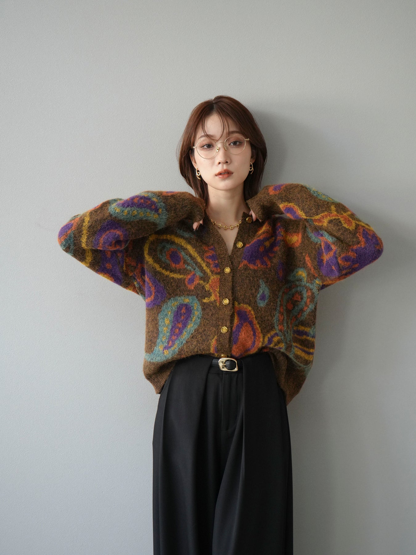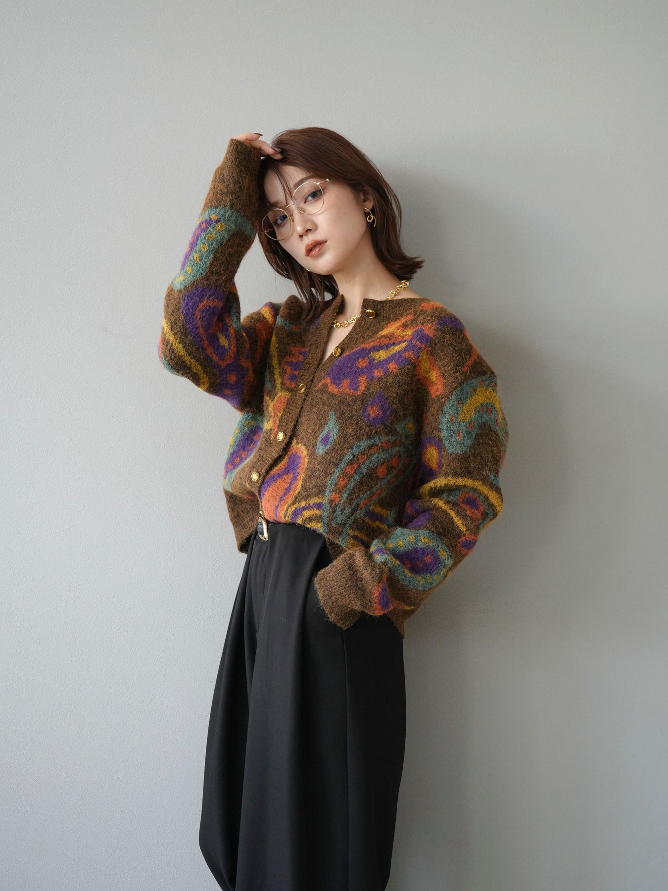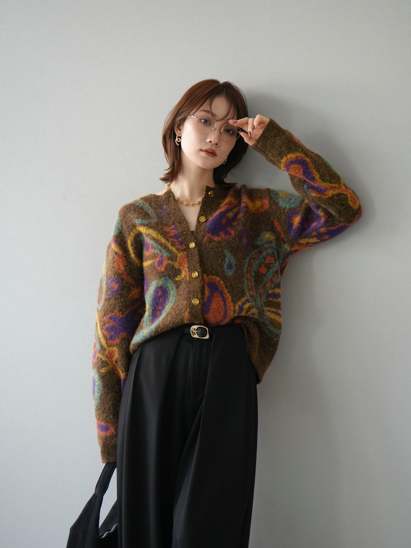 [予約]ミックスヤーンペイズリー柄ニットカーディガン