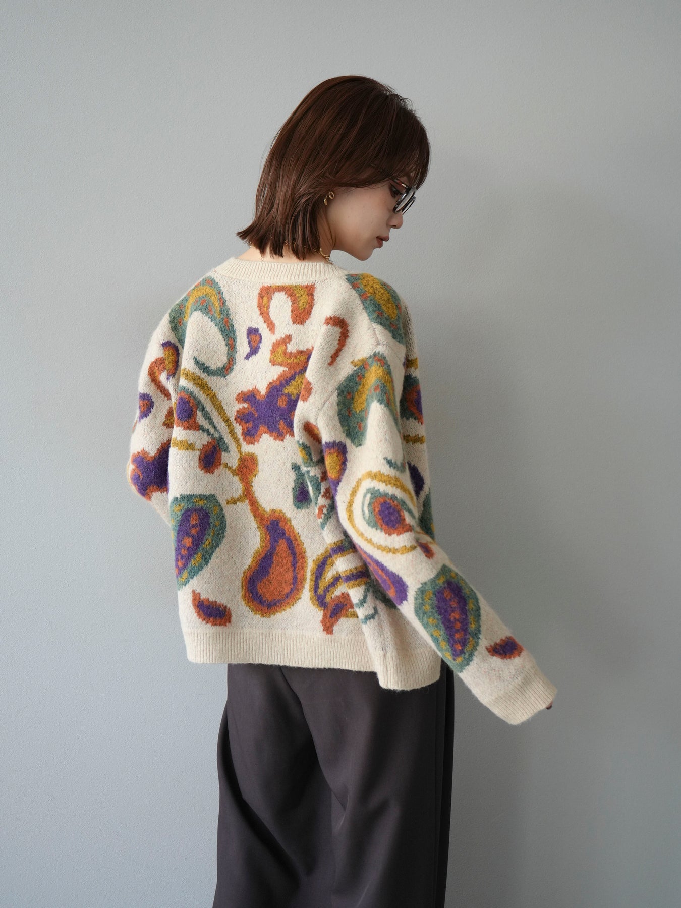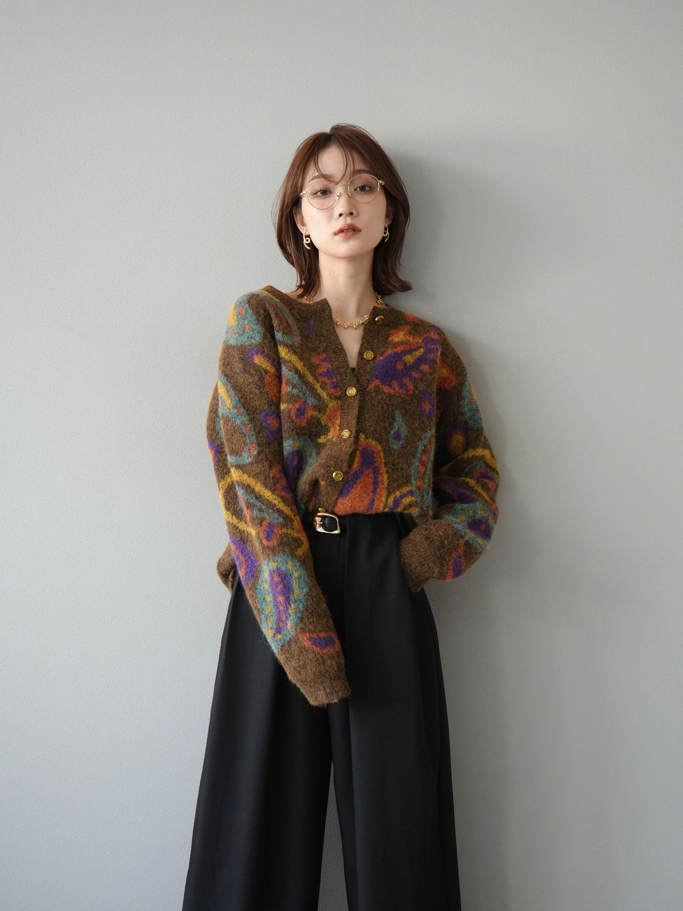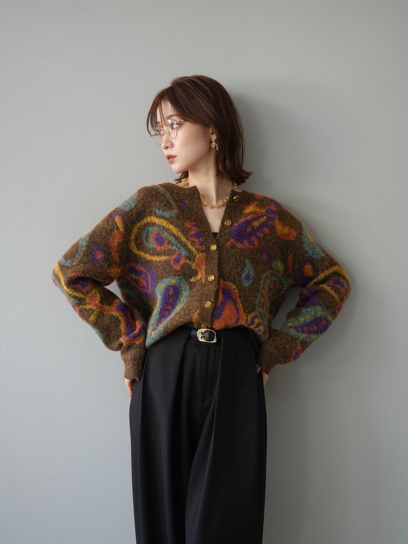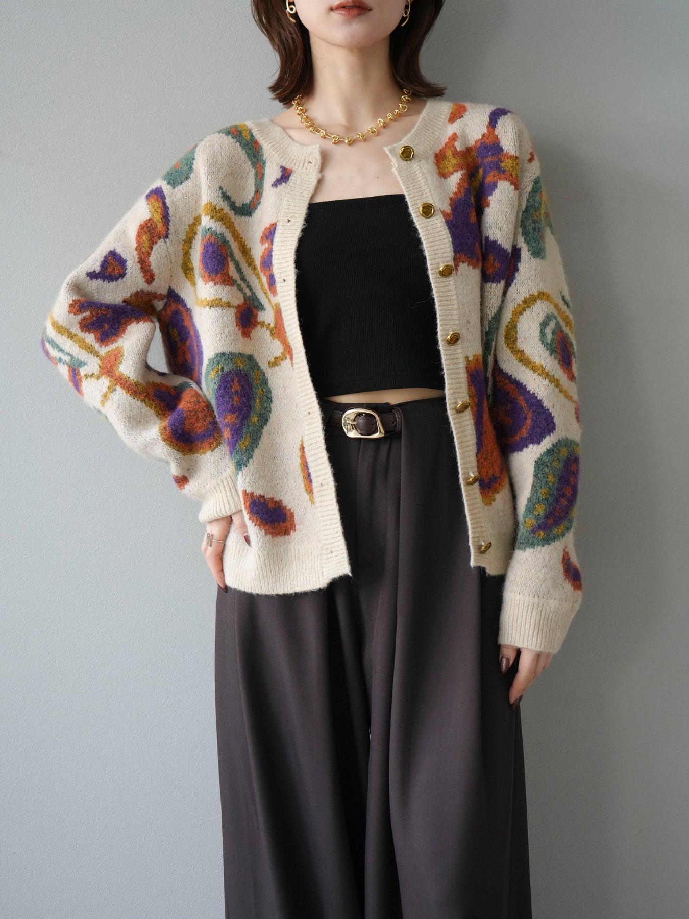 [予約]ミックスヤーンペイズリー柄ニットカーディガン