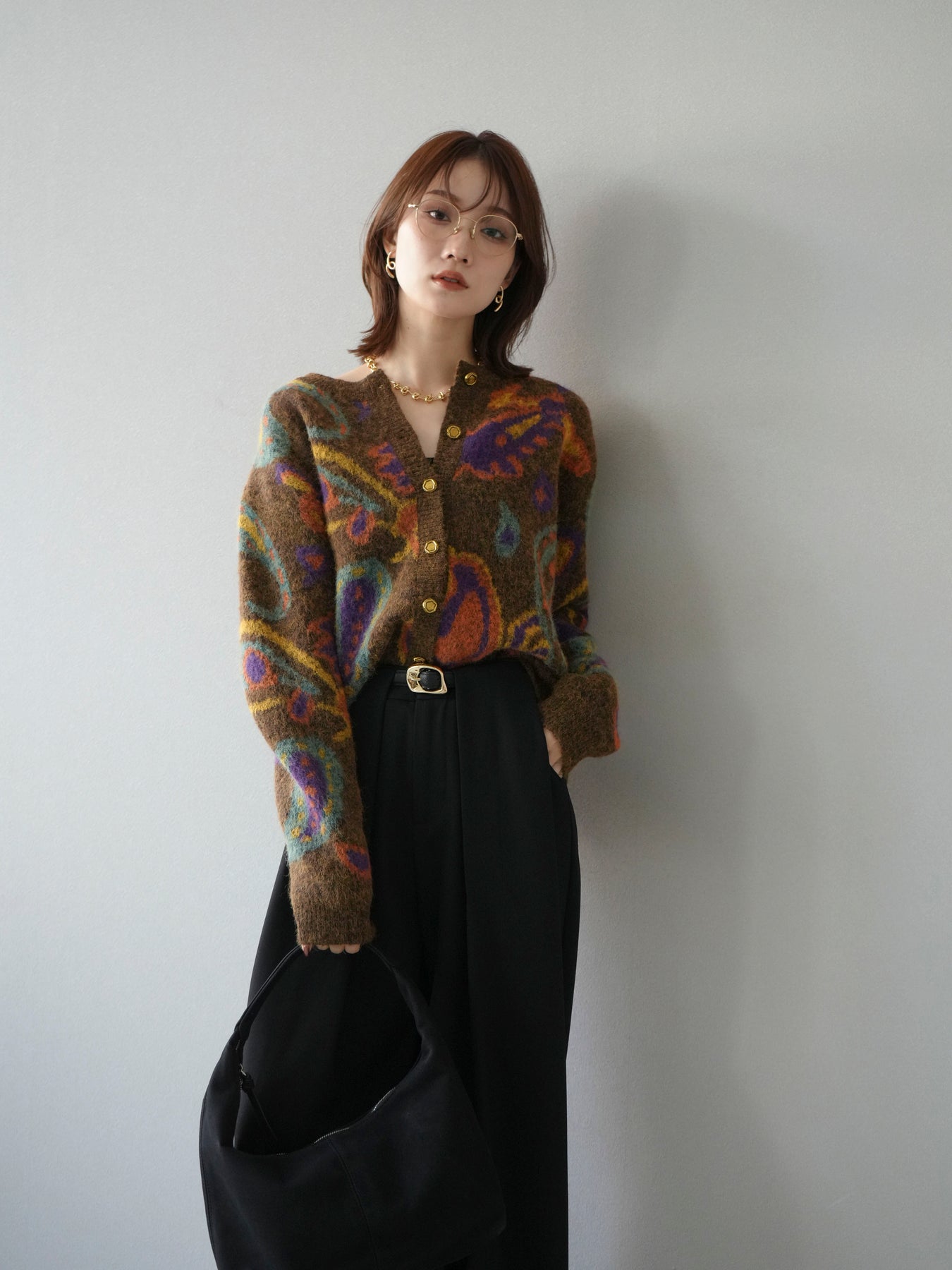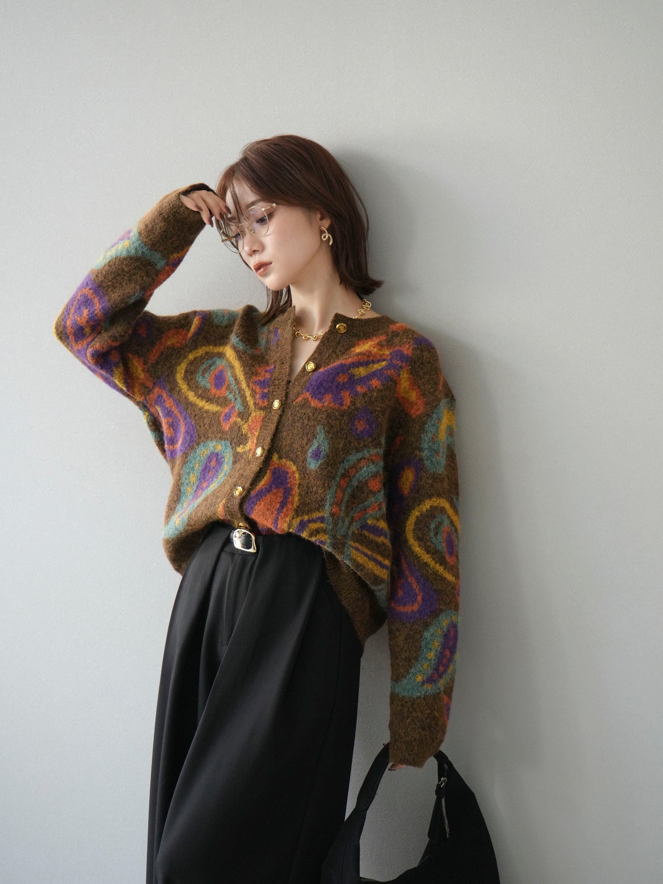 ◆ [予約]ミックスヤーンペイズリー柄ニットカーディガン