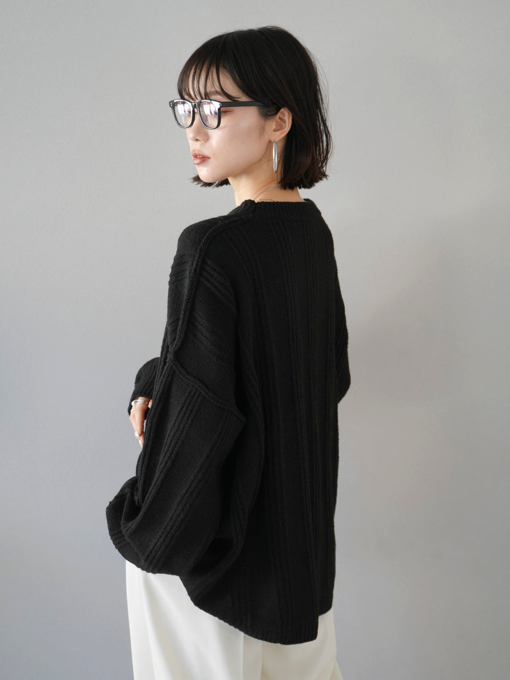[予約]ポコポコ編みオフショルニットプルオーバー/black
