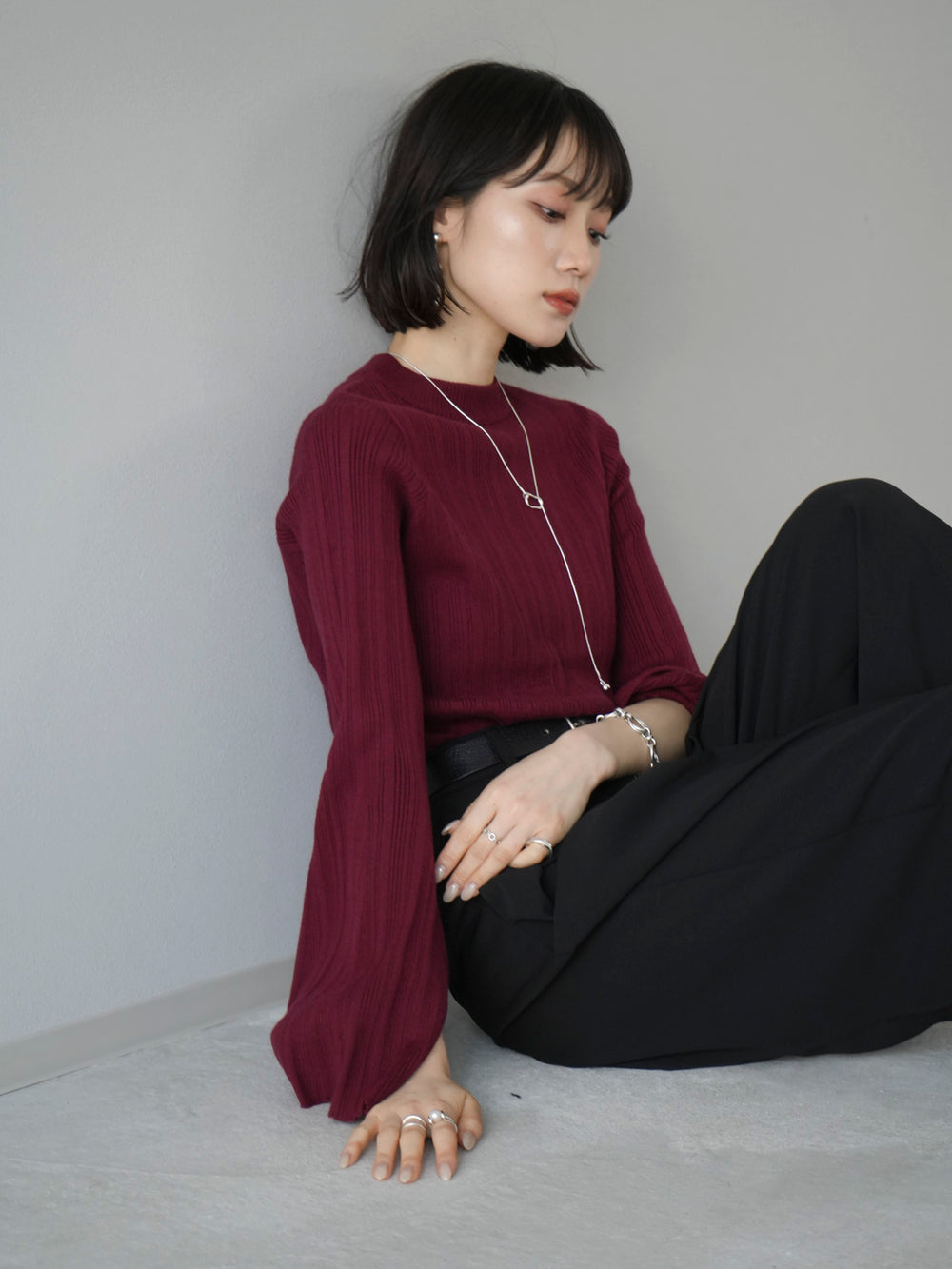 [予約]ラメ異素材ボーダーリブニットプルオーバー/bordeaux×brown