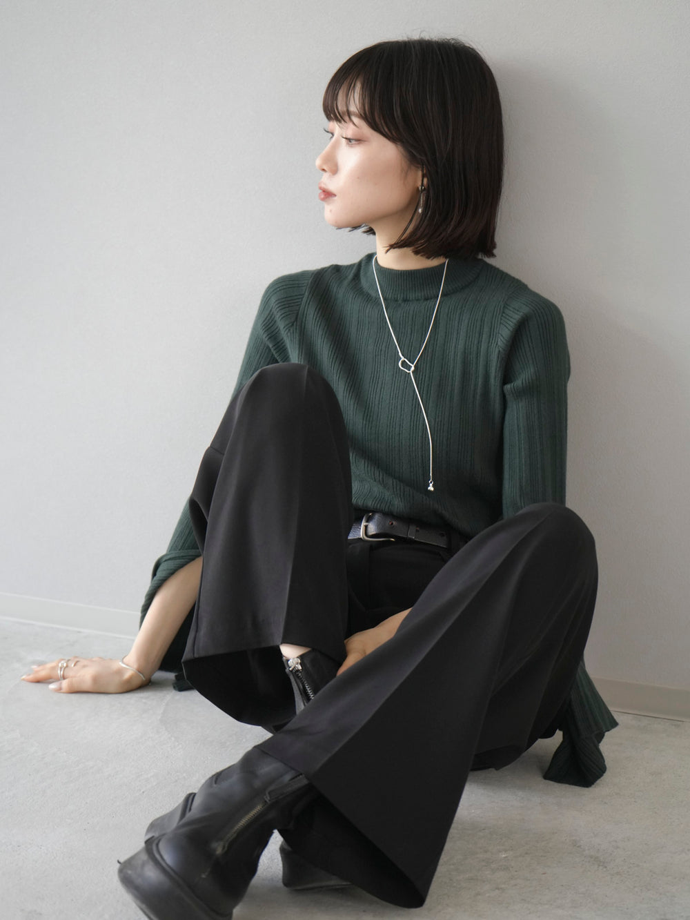 [予約]ラメ異素材ボーダーリブニットプルオーバー/off×green