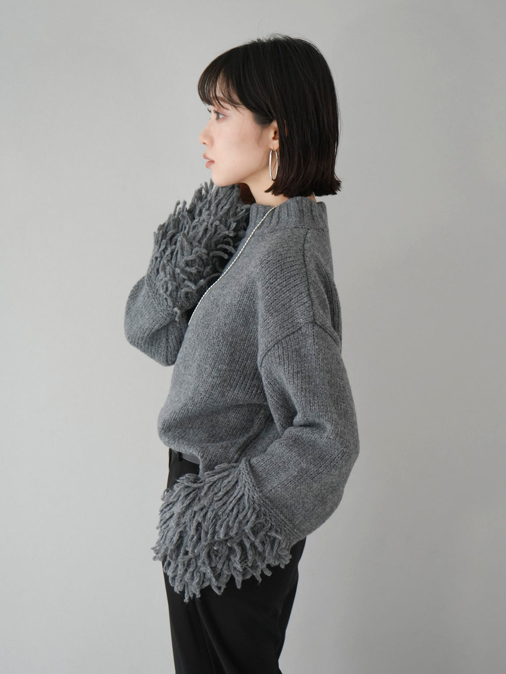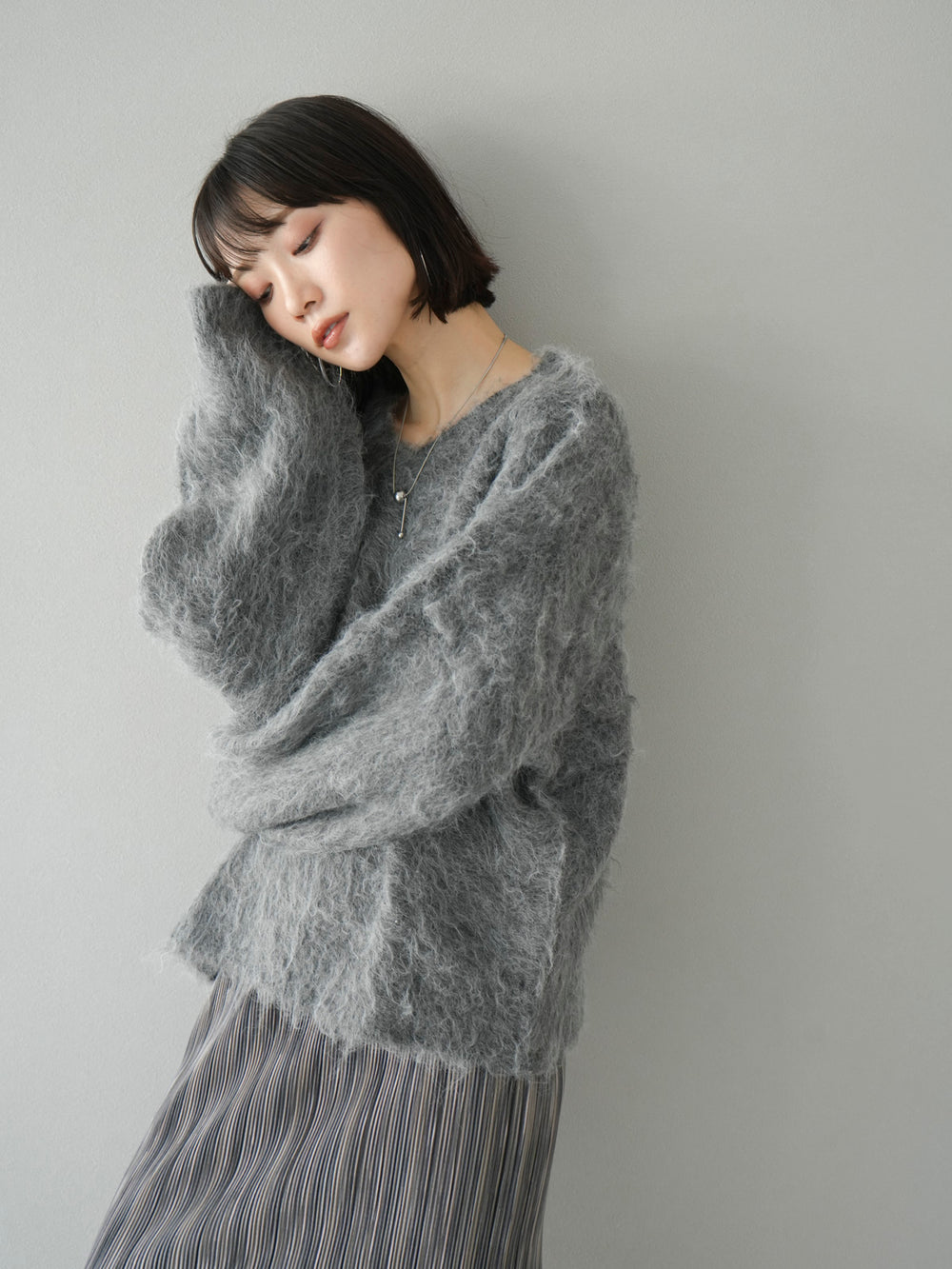 [予約]ボリュームスリーブシャギー MIXニットプルオーバー/charcoal