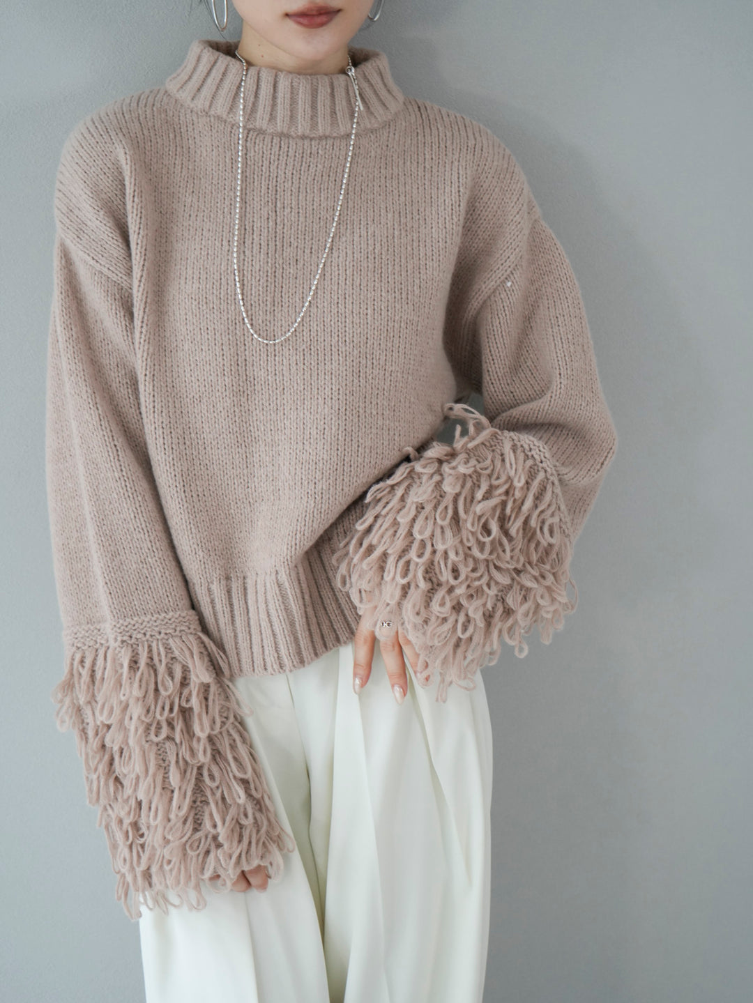 [予約]ボリュームスリーブシャギー MIXニットプルオーバー/brown
