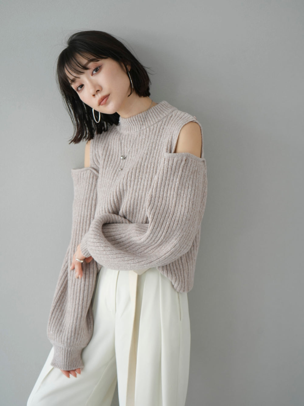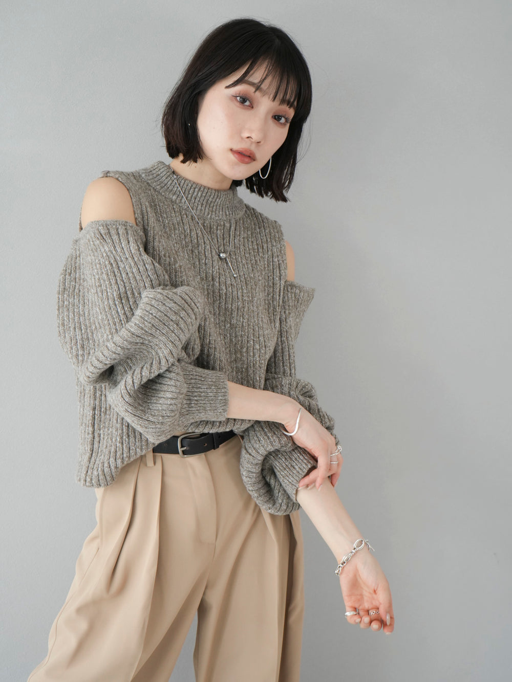 [予約]ポコポコ編みオフショルニットプルオーバー/gray
