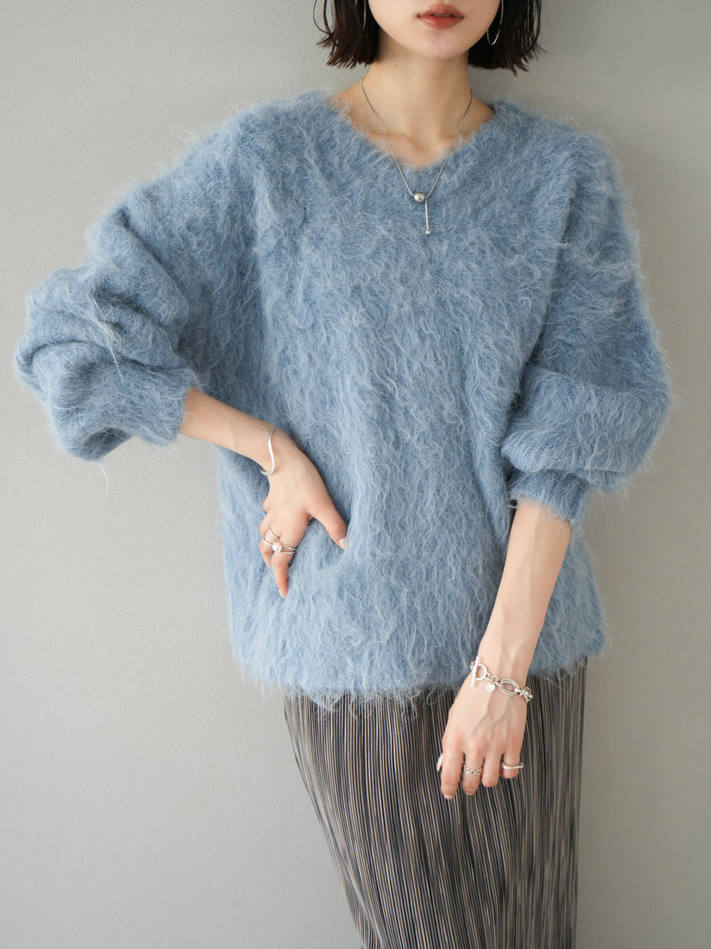 [予約]ボリュームスリーブシャギー MIXニットプルオーバー/mint