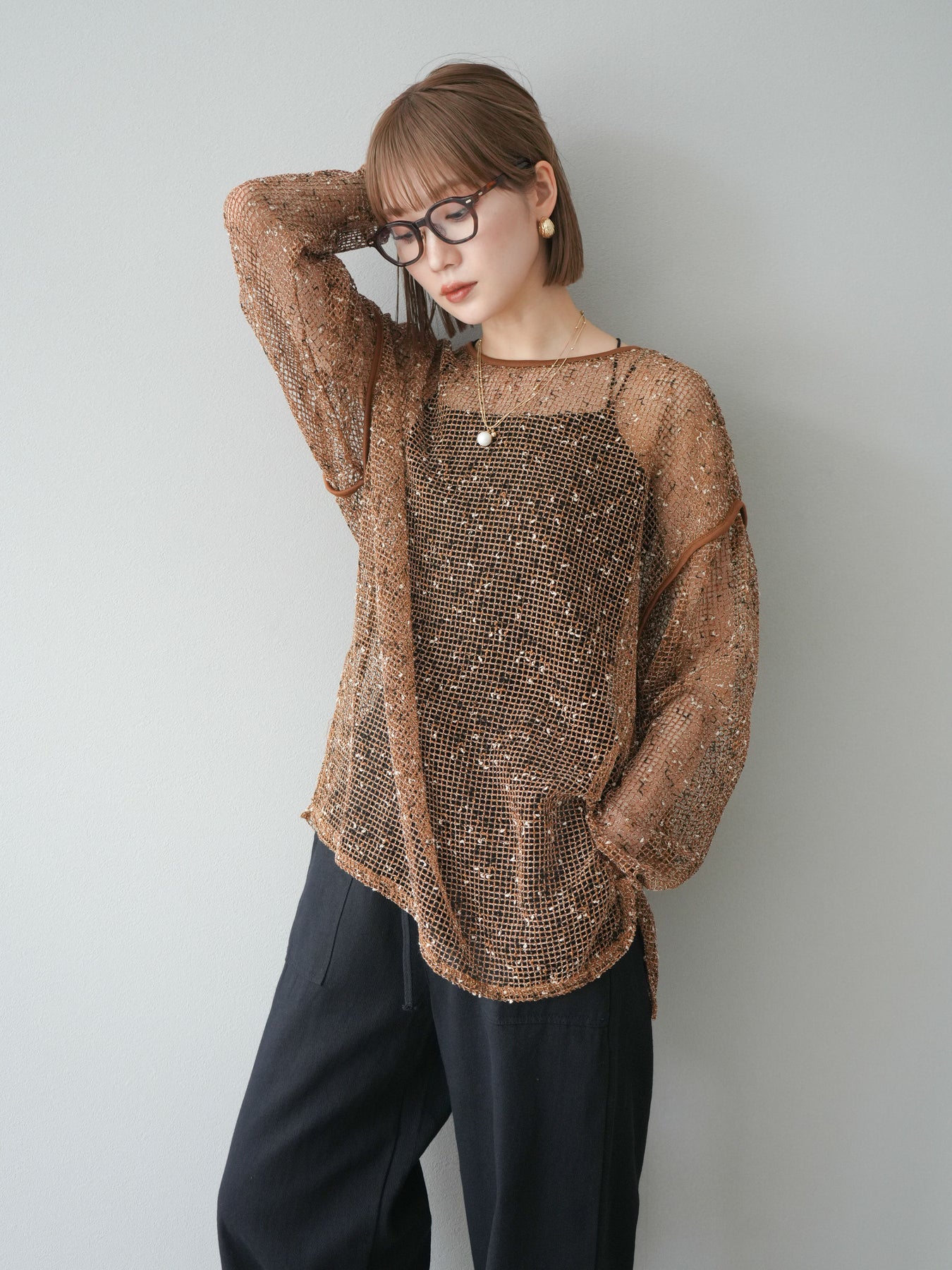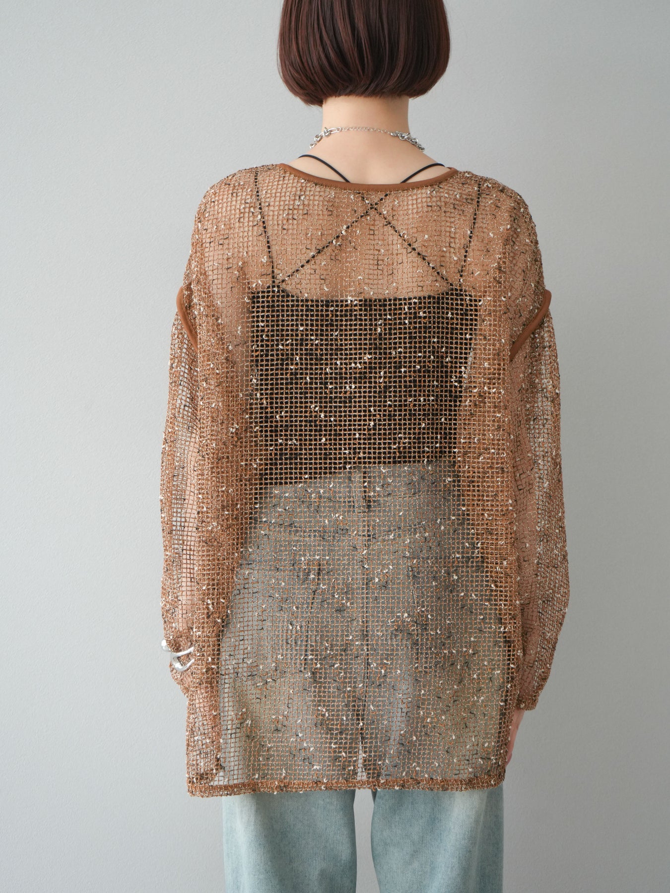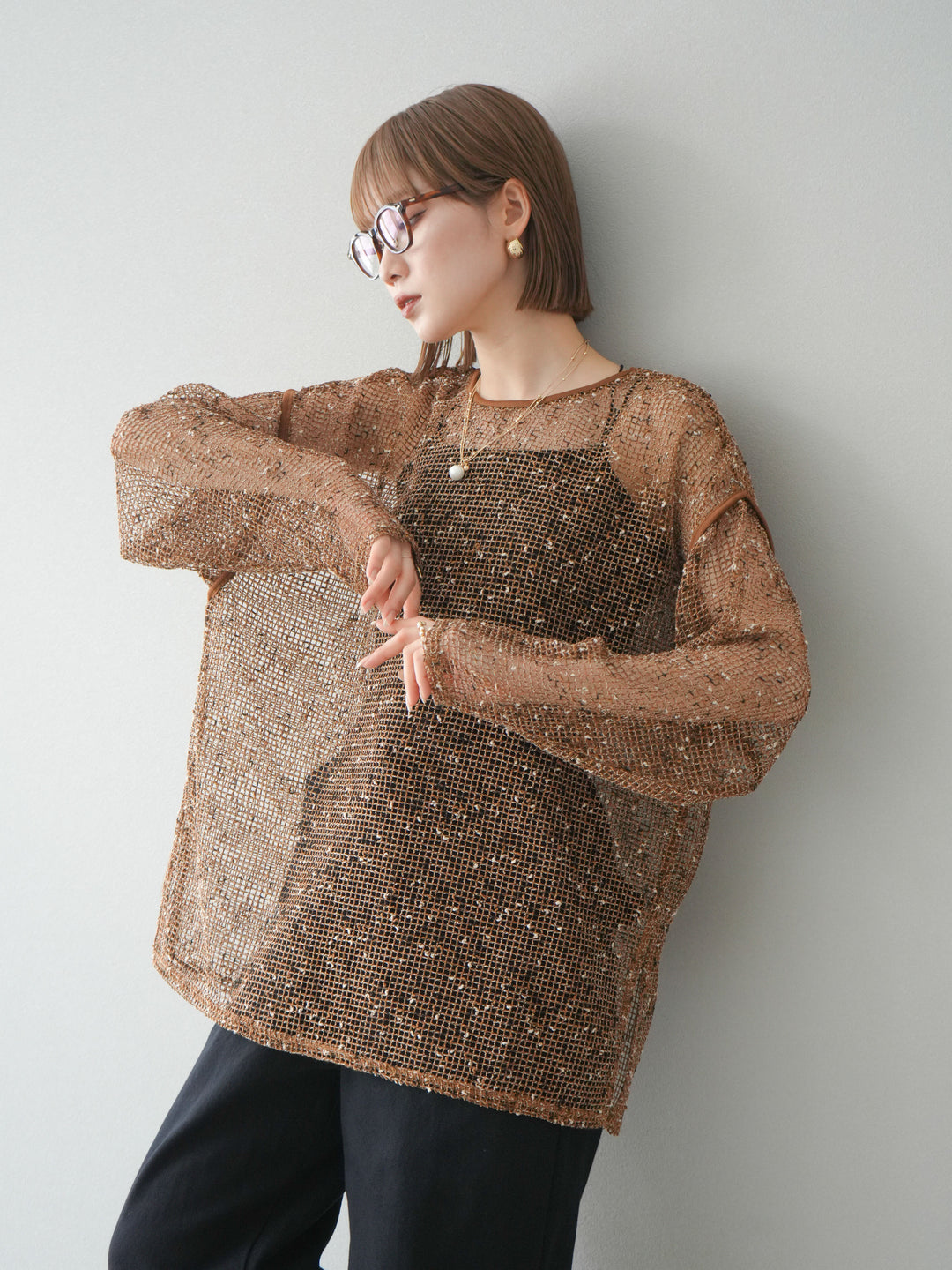 トレンドのシアー感を楽しめるメッシュプルオーバー。程よい透け感が抜け感を演出し、レイヤードスタイルを楽しめる一枚です。軽やかな素材で着心地も快適。ゆったりとしたシルエットがこなれた雰囲気をプラスし、カジュアルからモードな着こなしまで幅広く活躍します。 ※ボトムス、キャミソール(インナー)以外の商品は一律でインナーは付属していません。
