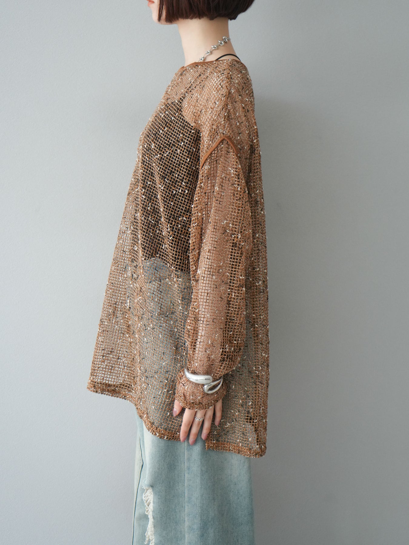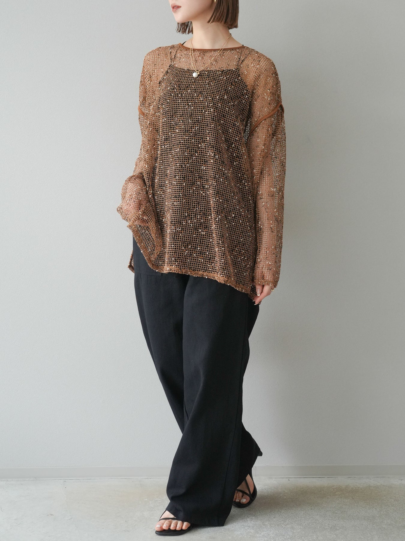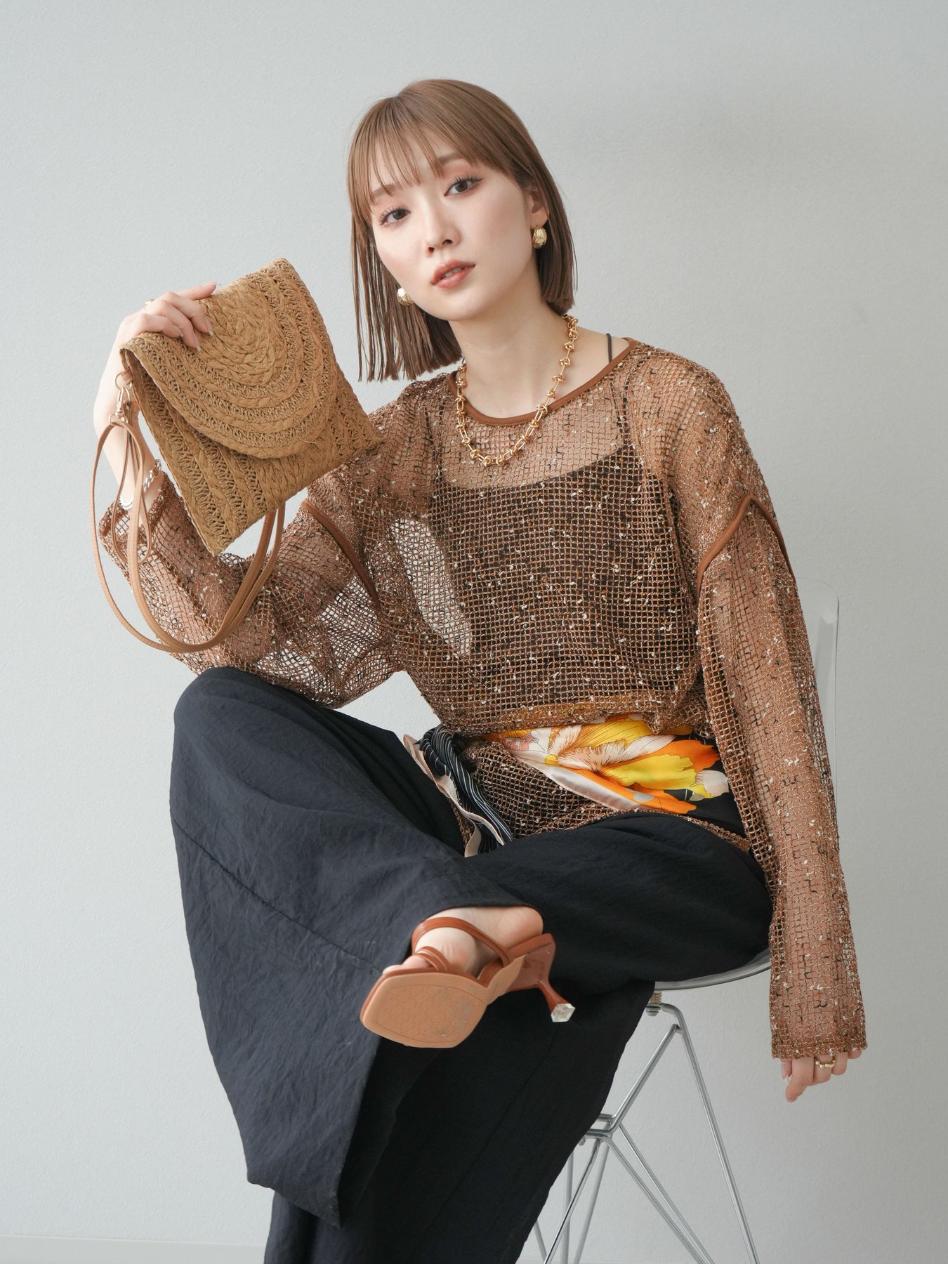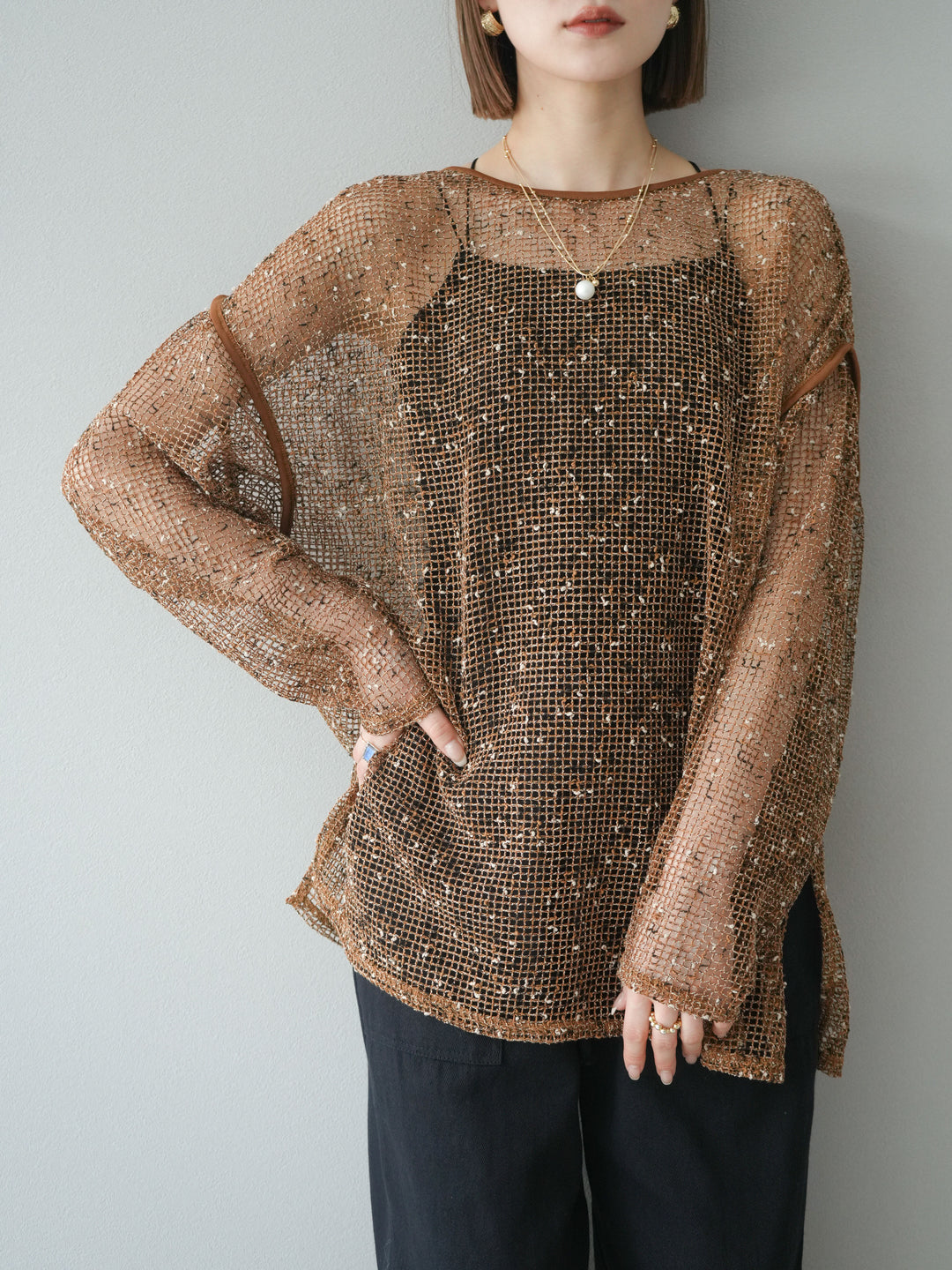 トレンドのシアー感を楽しめるメッシュプルオーバー。程よい透け感が抜け感を演出し、レイヤードスタイルを楽しめる一枚です。軽やかな素材で着心地も快適。ゆったりとしたシルエットがこなれた雰囲気をプラスし、カジュアルからモードな着こなしまで幅広く活躍します。 ※ボトムス、キャミソール(インナー)以外の商品は一律でインナーは付属していません。