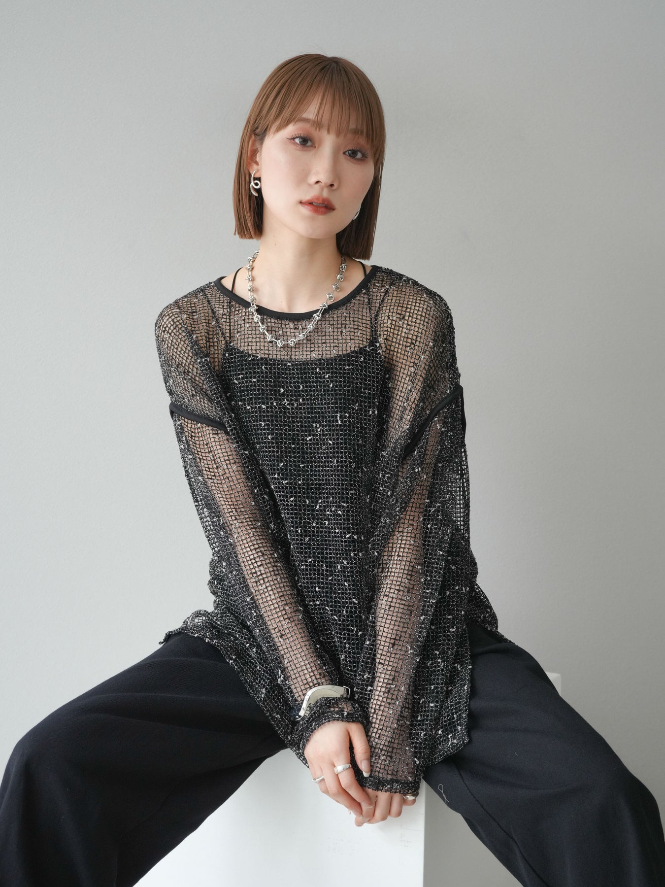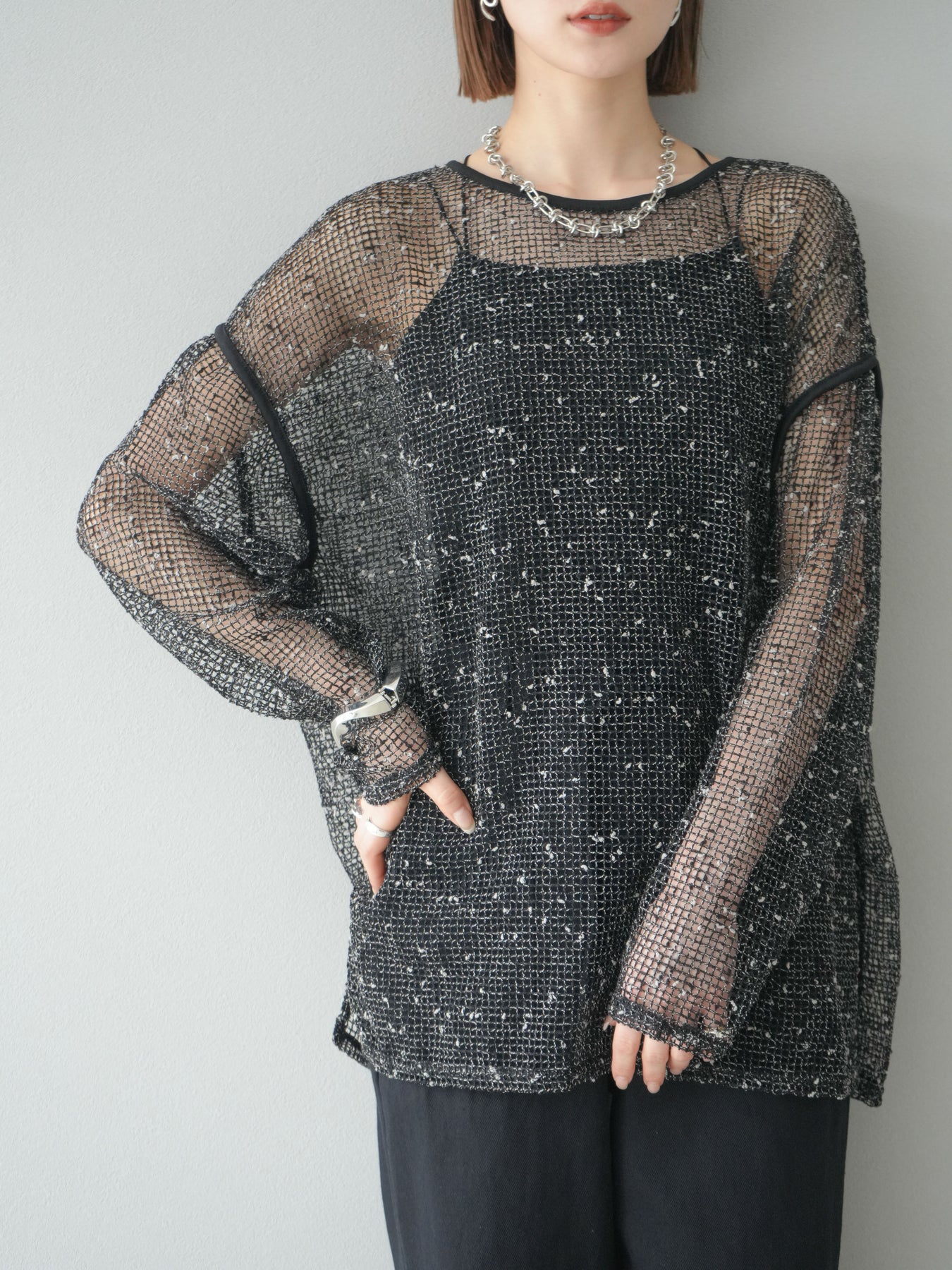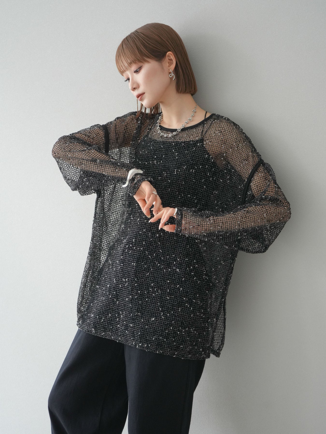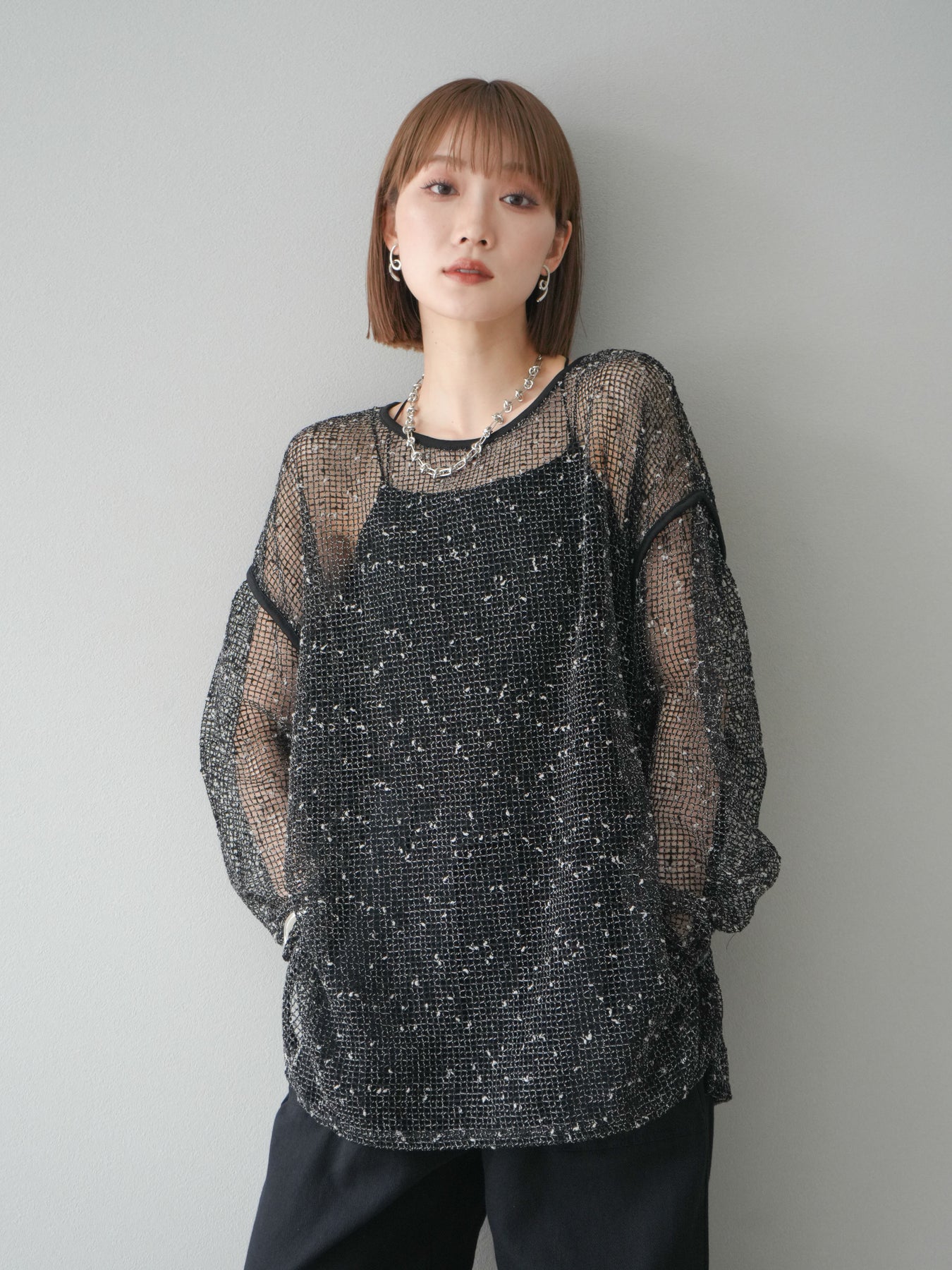 トレンドのシアー感を楽しめるメッシュプルオーバー。程よい透け感が抜け感を演出し、レイヤードスタイルを楽しめる一枚です。軽やかな素材で着心地も快適。ゆったりとしたシルエットがこなれた雰囲気をプラスし、カジュアルからモードな着こなしまで幅広く活躍します。 ※ボトムス、キャミソール(インナー)以外の商品は一律でインナーは付属していません。