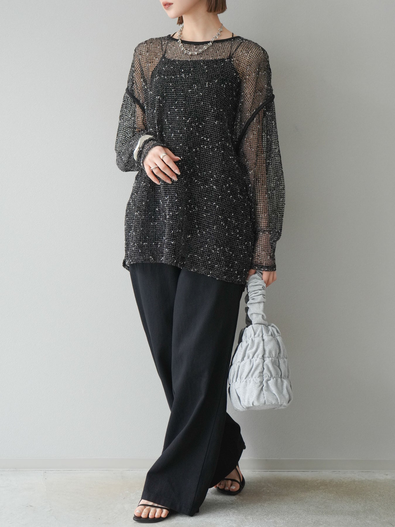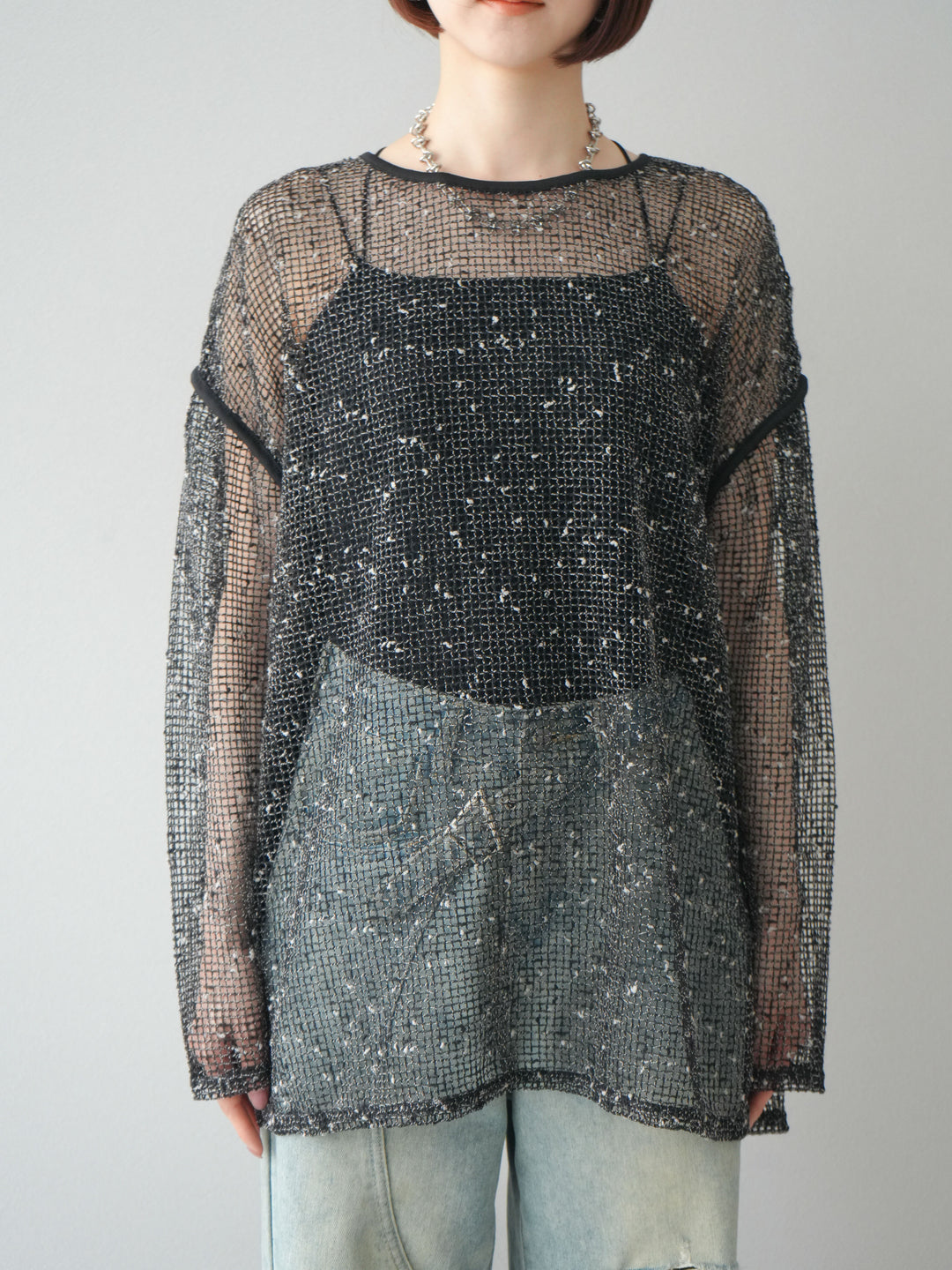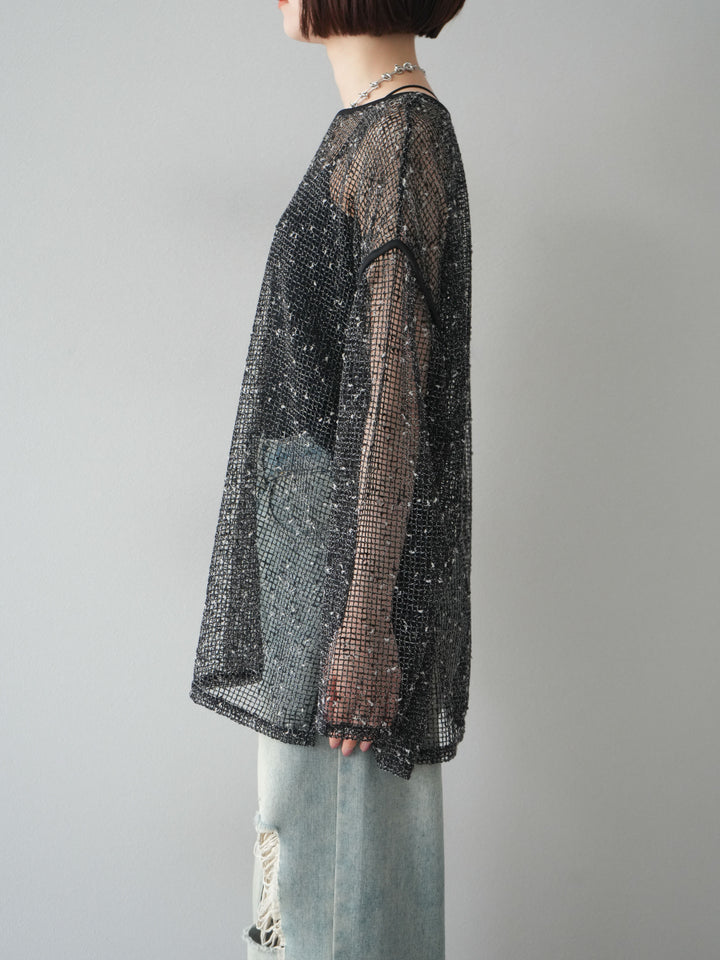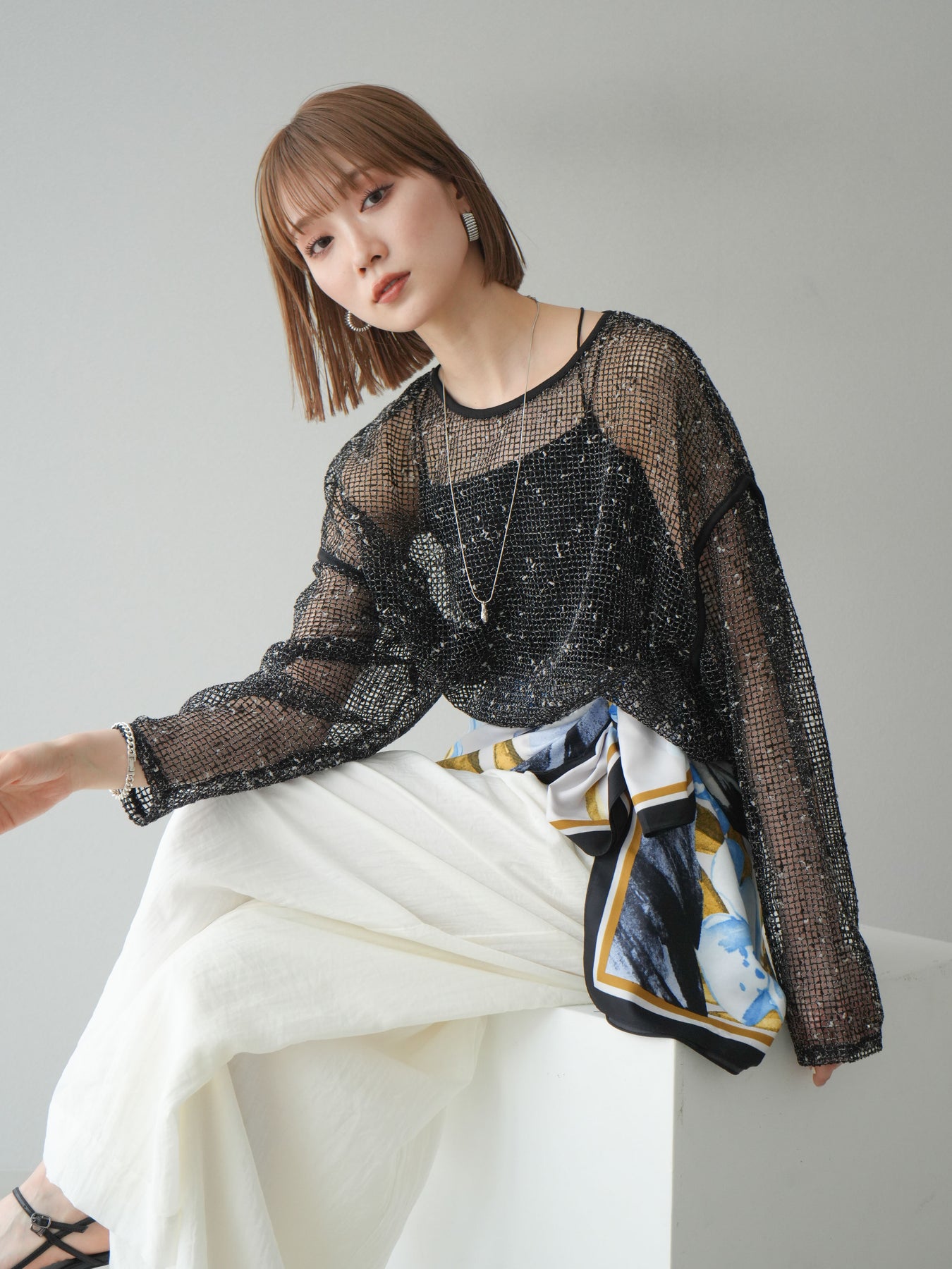 トレンドのシアー感を楽しめるメッシュプルオーバー。程よい透け感が抜け感を演出し、レイヤードスタイルを楽しめる一枚です。軽やかな素材で着心地も快適。ゆったりとしたシルエットがこなれた雰囲気をプラスし、カジュアルからモードな着こなしまで幅広く活躍します。 ※ボトムス、キャミソール(インナー)以外の商品は一律でインナーは付属していません。