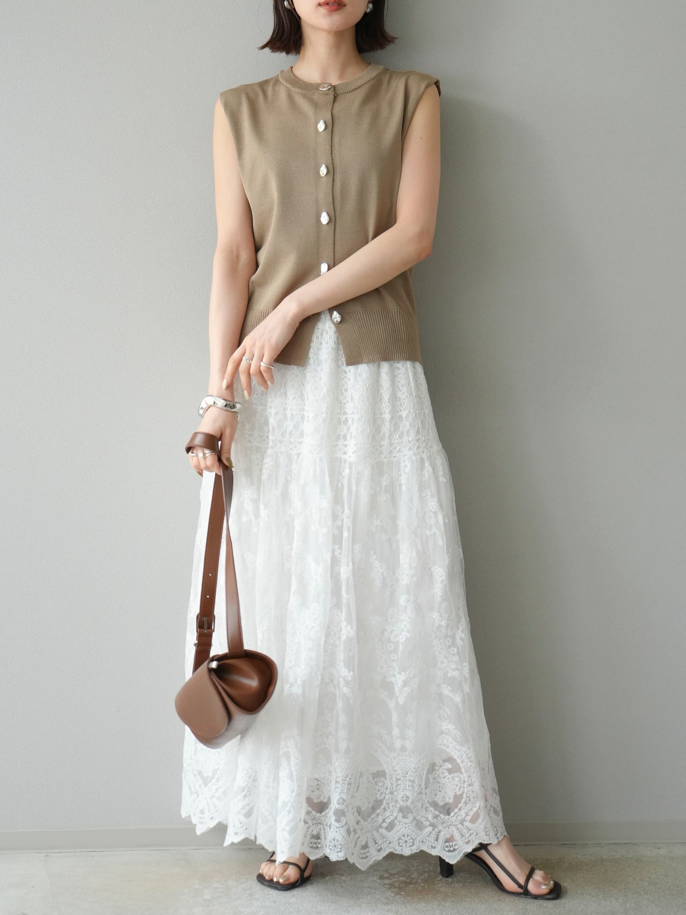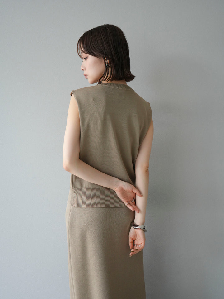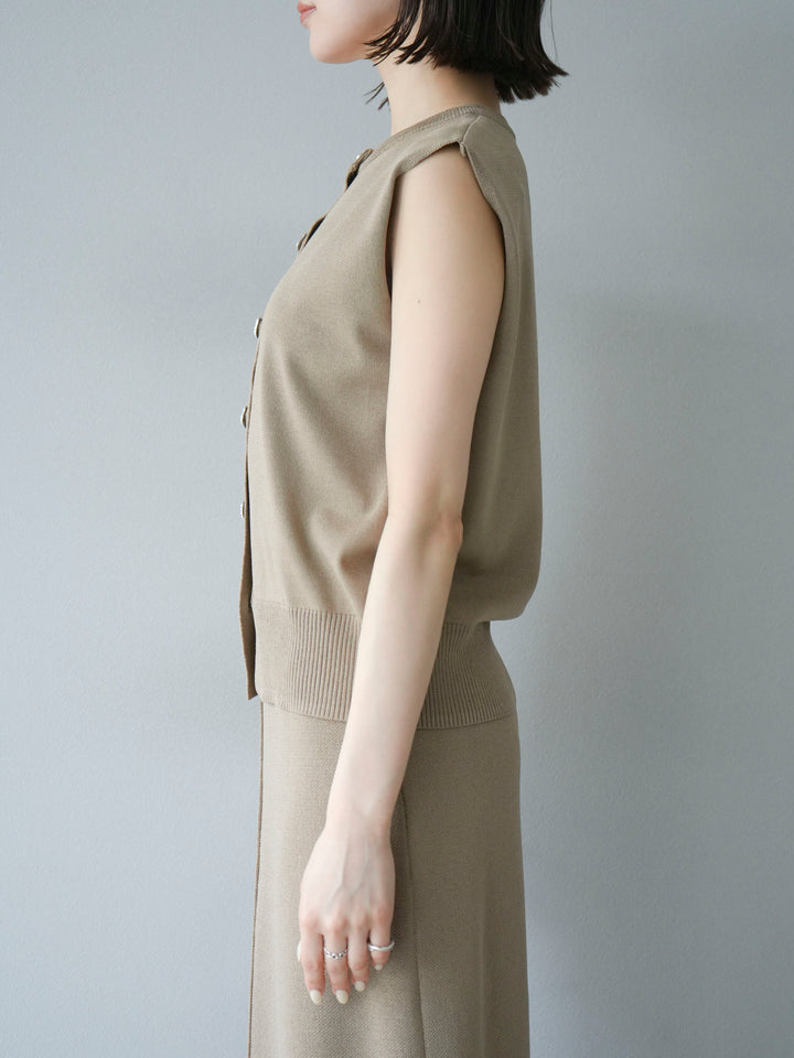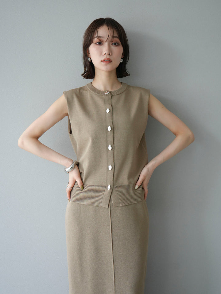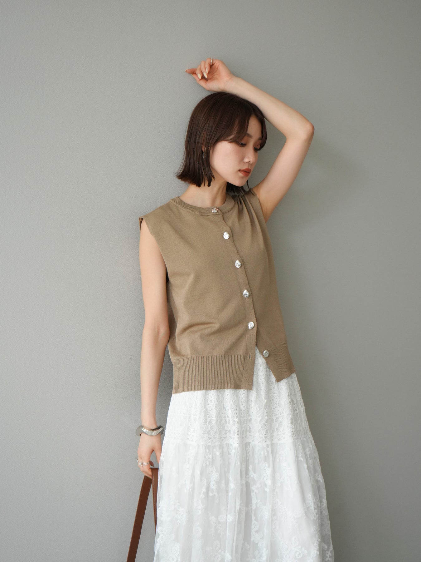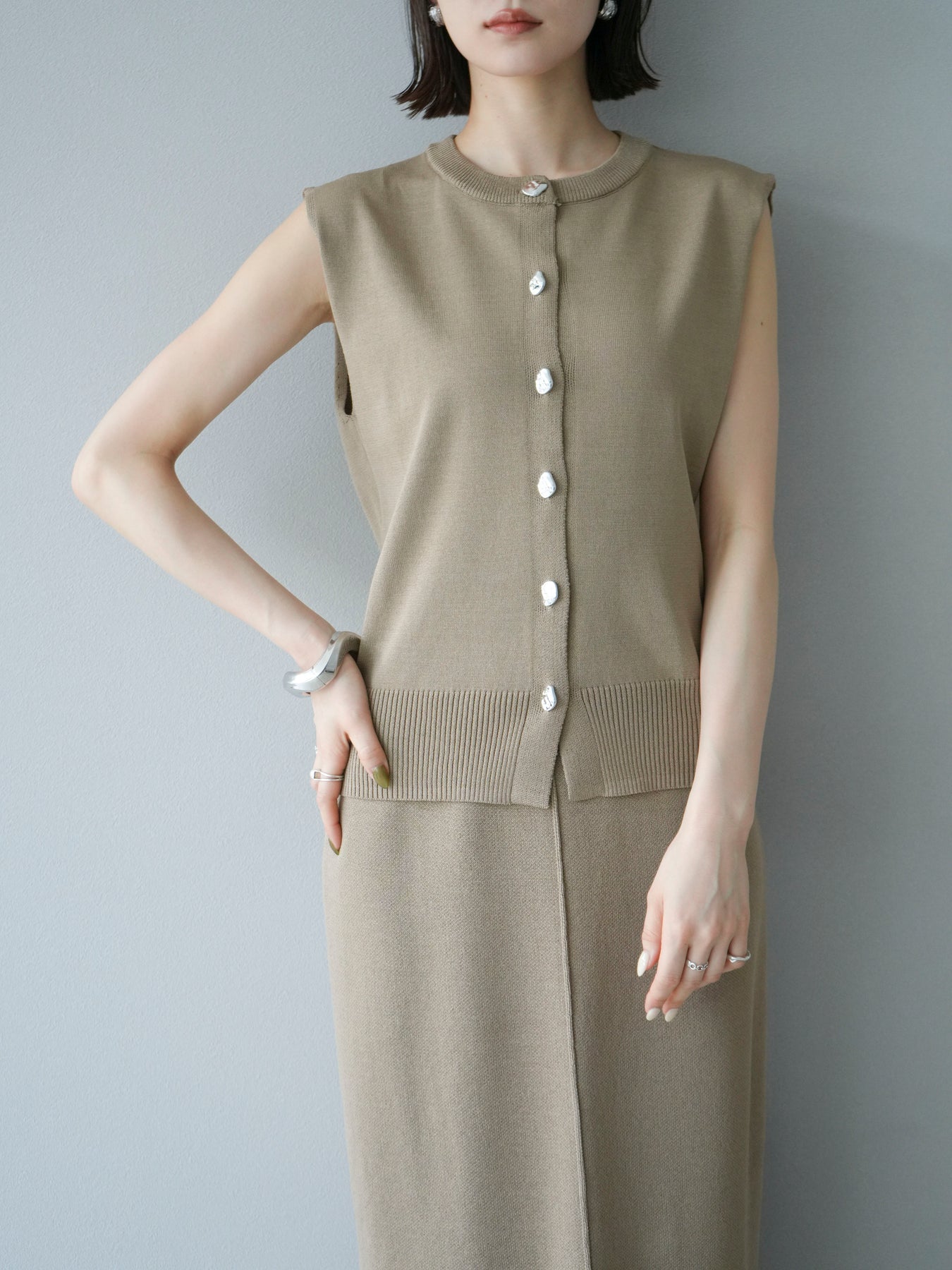 [予約]レーヨンポリデザインボタンニットベスト/ベージュ