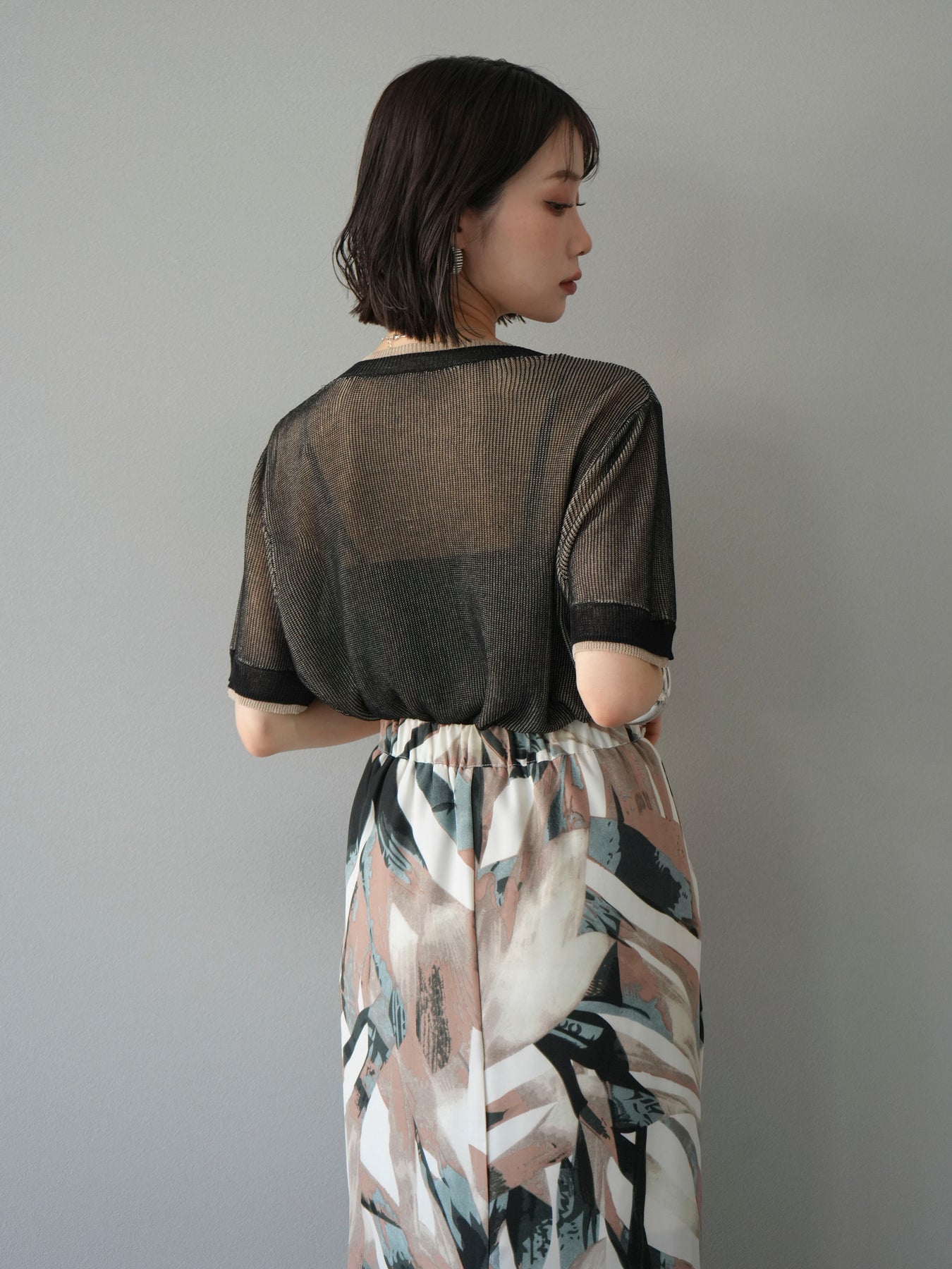・お手入れ方法:水温30℃以下手洗いでのお洗濯をお薦めします。素材の特性上、洗濯の際に色落ち・縮みが生じる恐れがありますので単独で・短時間でのお洗濯をお薦めします。裏返してネットに入れ手洗いコースで洗濯、洗濯後は形を整えてから干してください。※タンブラー乾燥は控えてください。 濡れたままの状態で擦れると、色落ち色移りすることがあります。つけ置き洗いや雨や汗で濡れたまま放置は避け、速やかに処理してください。着用中の摩擦や汗、水濡れ、濃淡差があるものとの重ね着にご注意ください。 また、素材の特性上伸びやすい為ハンガーの使用はお控えいただき畳んで保管ください。