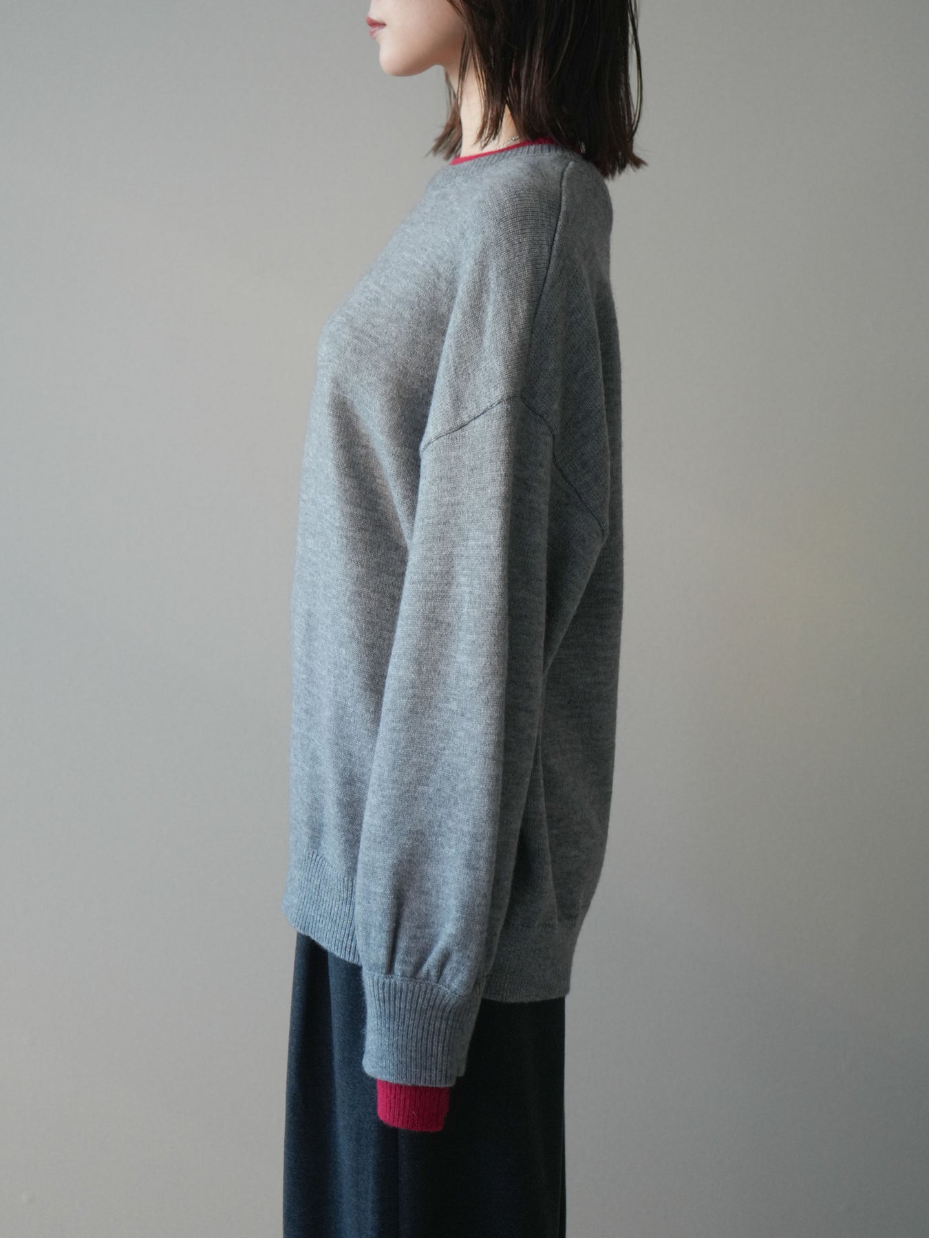 [予約]ヘンリーネック配色レイヤードニットプルオーバー/middlegray