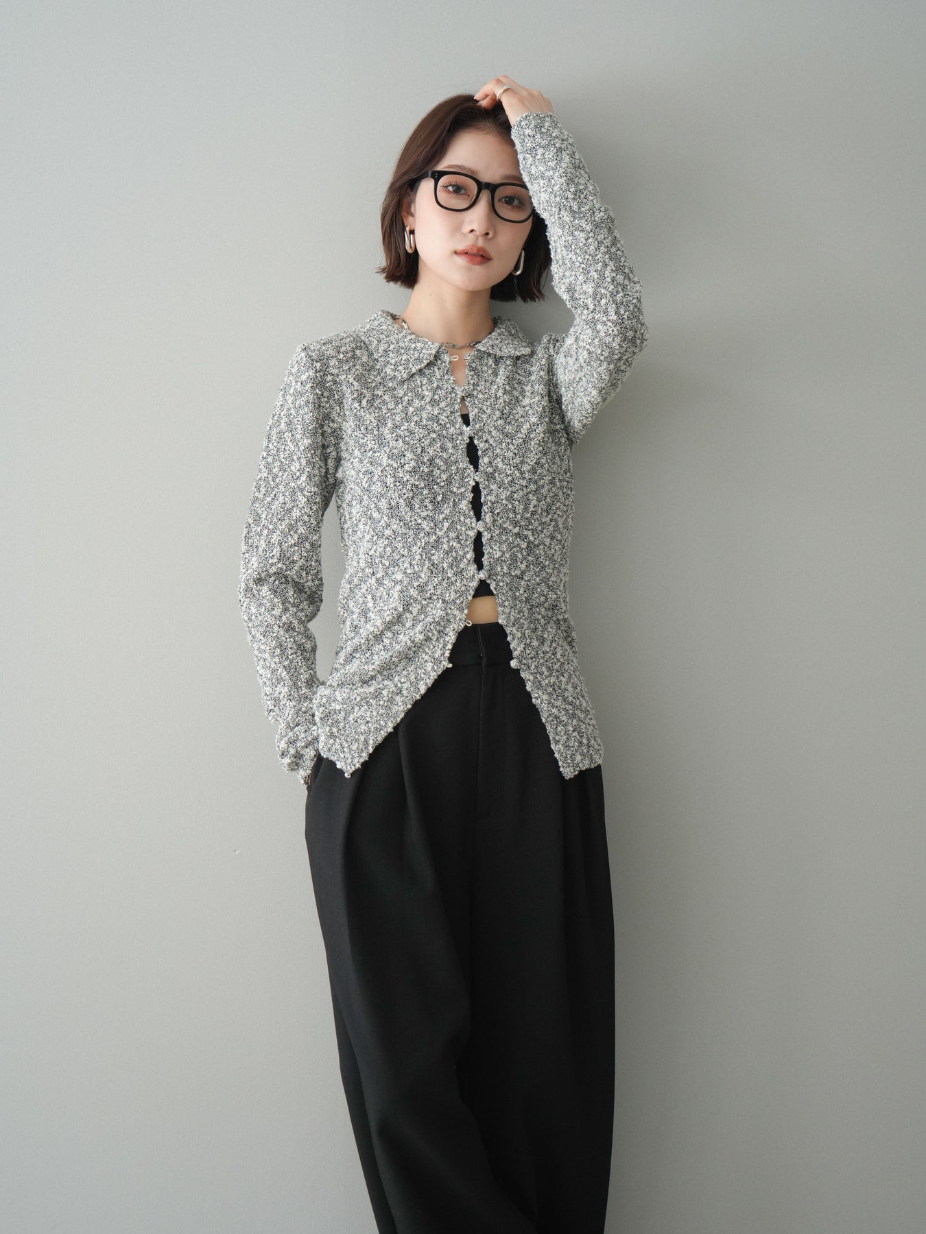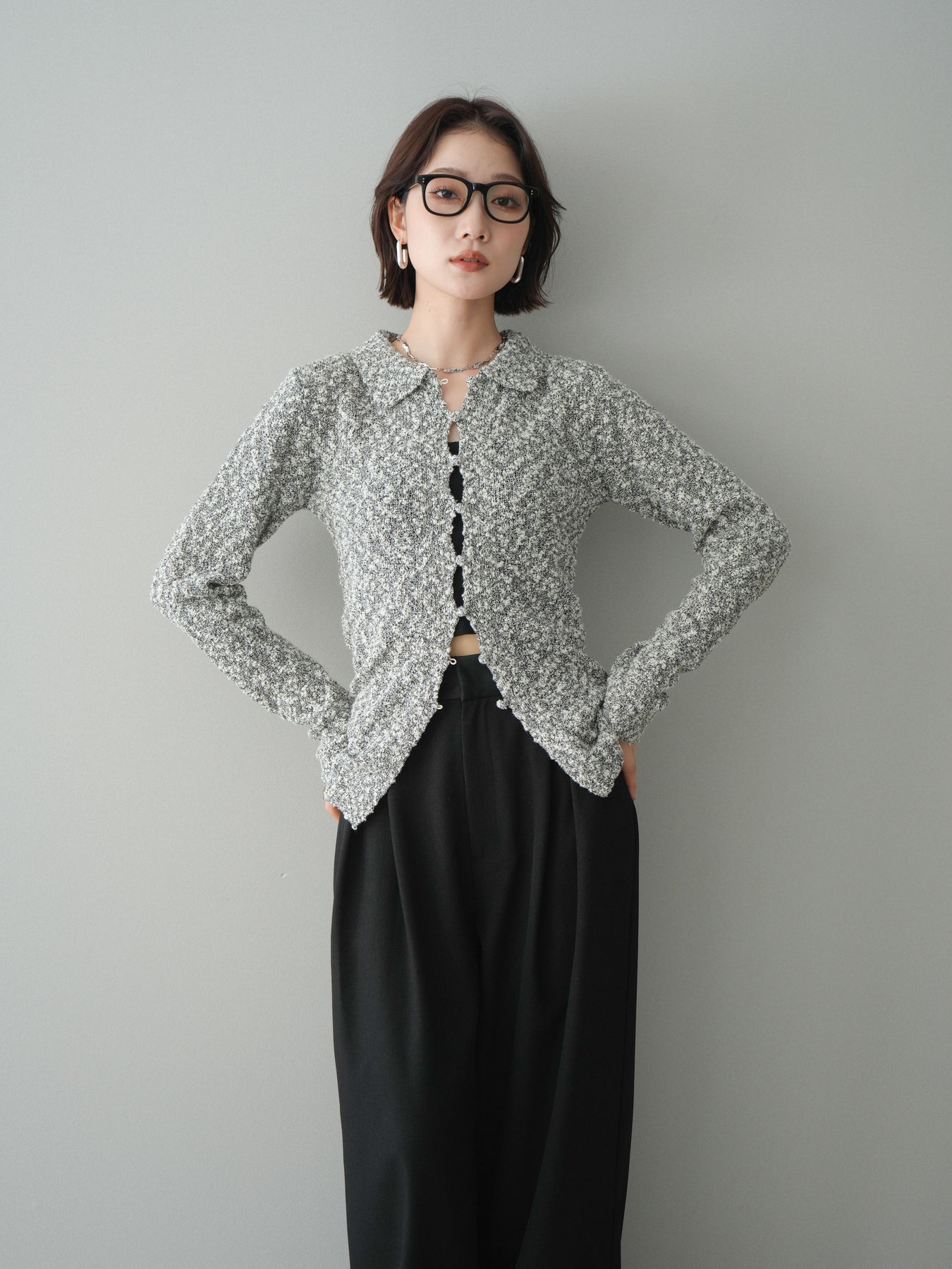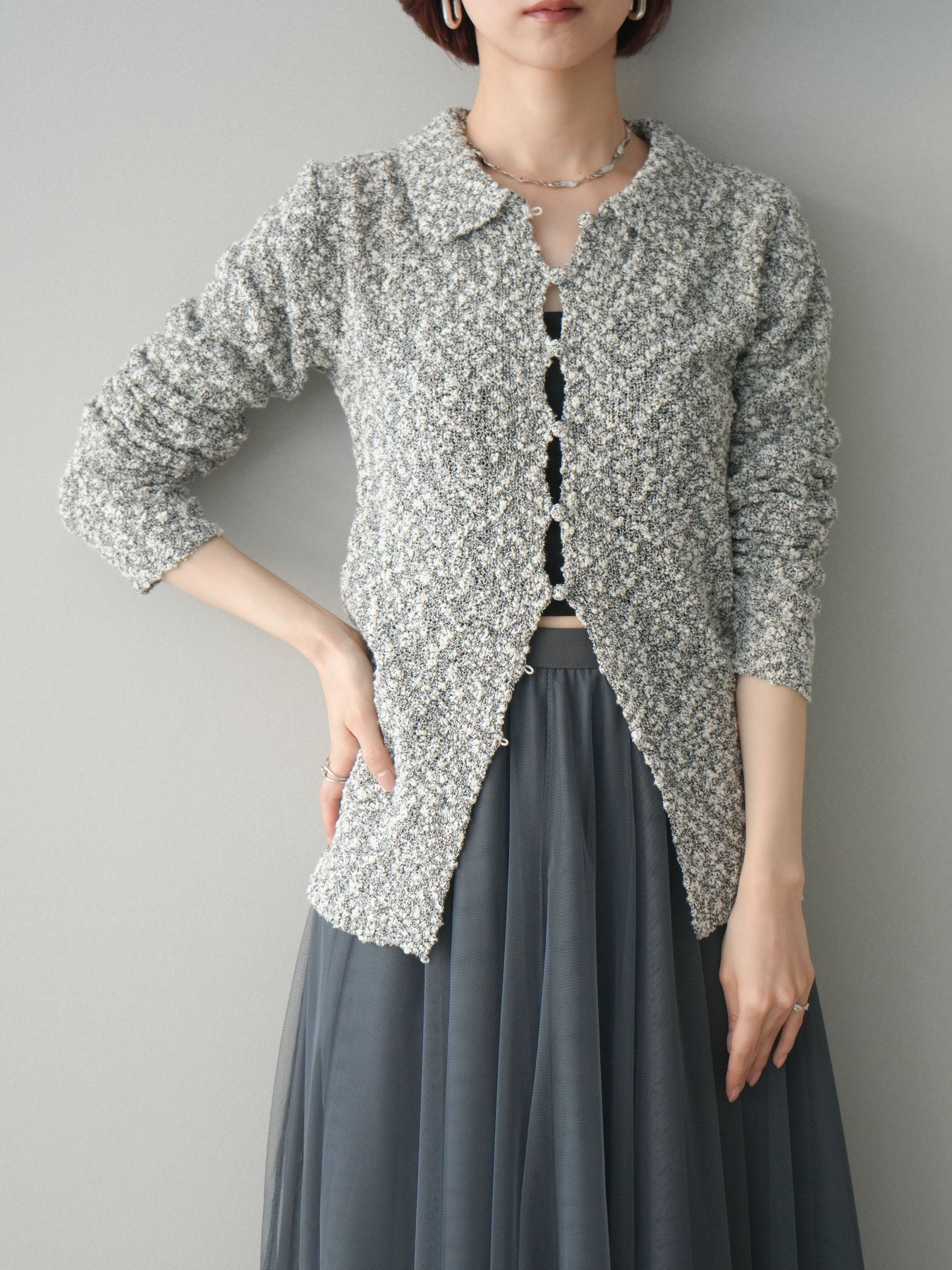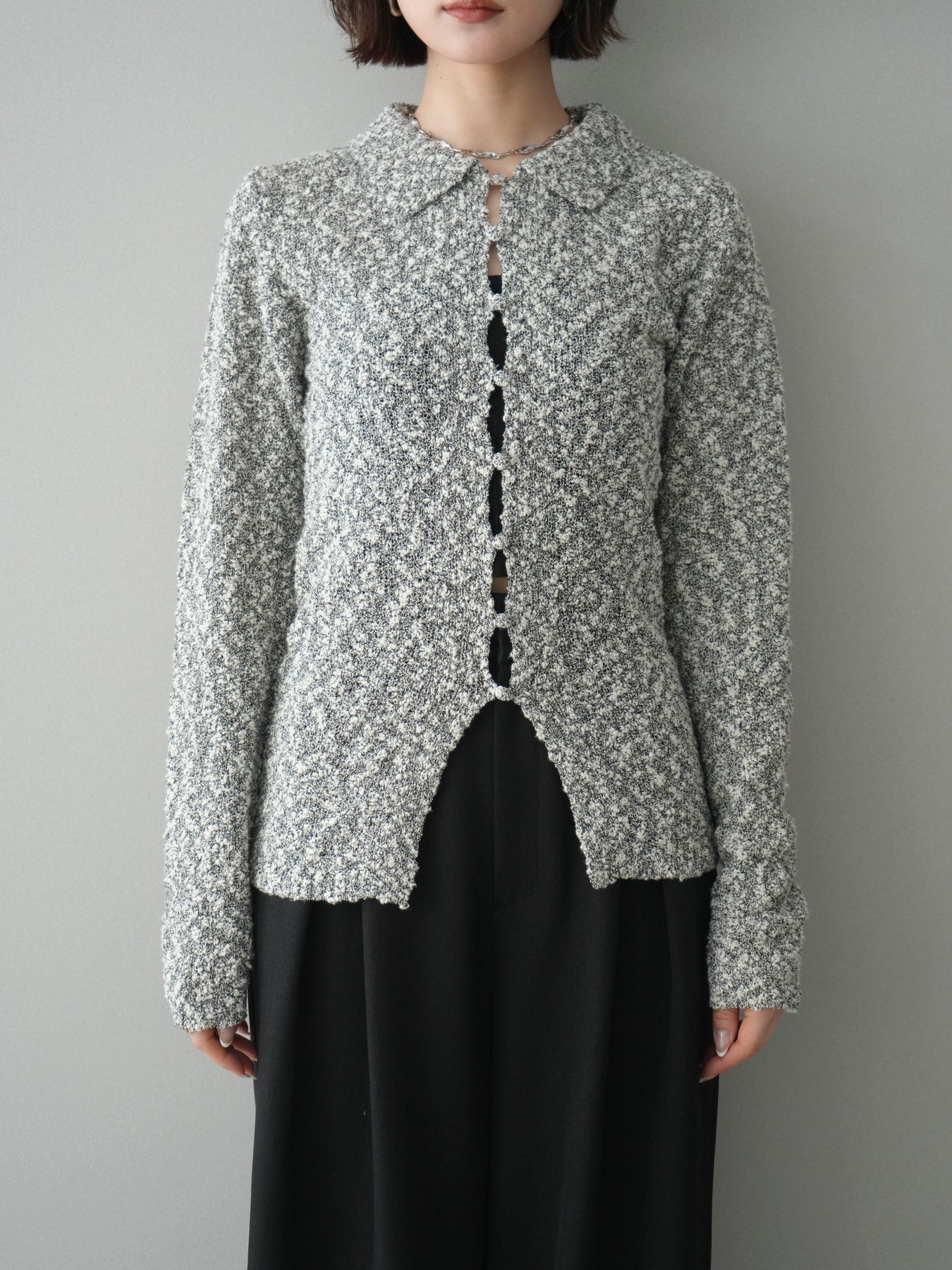 [予約]透かし編みブークレポロニットトップス/mix