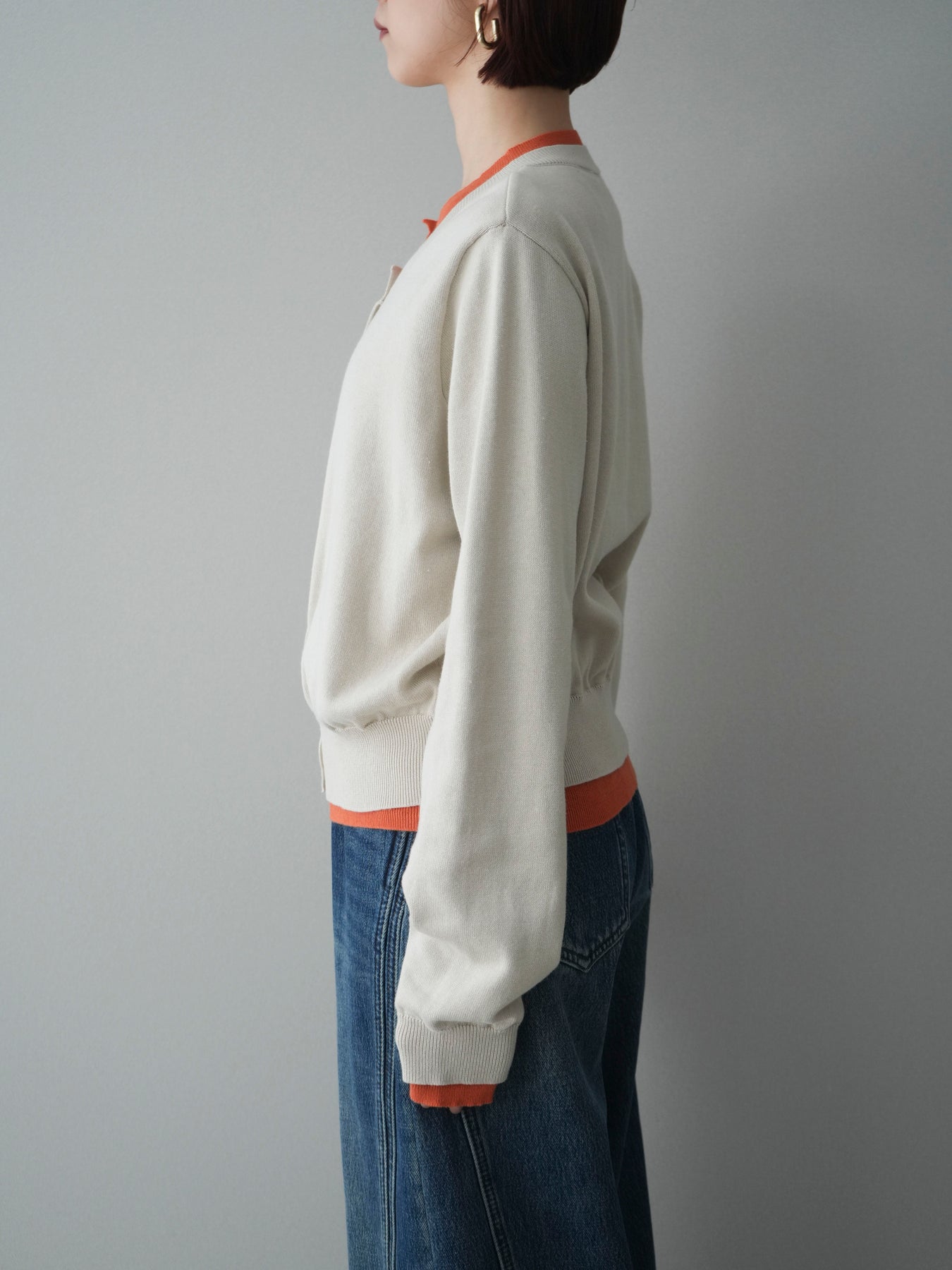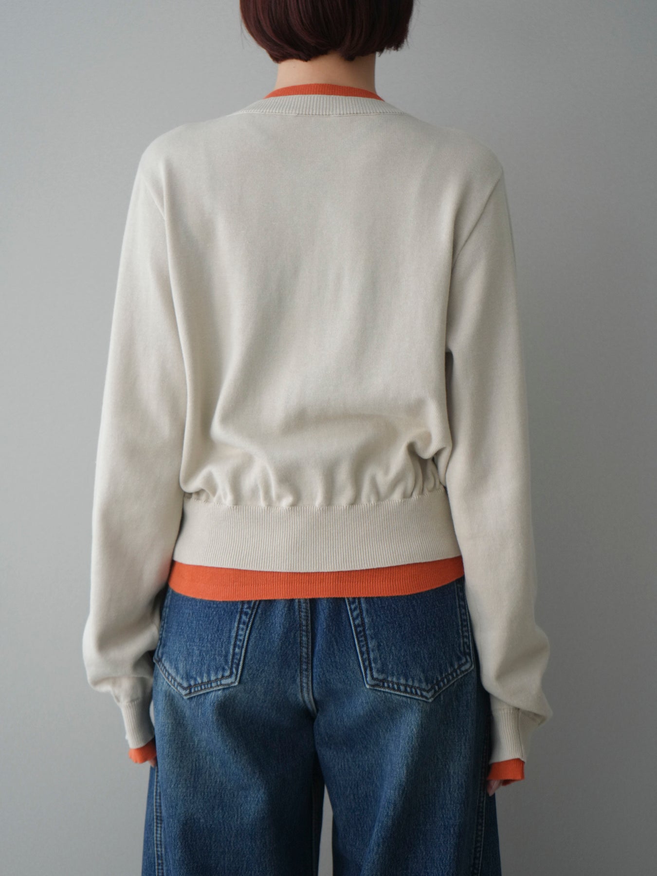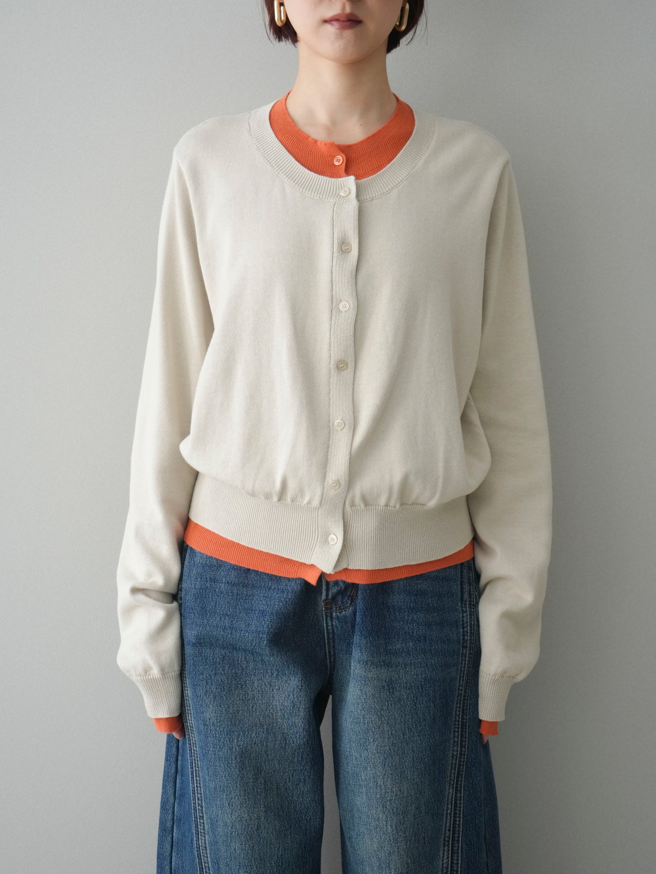 [予約]配色レイヤードコットンアクリルニットカーディガン/ivory