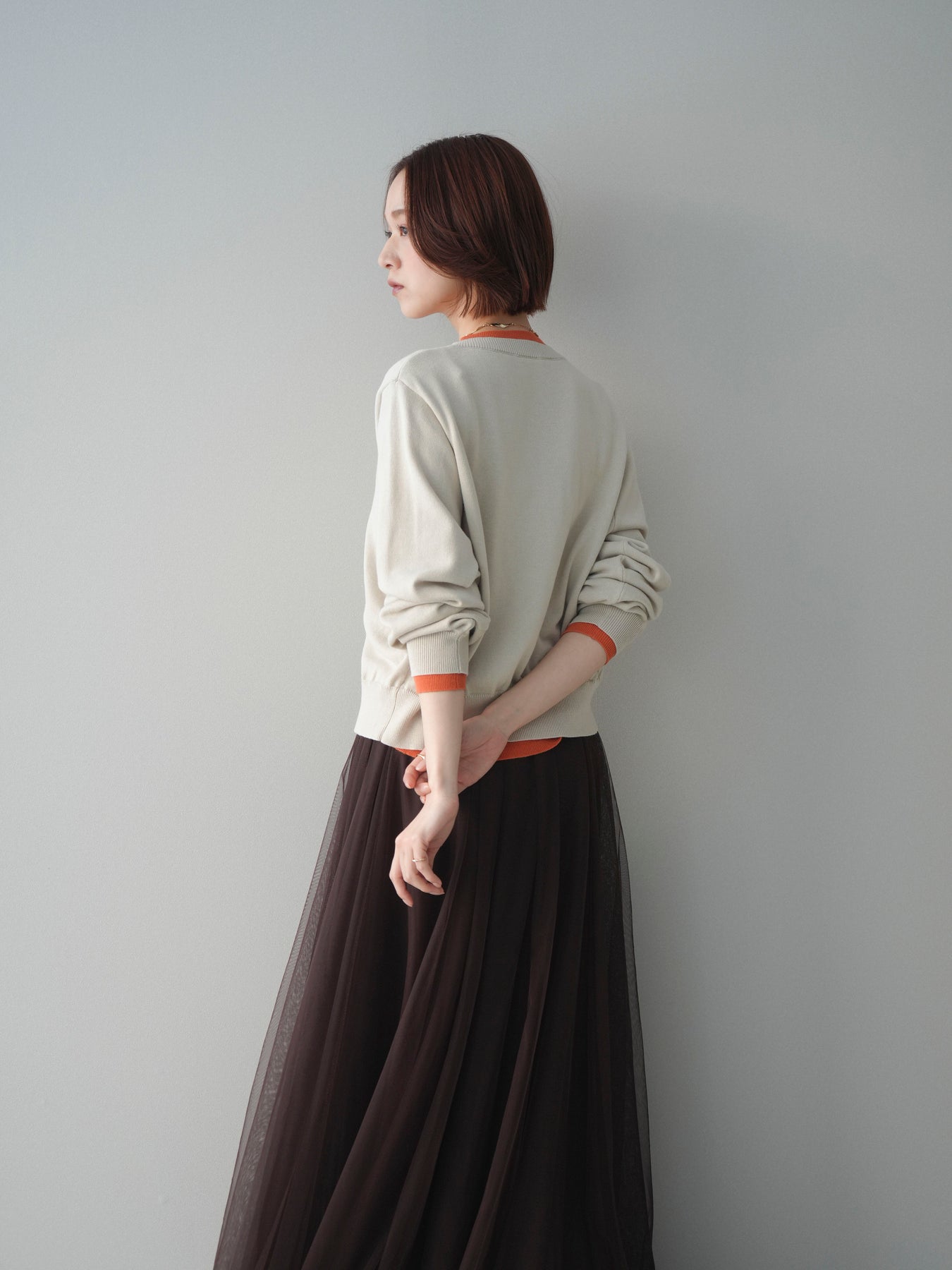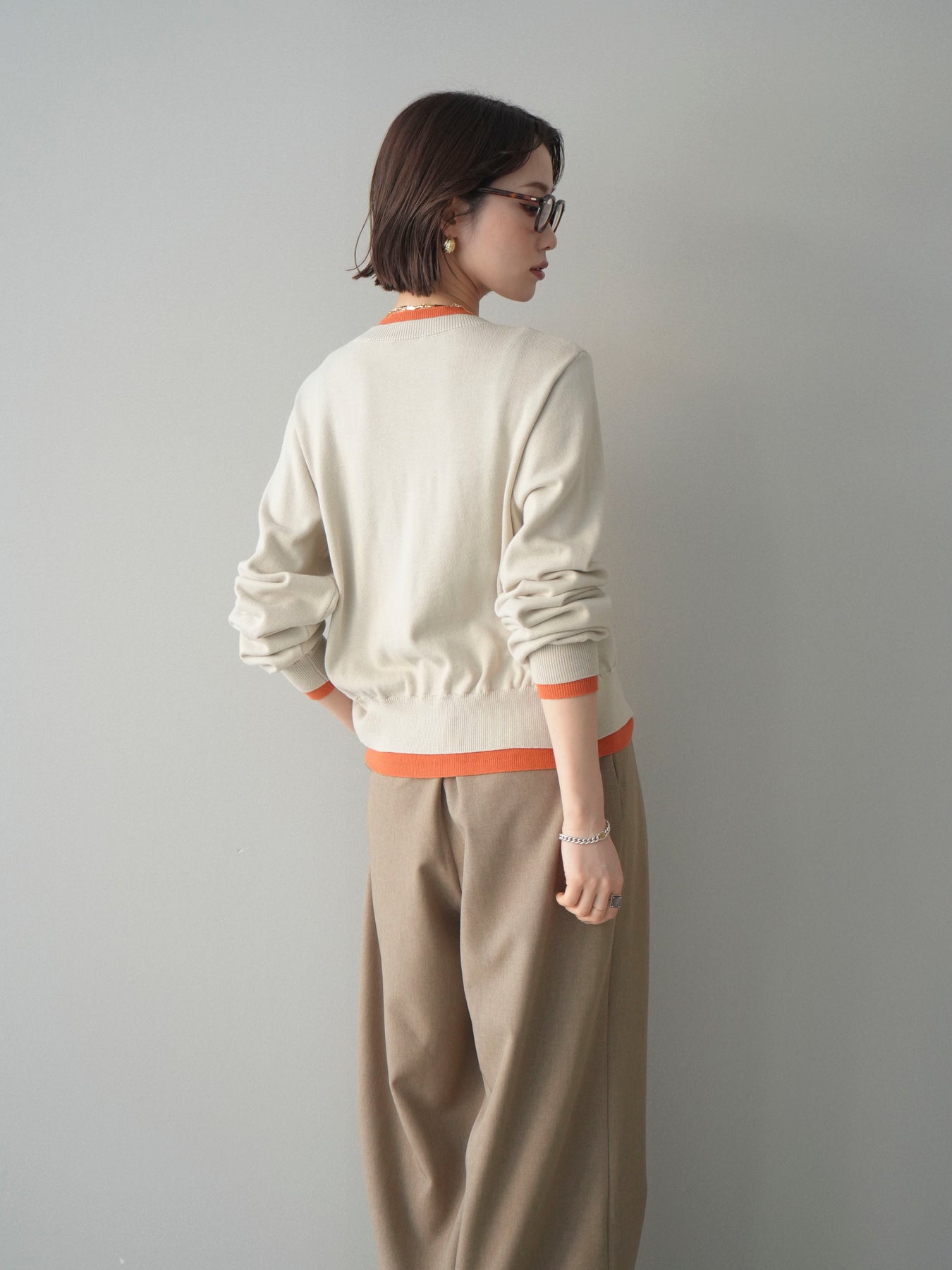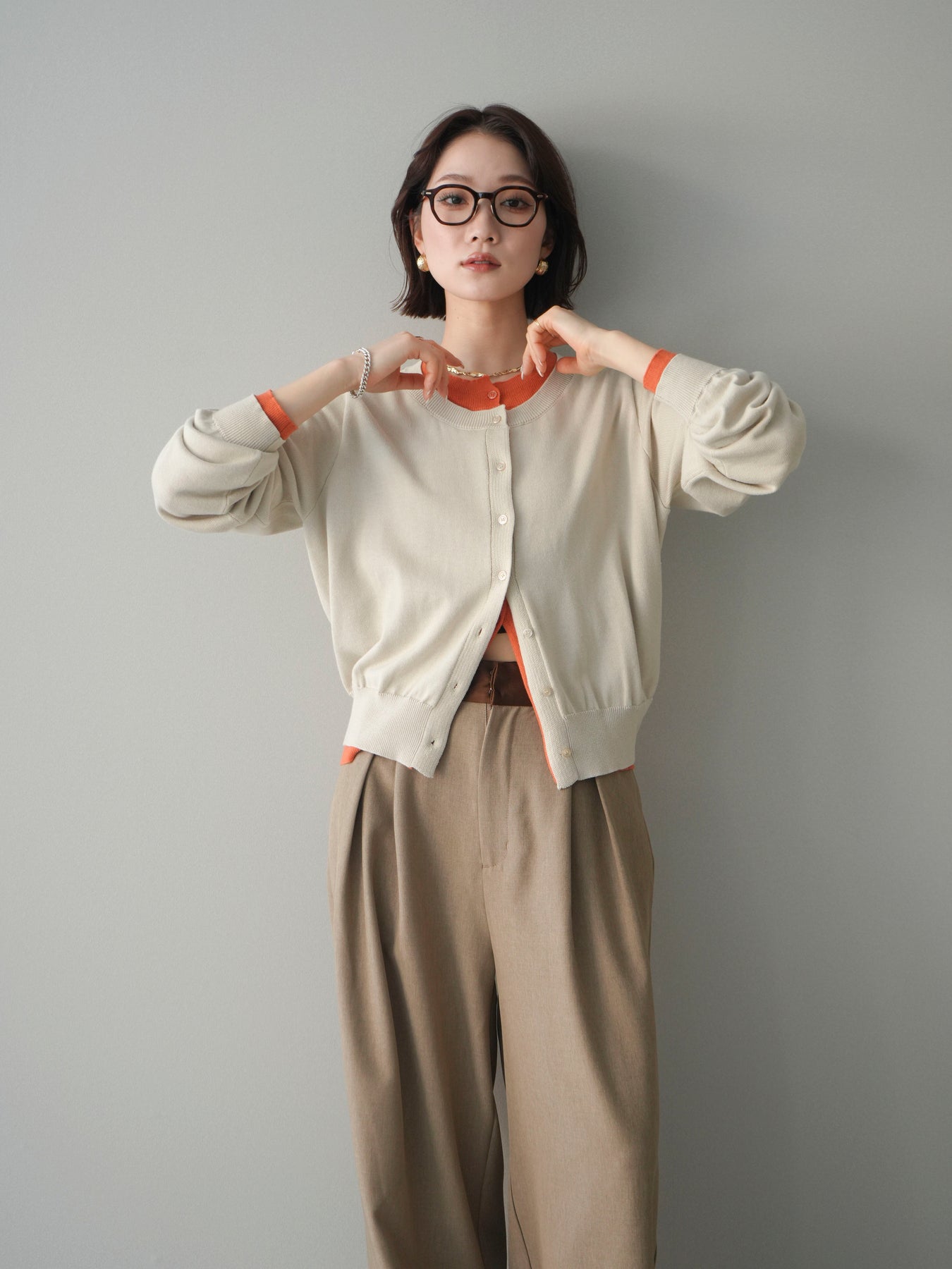 [予約]配色レイヤードコットンアクリルニットカーディガン/ivory