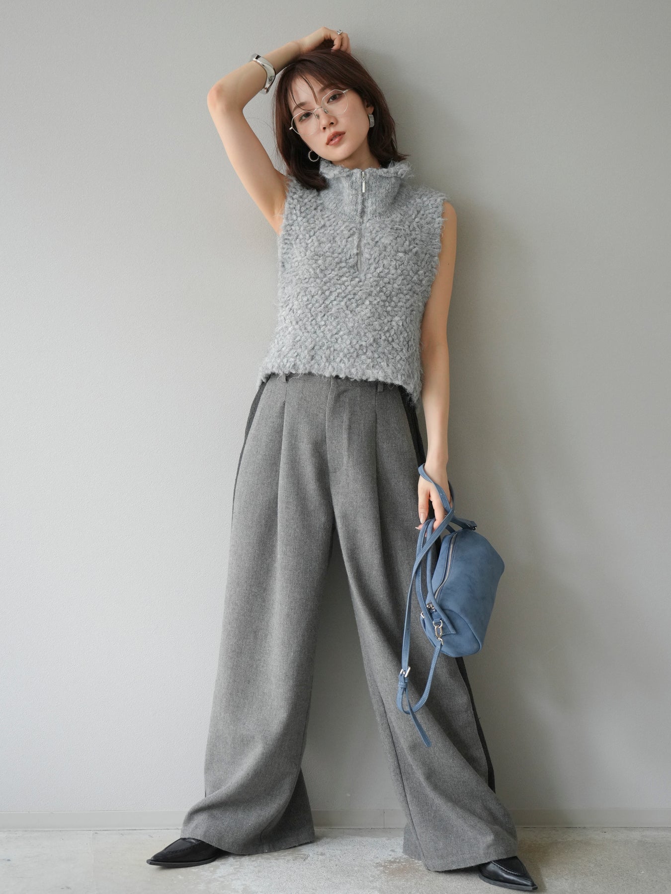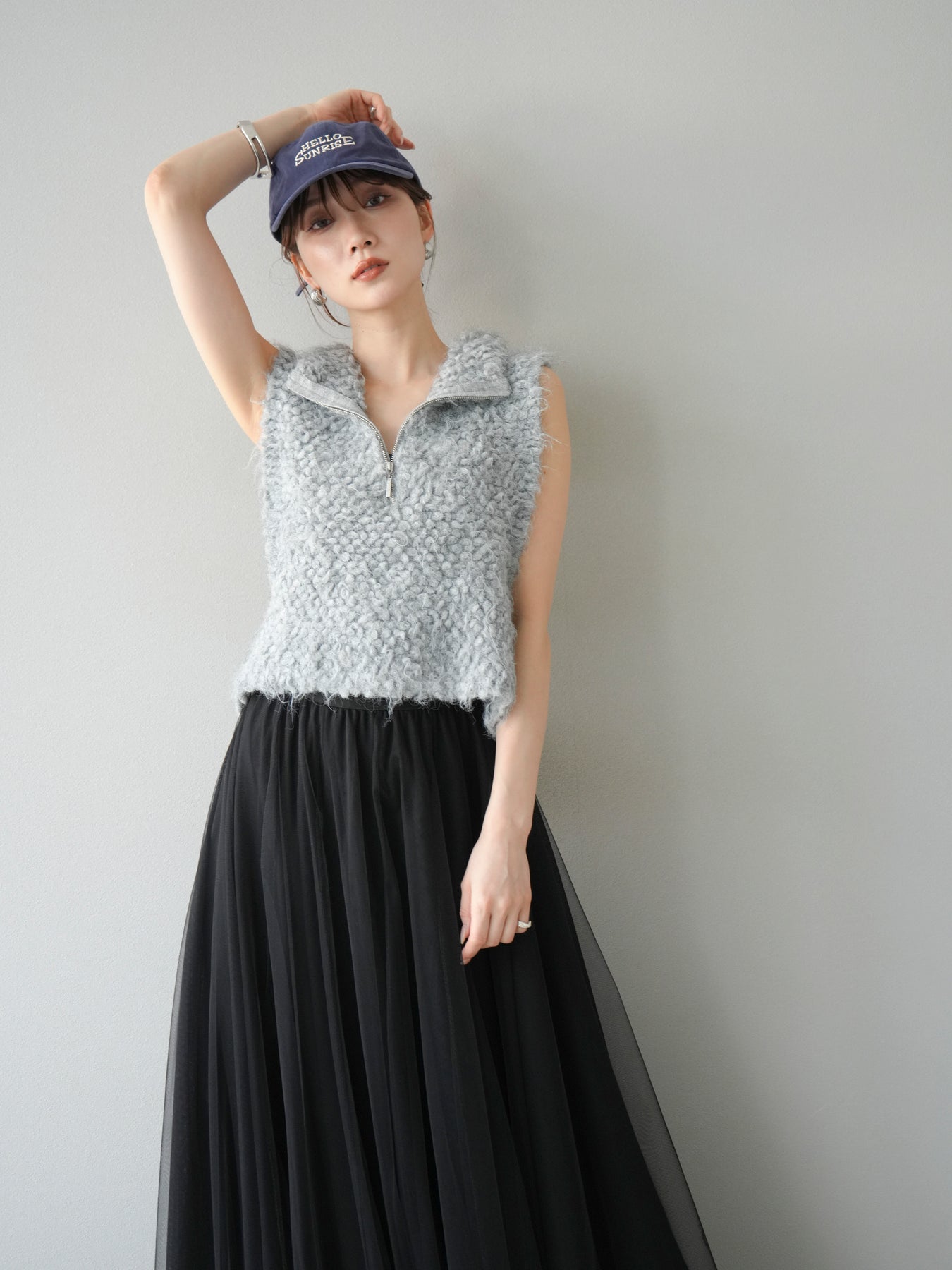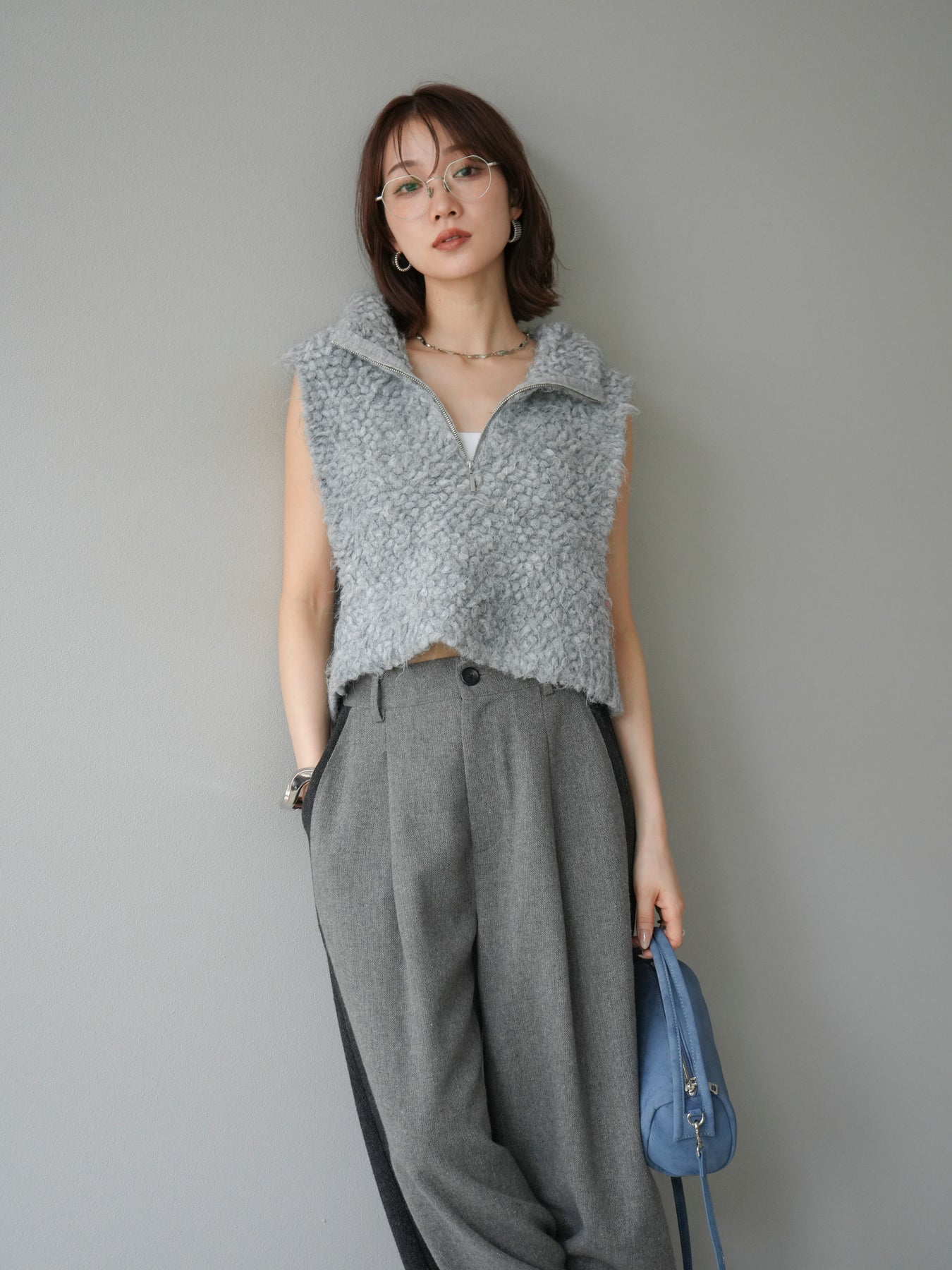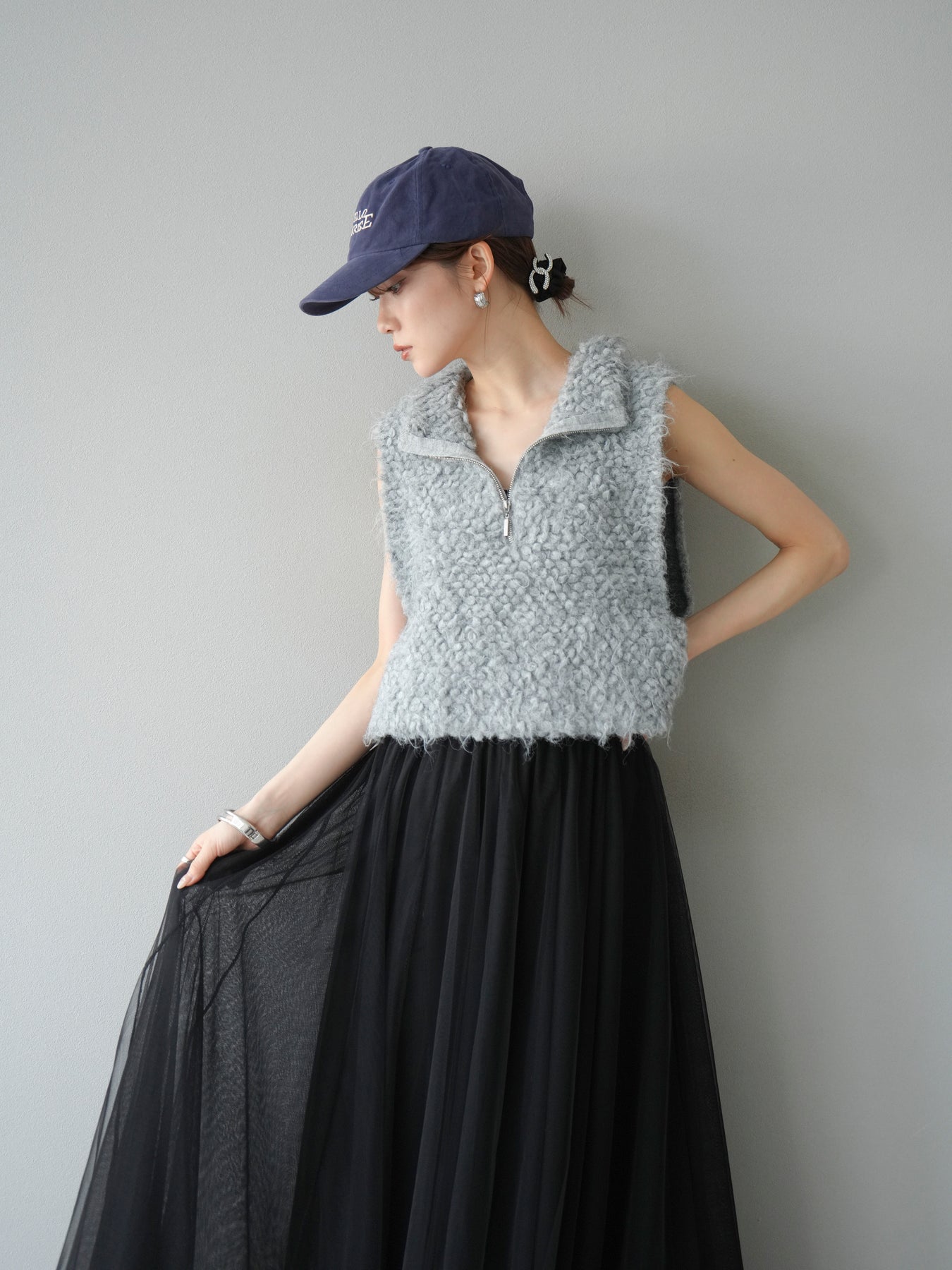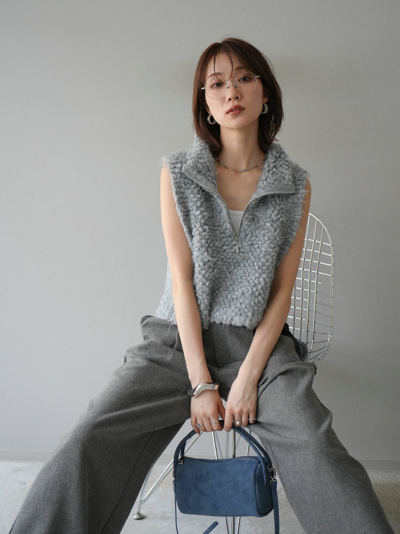 [予約]メランジブークレハーフジップニットベスト/モクグレー