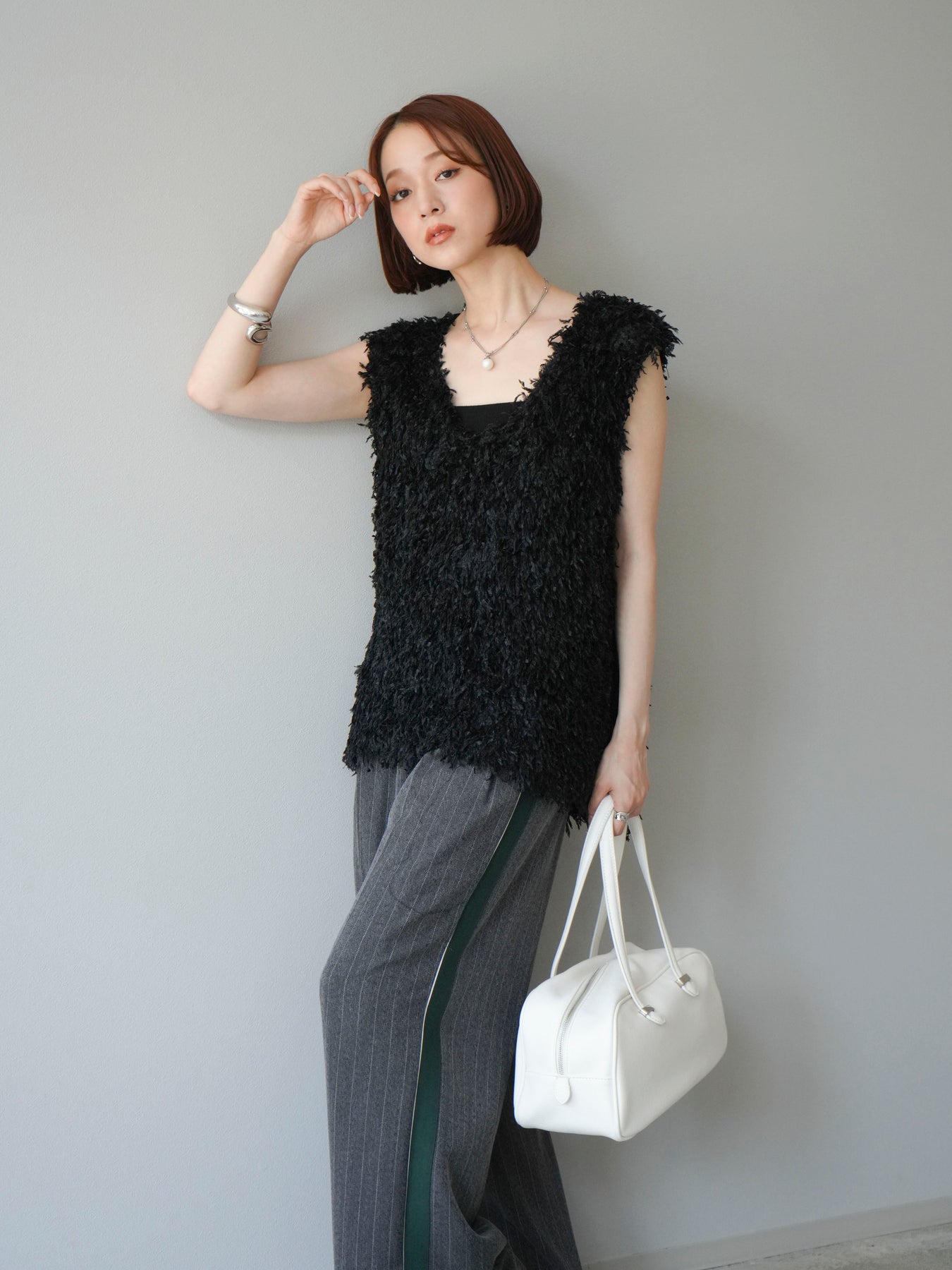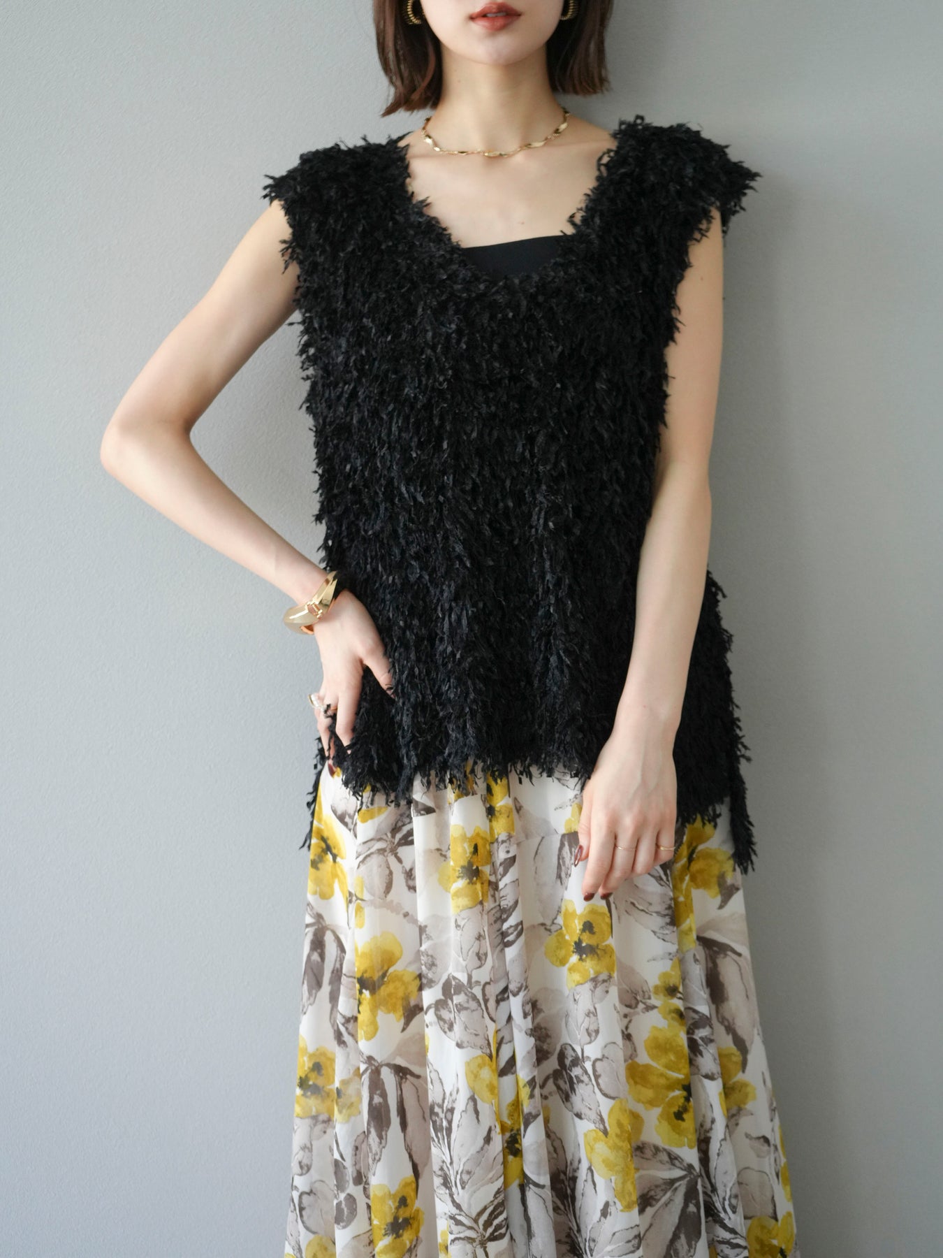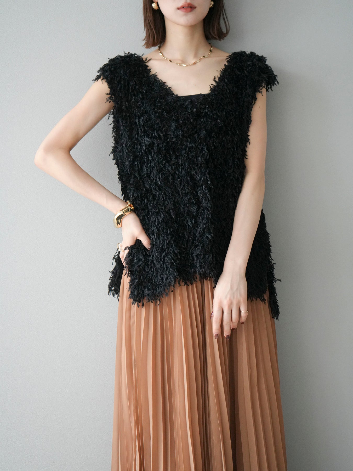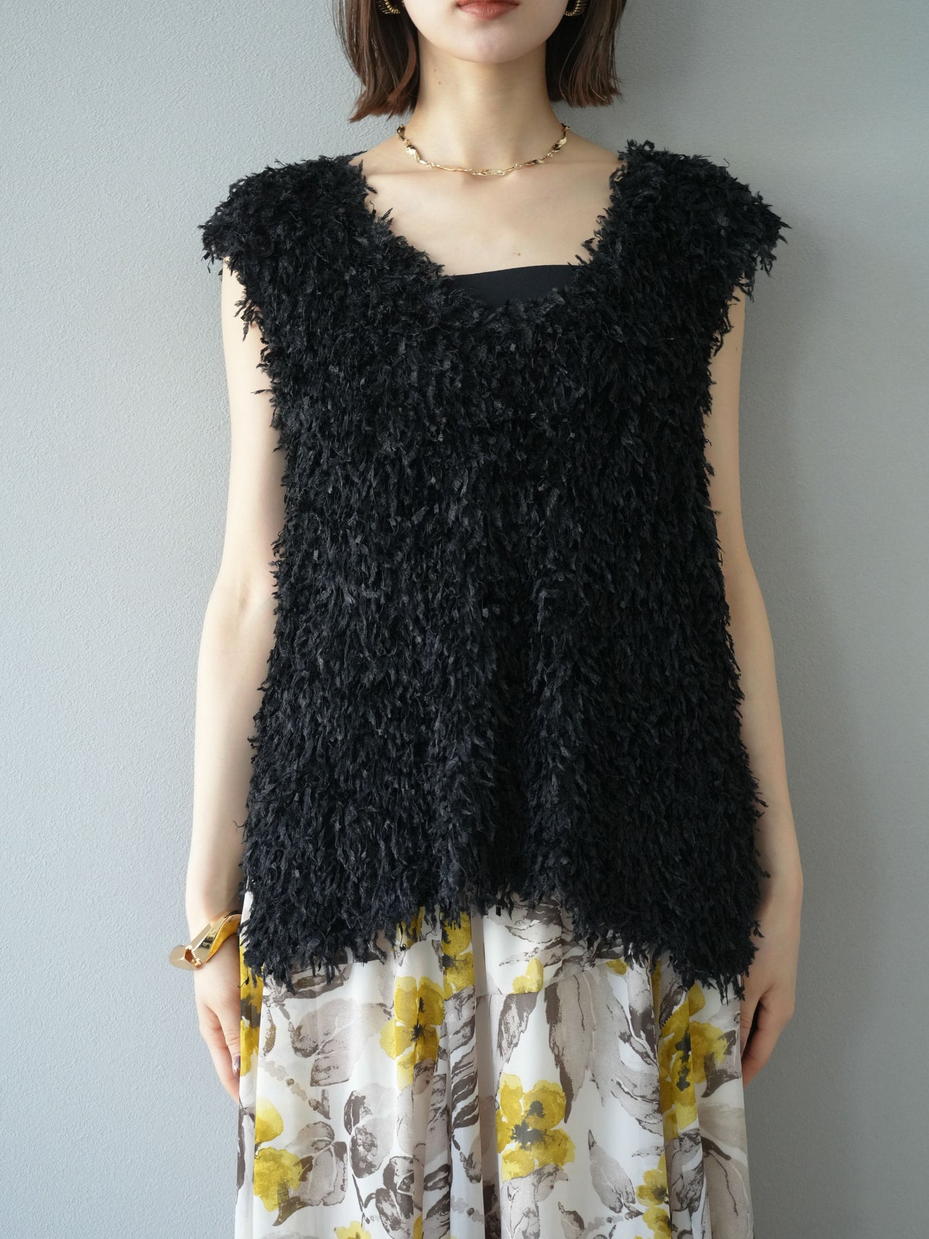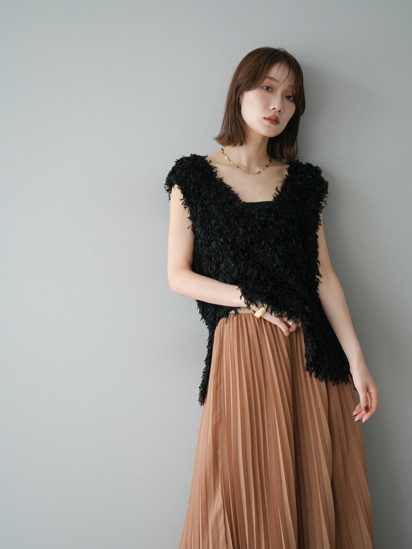 繊細なフェザーヤーンを贅沢に使用した、華やかな印象のVネックベスト。