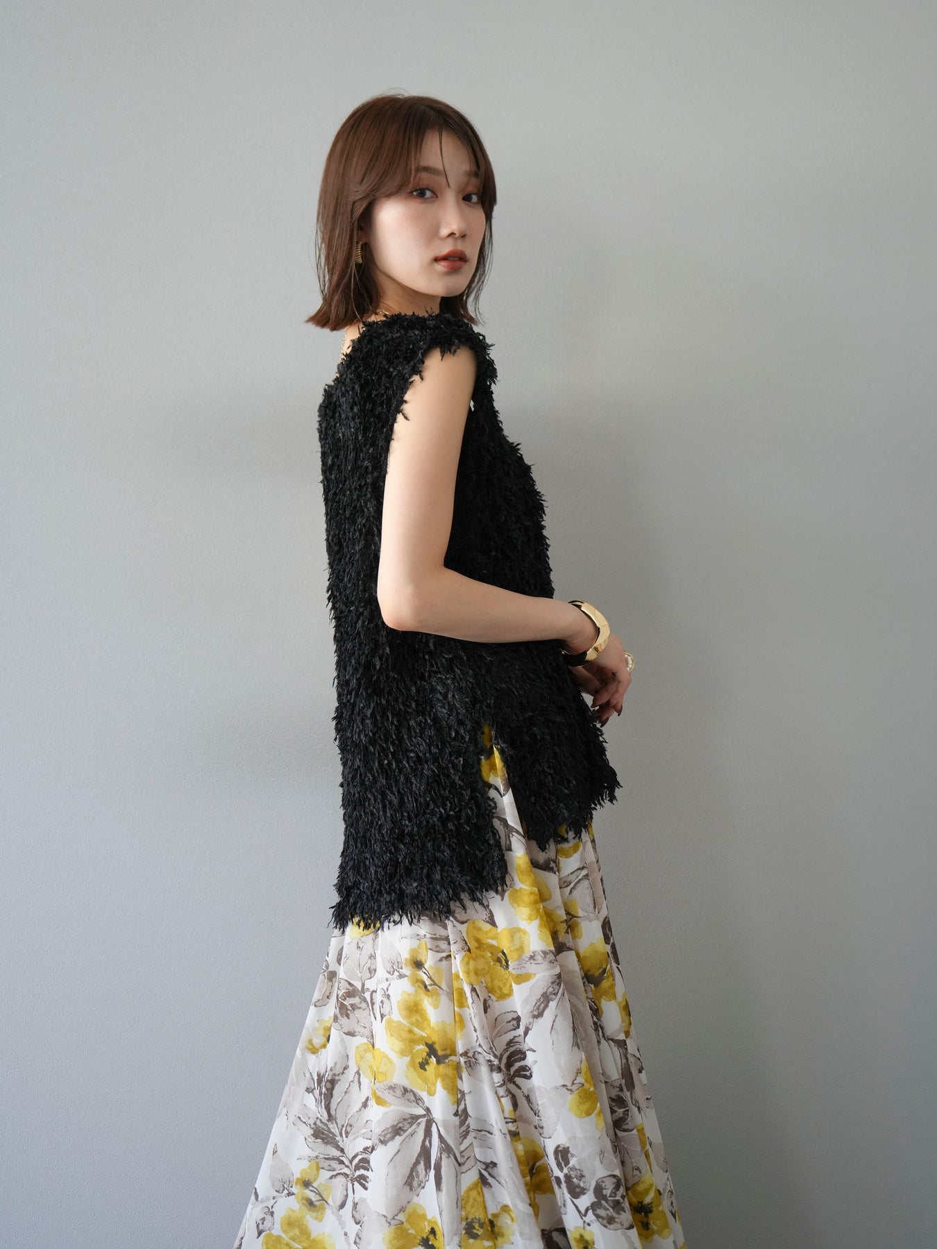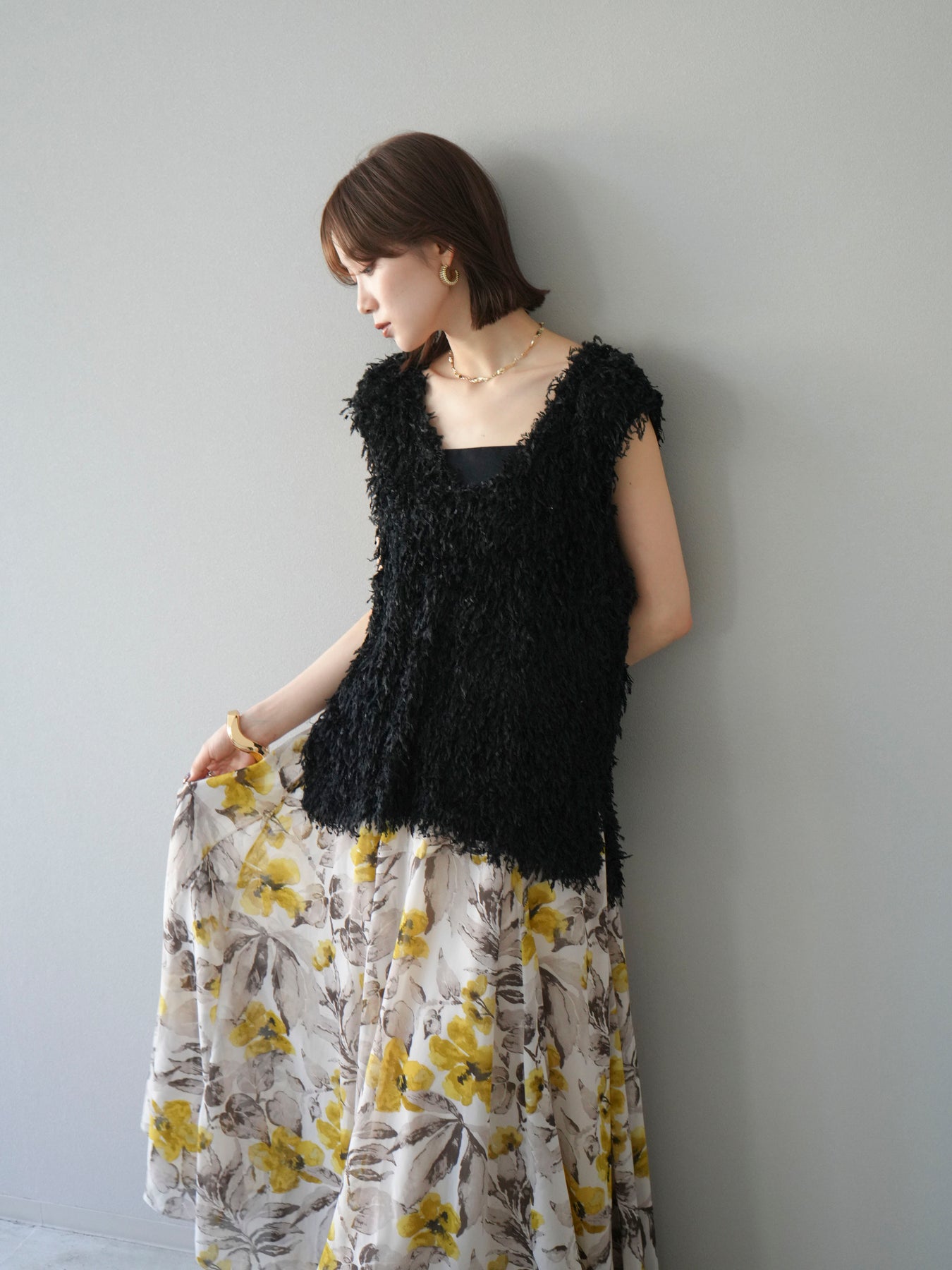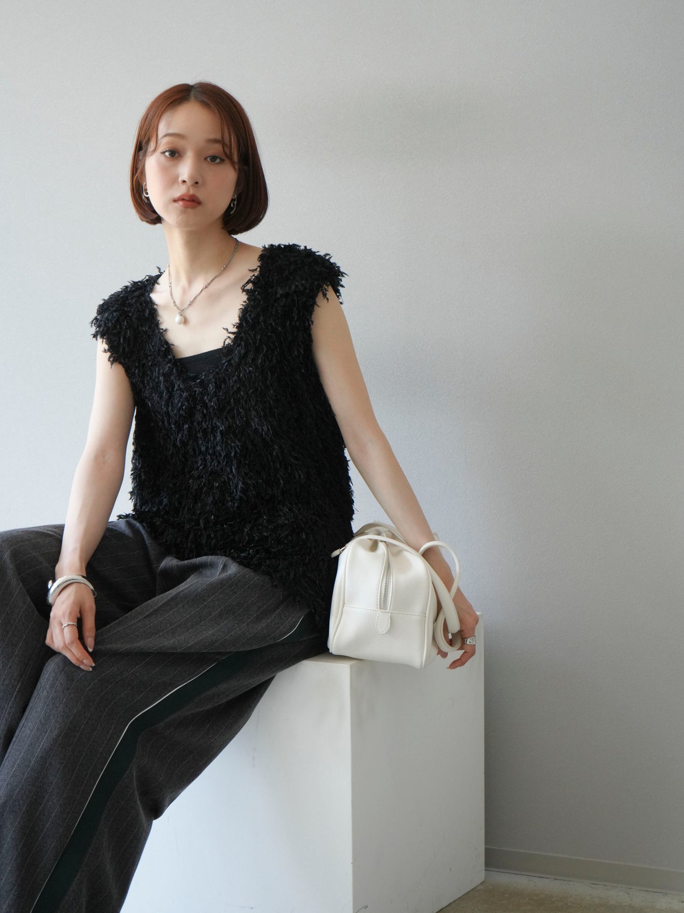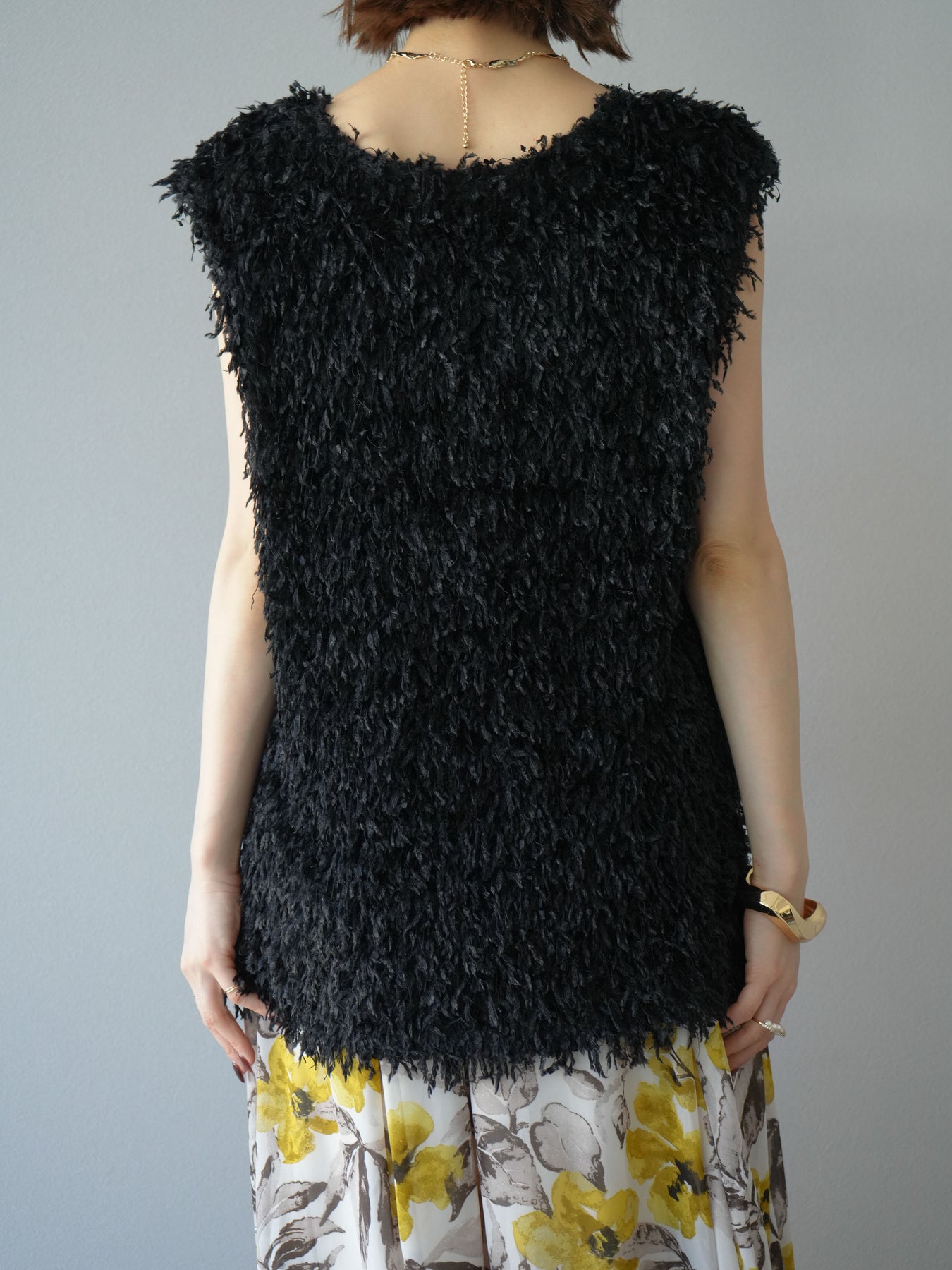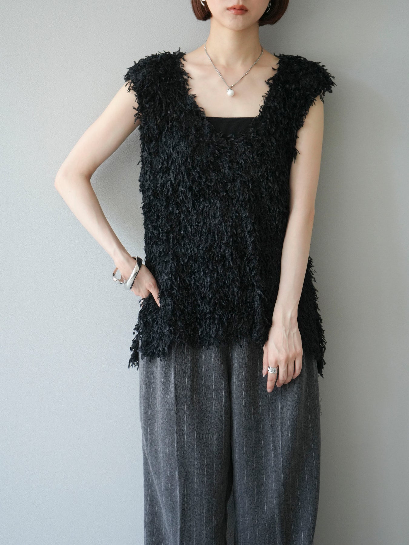 繊細なフェザーヤーンを贅沢に使用した、華やかな印象のVネックベスト。