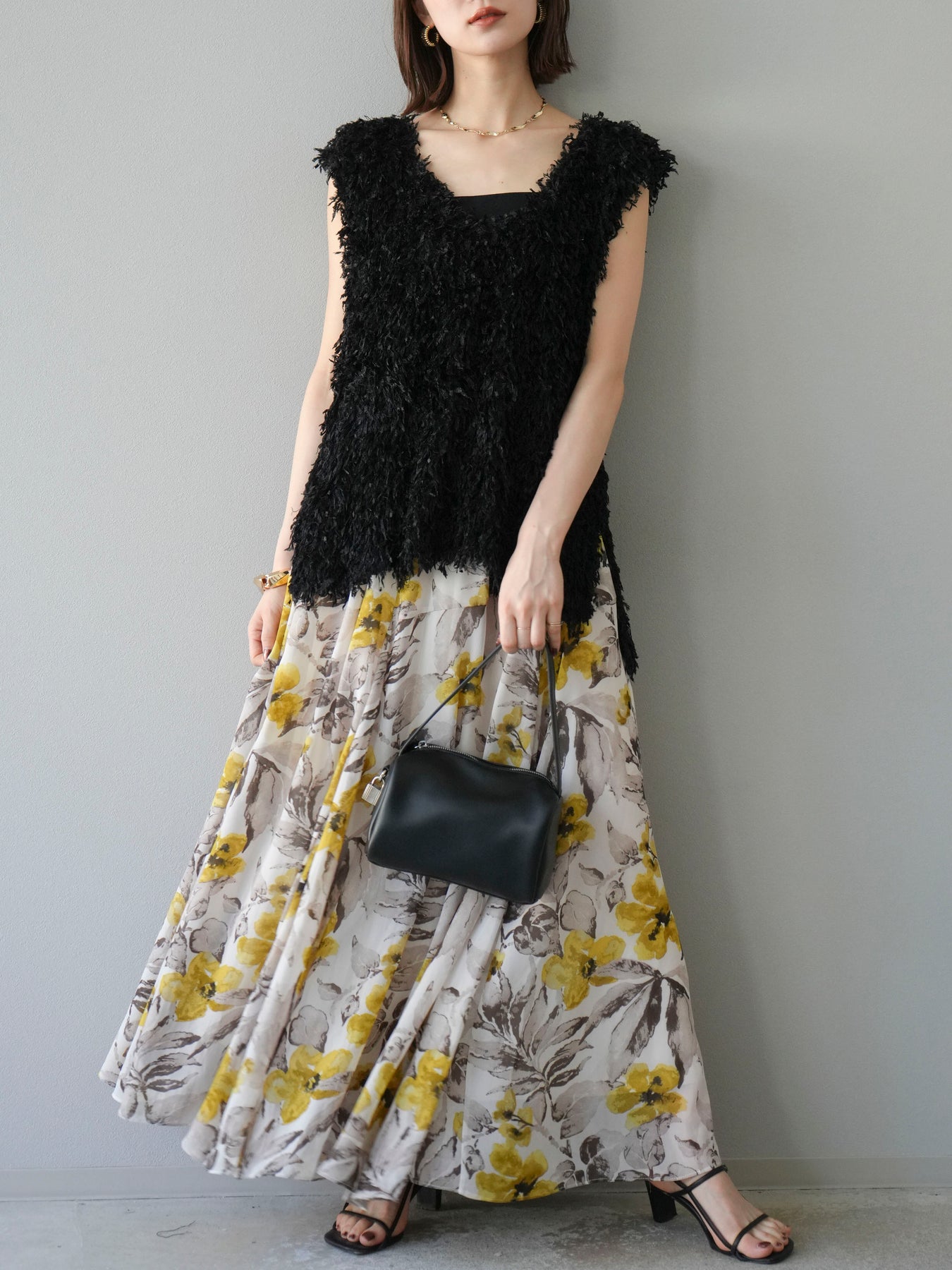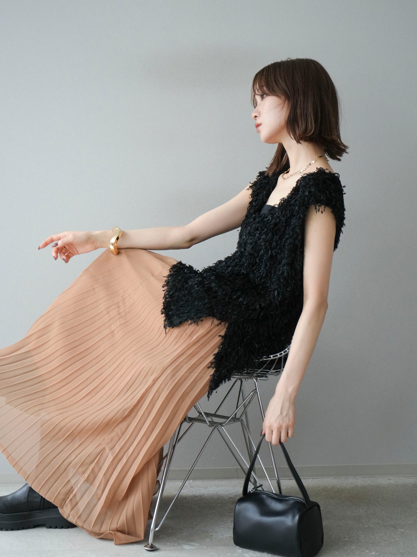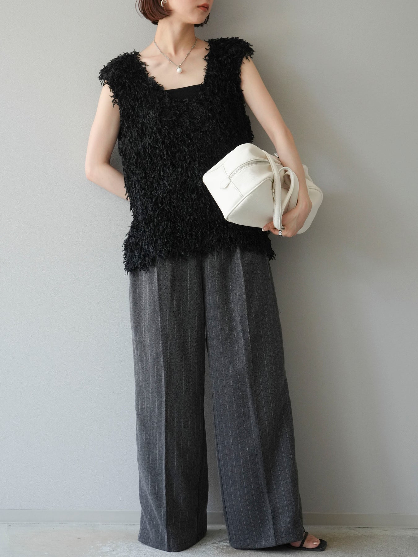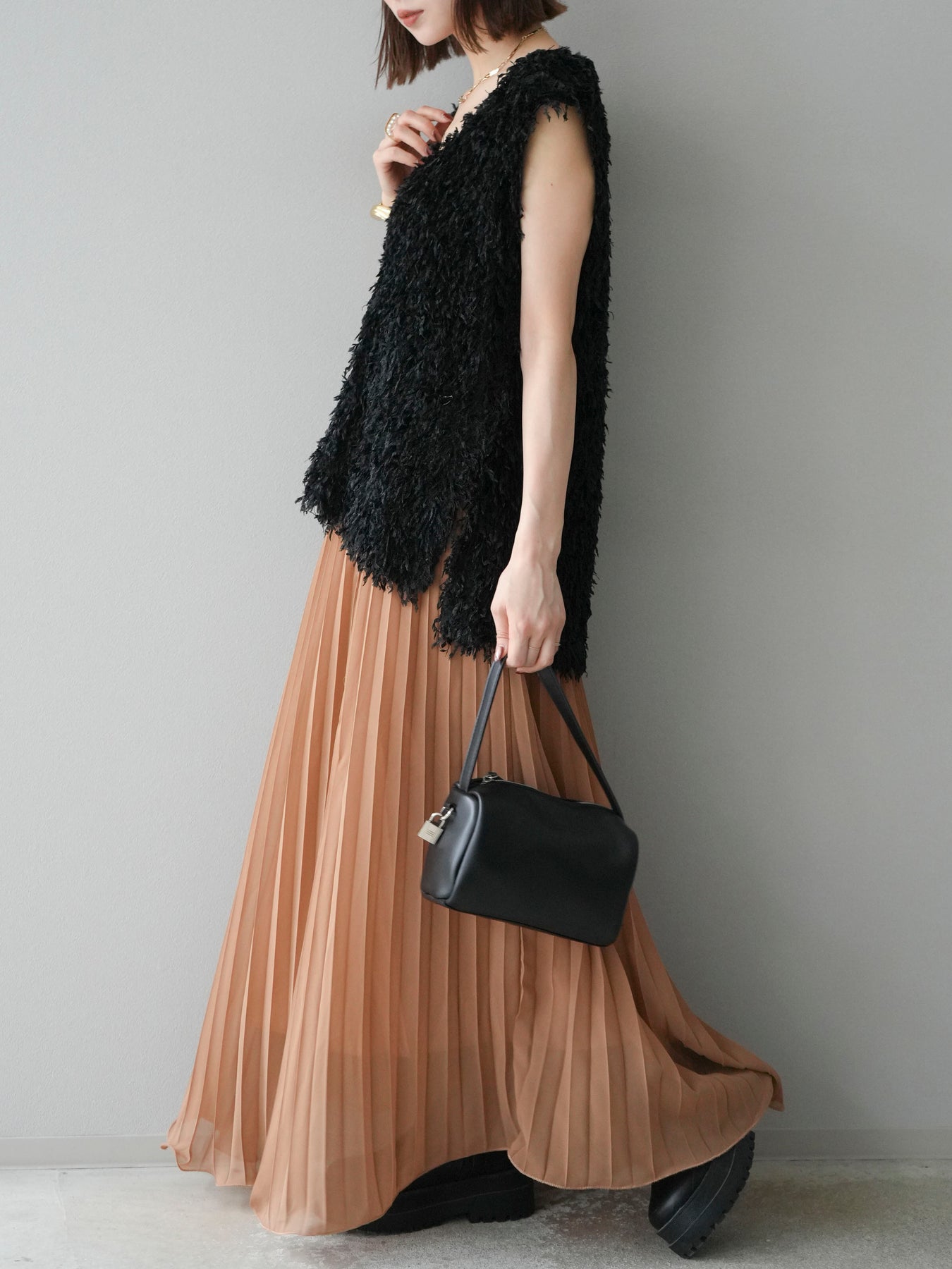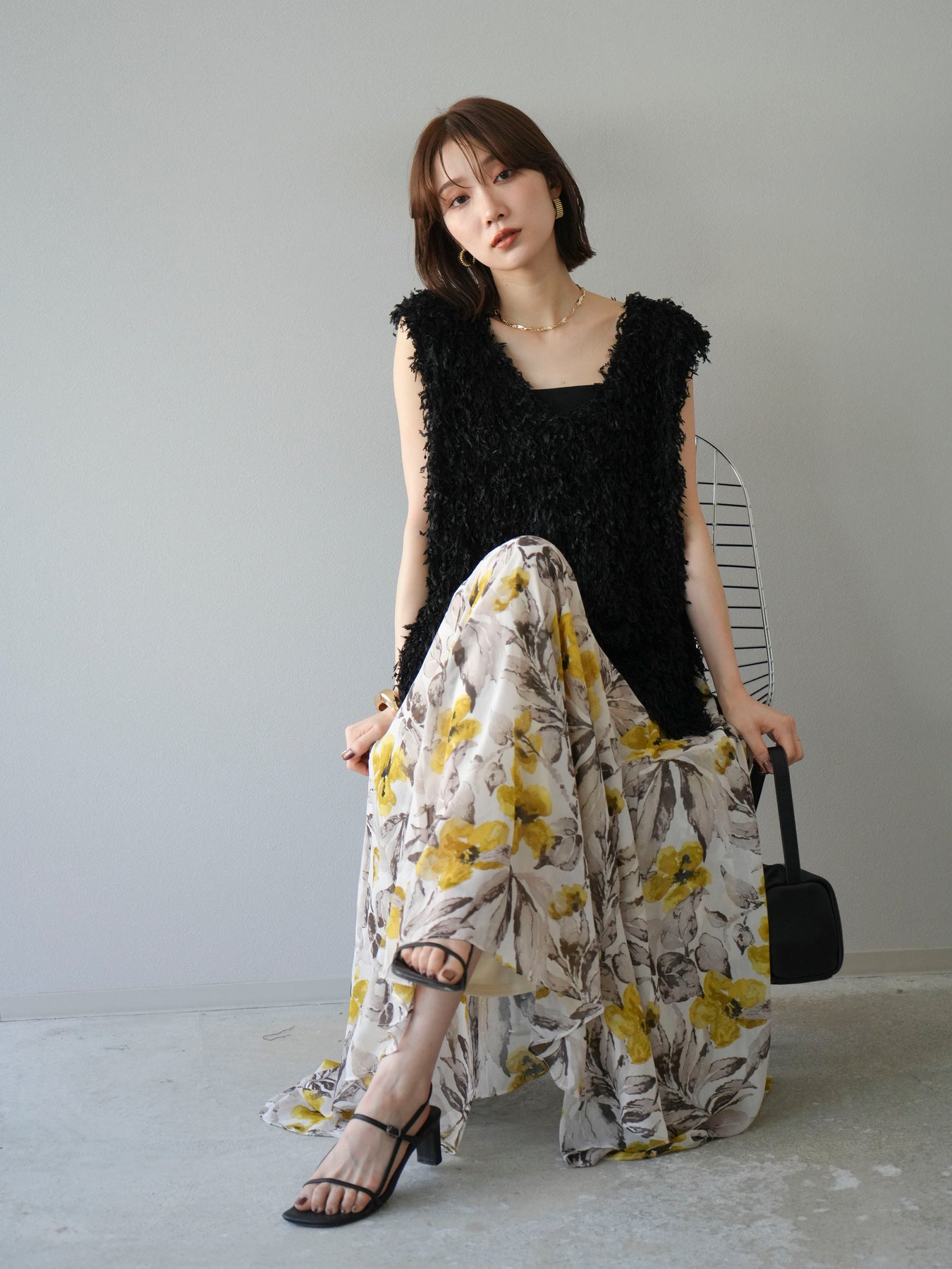 繊細なフェザーヤーンを贅沢に使用した、華やかな印象のVネックベスト。