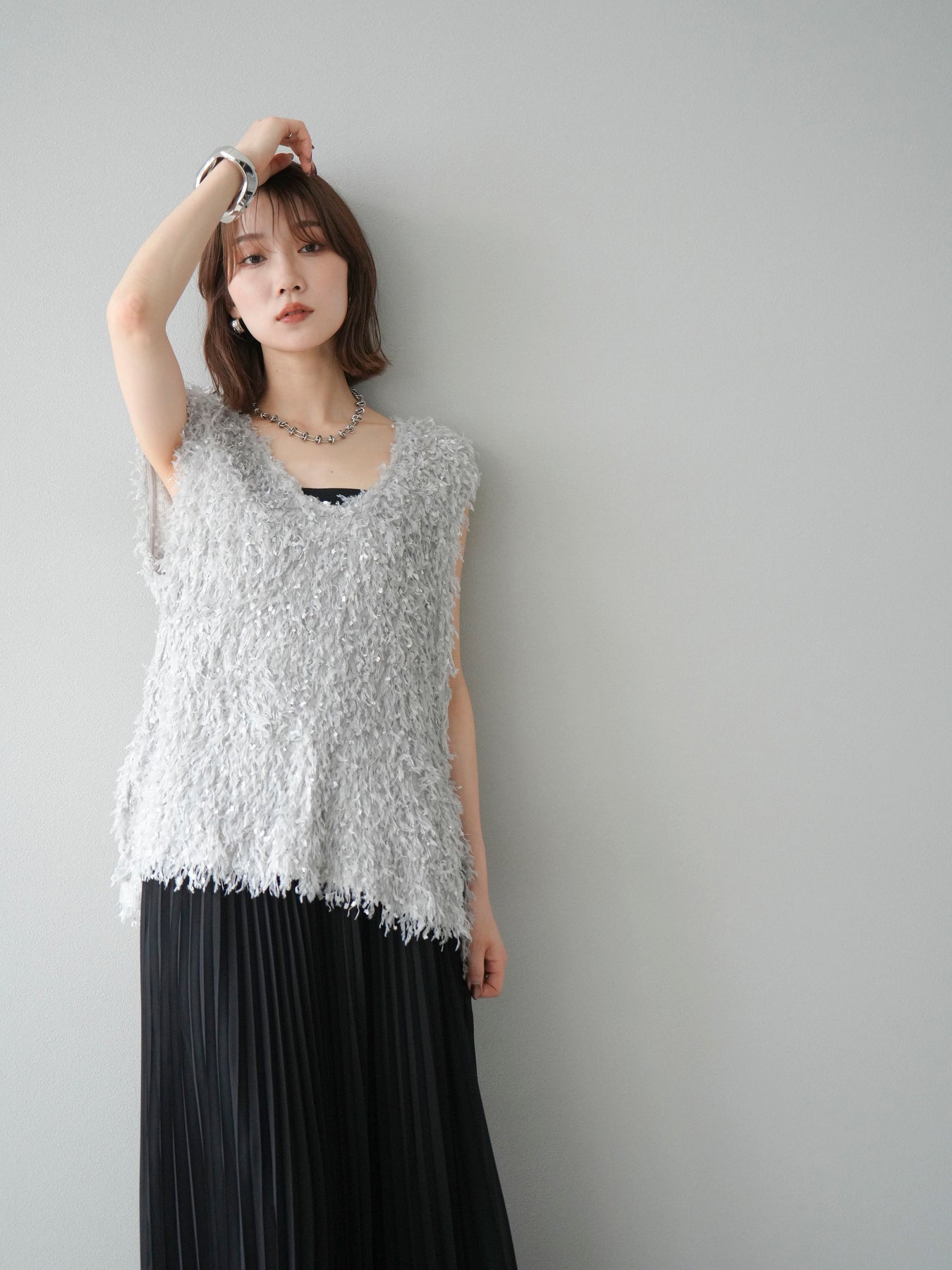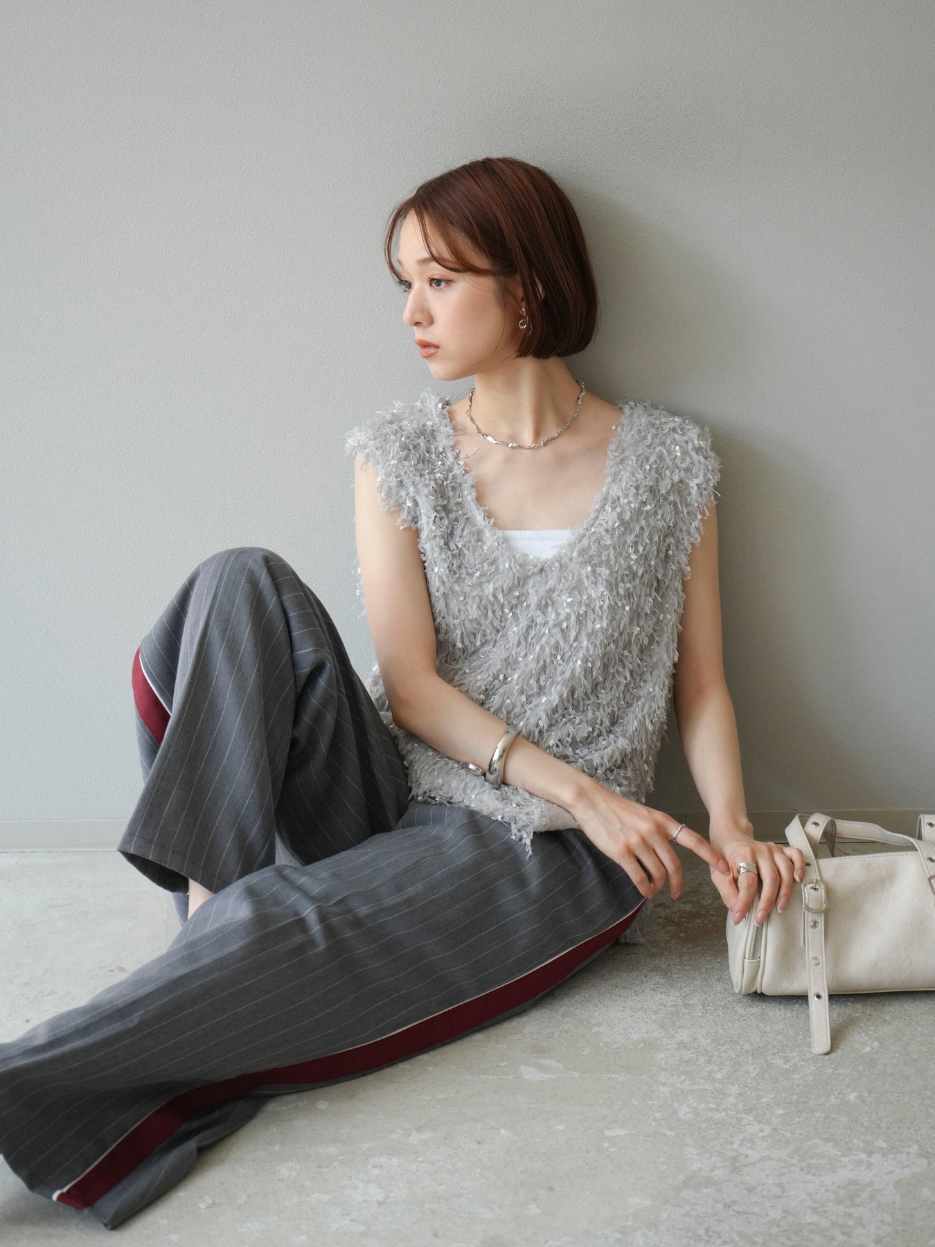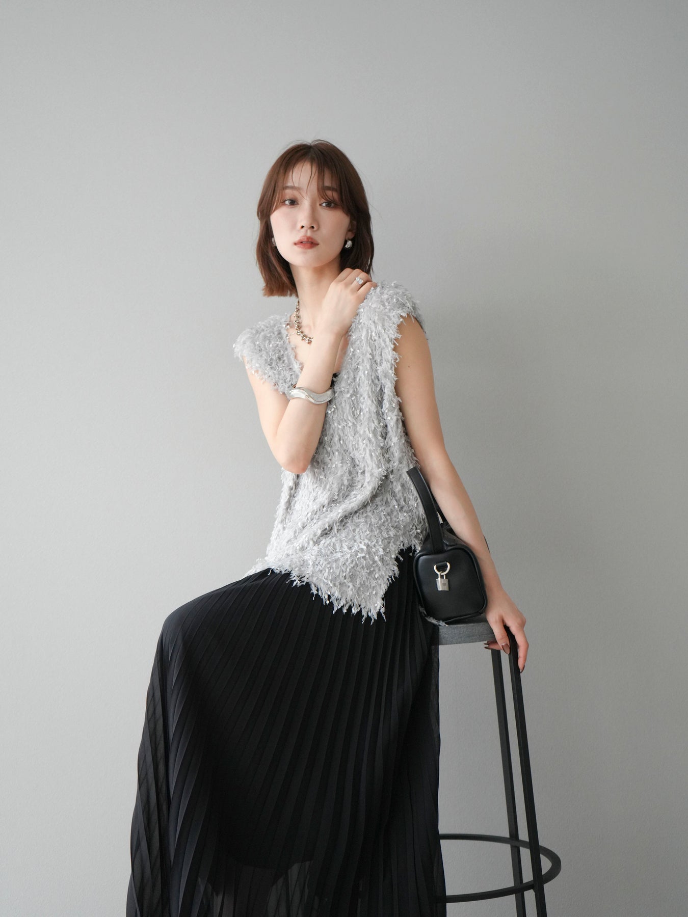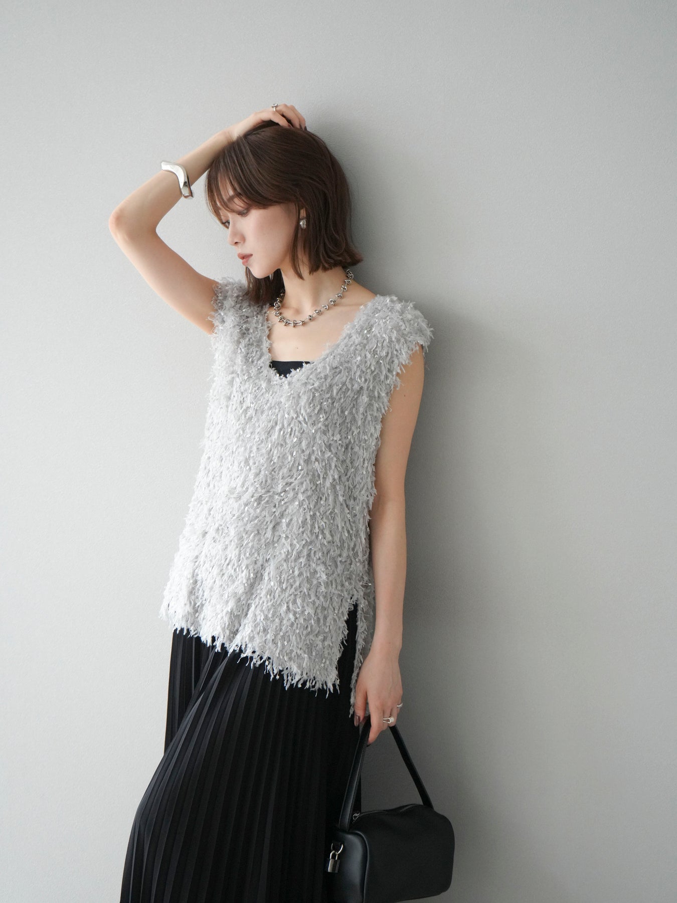 繊細なフェザーヤーンを贅沢に使用した、華やかな印象のVネックベスト。