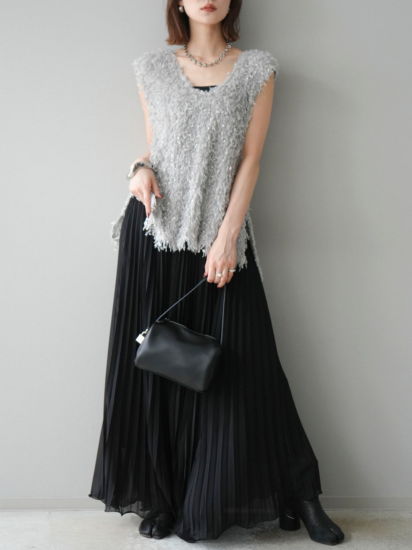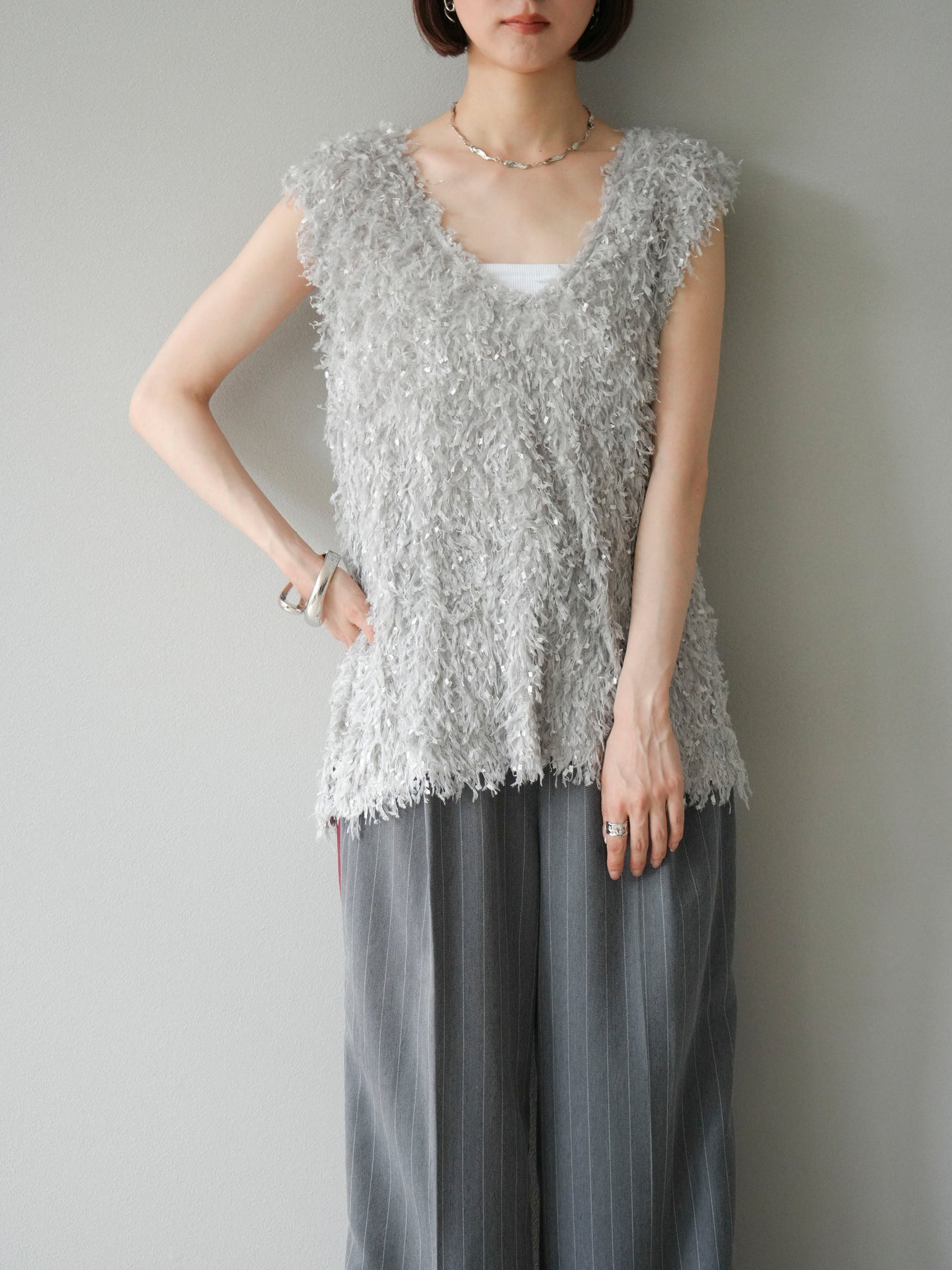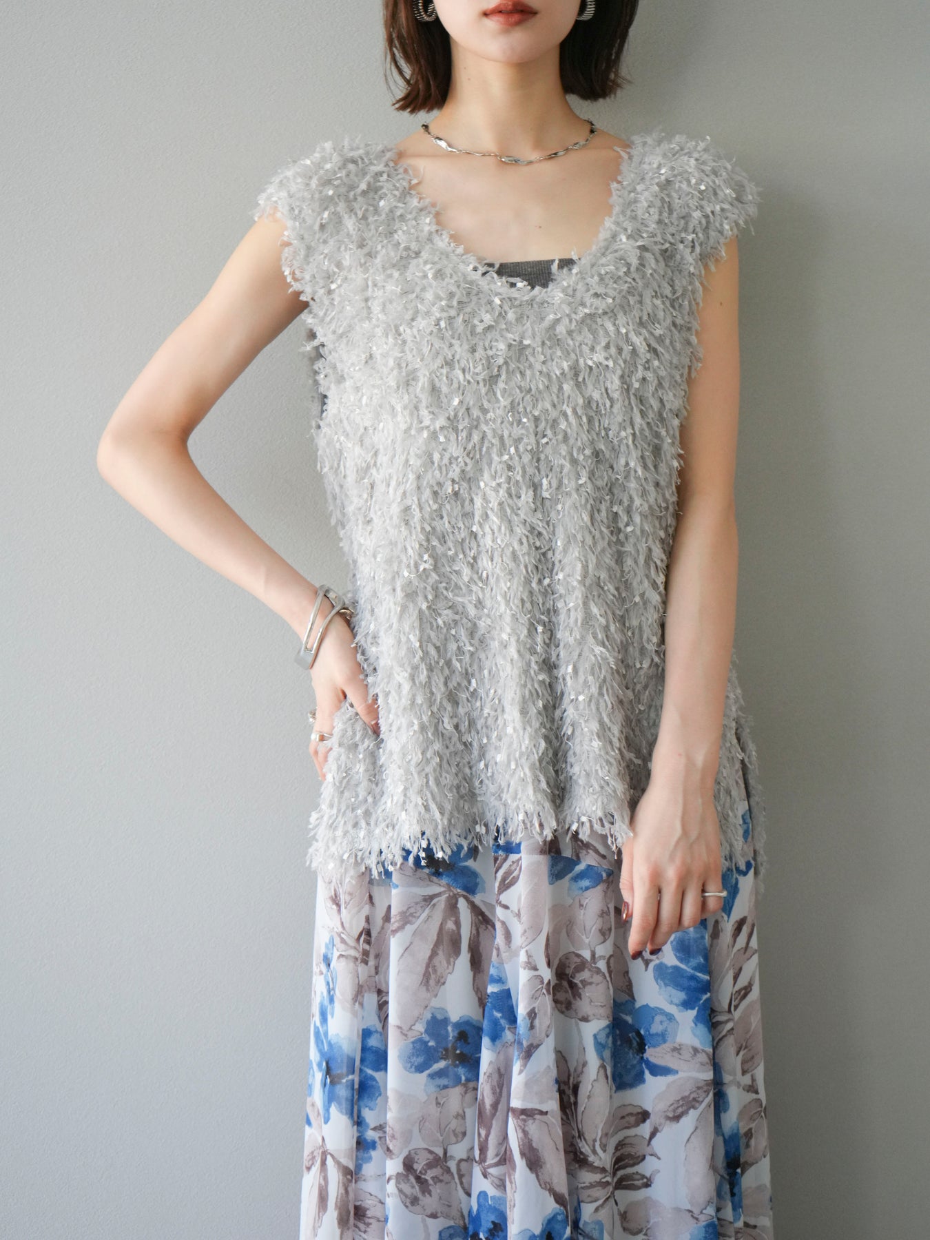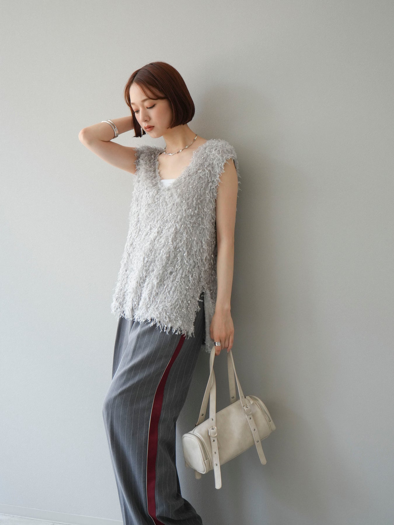 繊細なフェザーヤーンを贅沢に使用した、華やかな印象のVネックベスト。