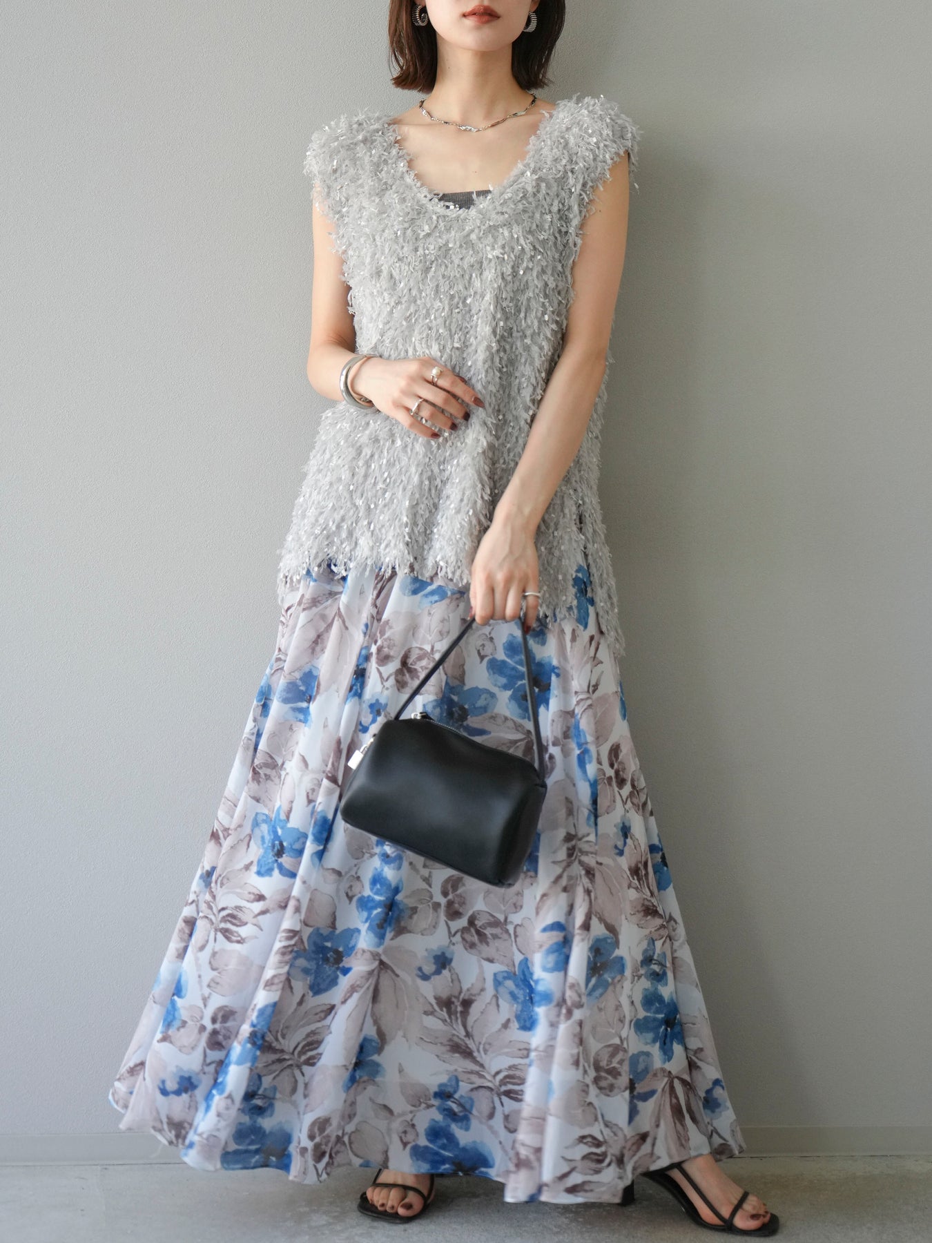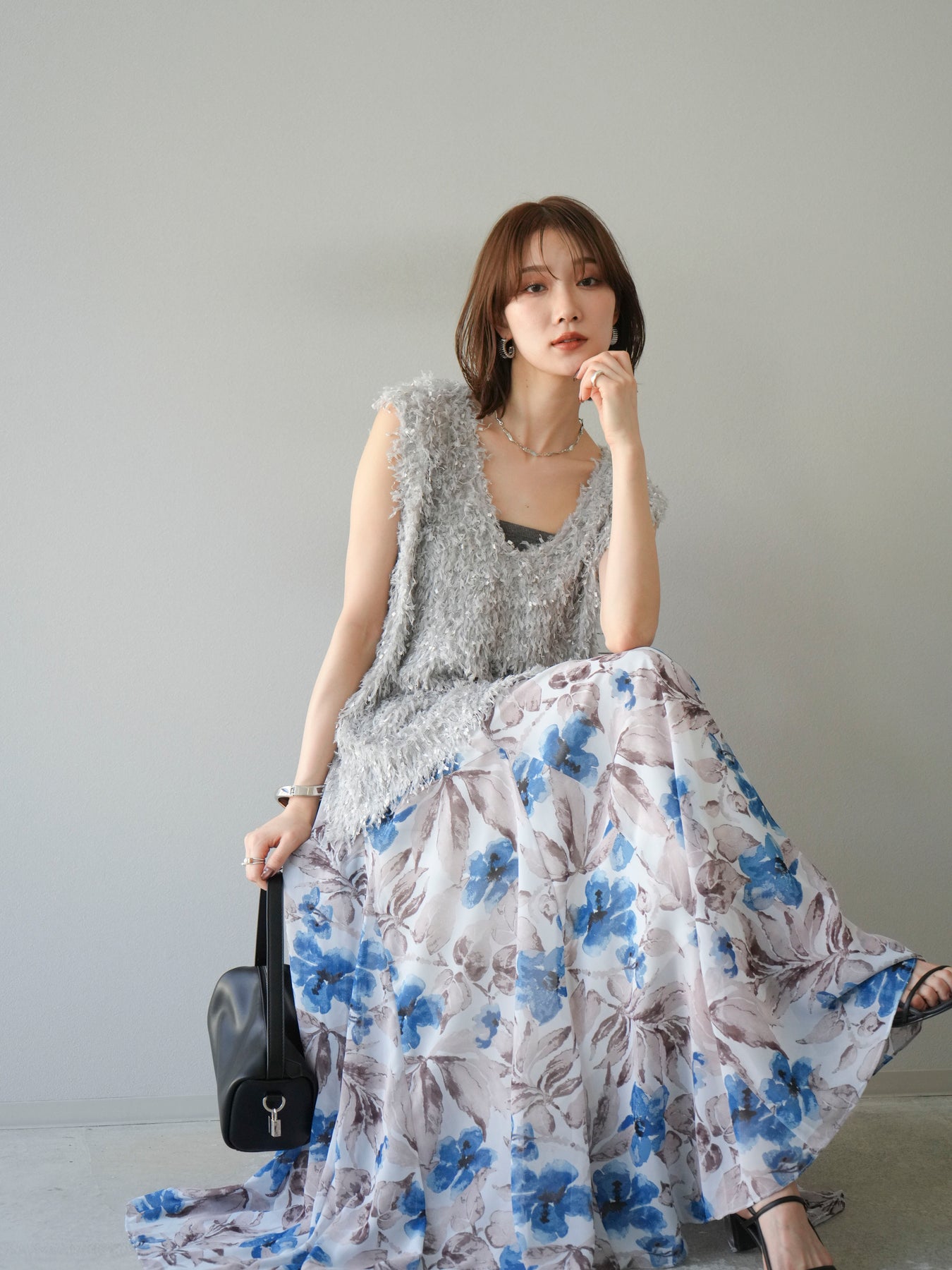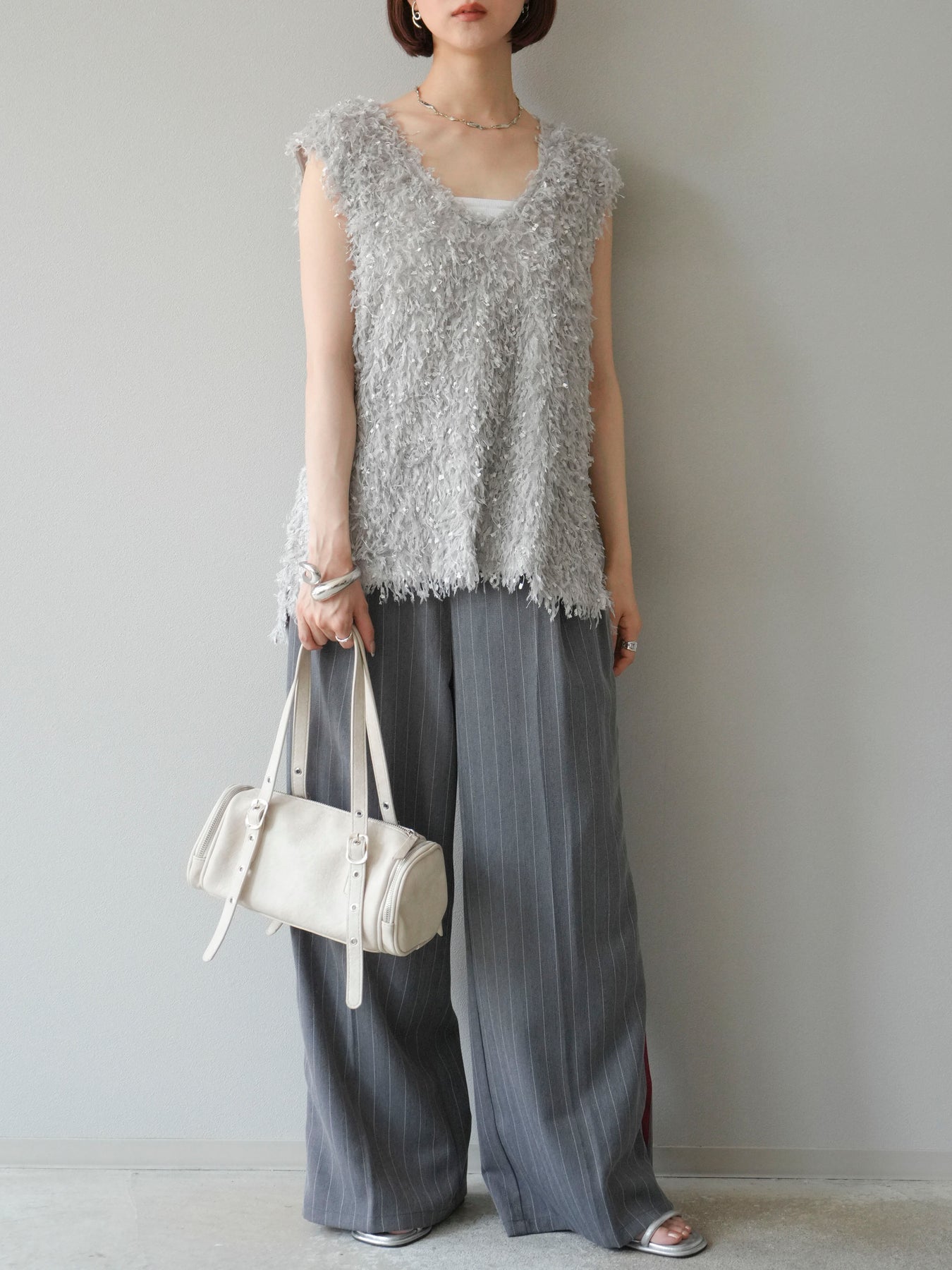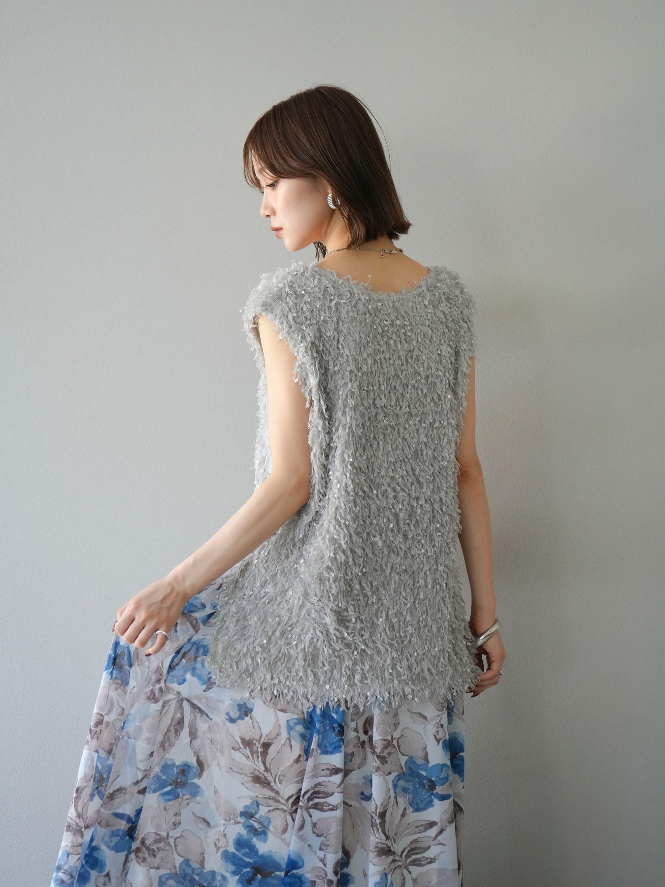 繊細なフェザーヤーンを贅沢に使用した、華やかな印象のVネックベスト。