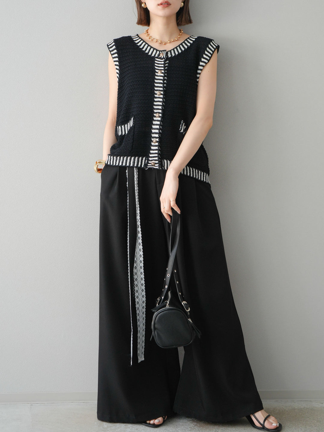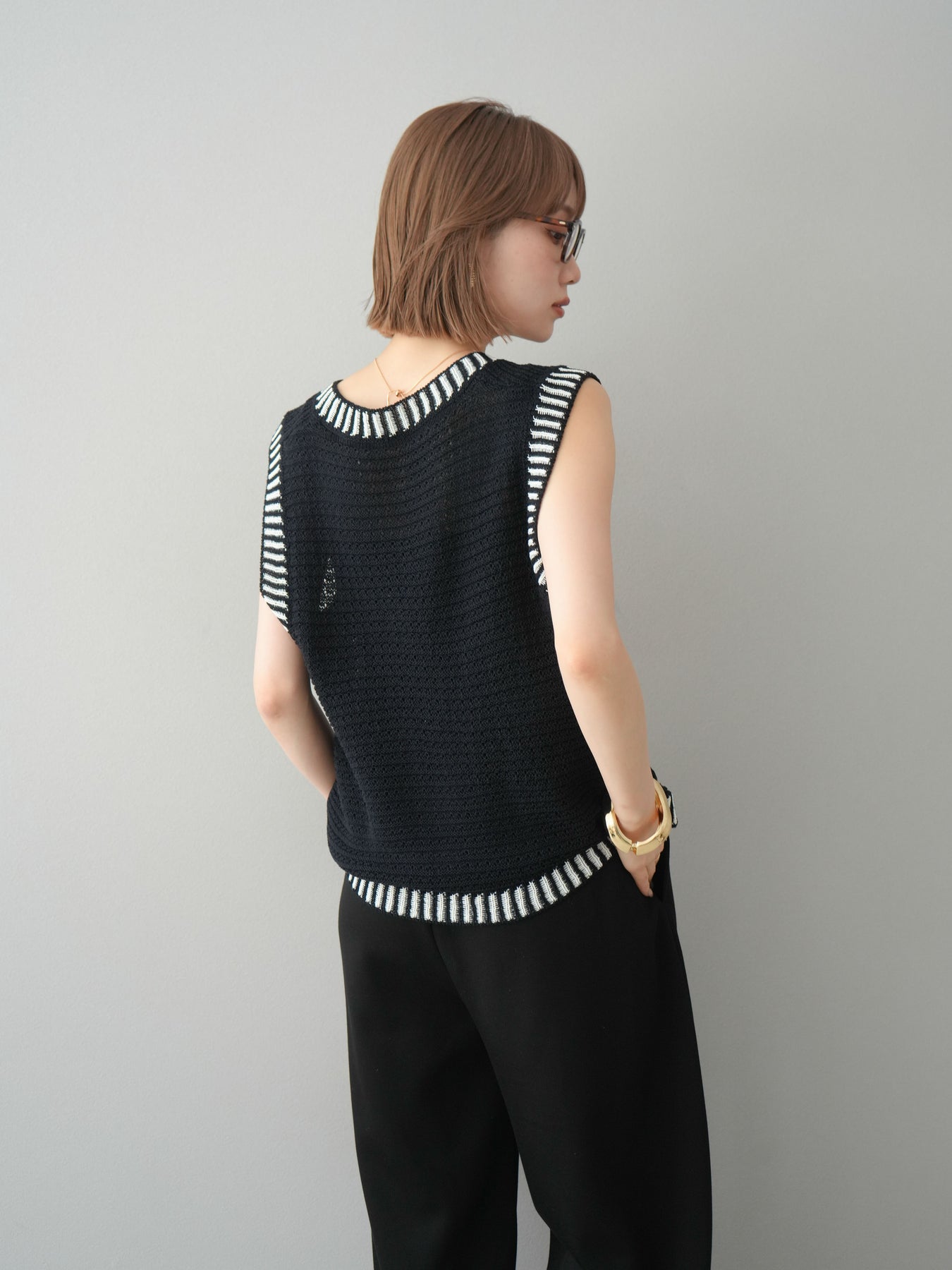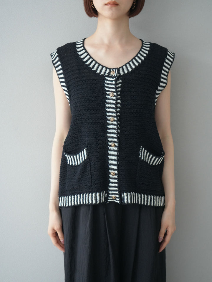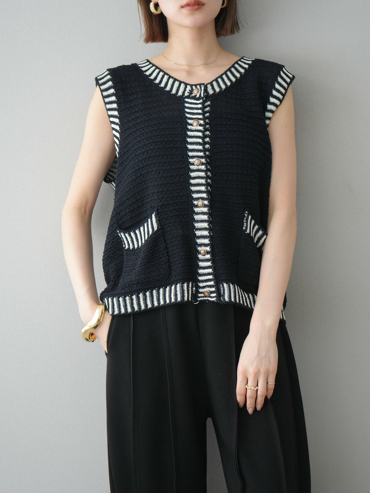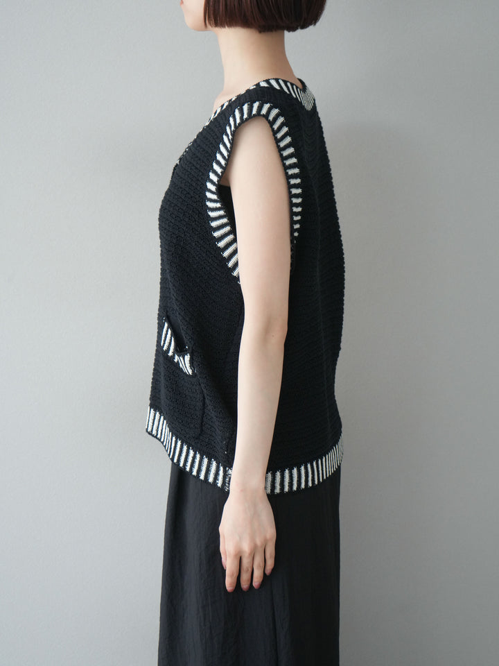 [予約]ポイントラインサマーニットベスト/ブラック
