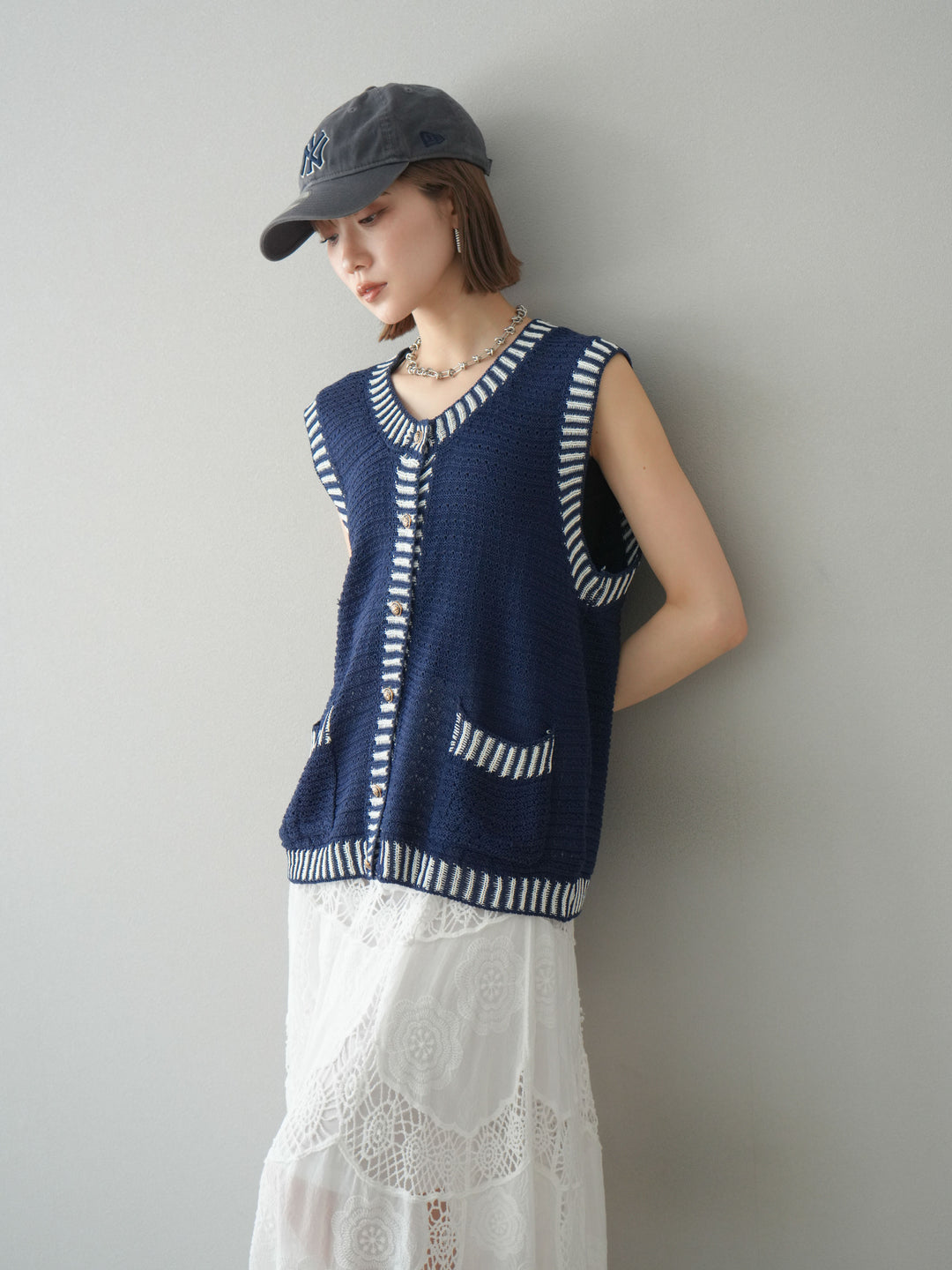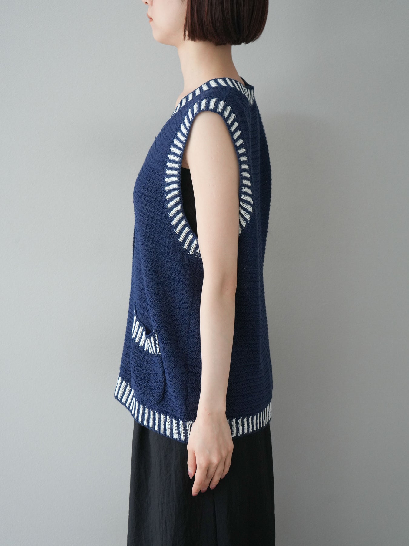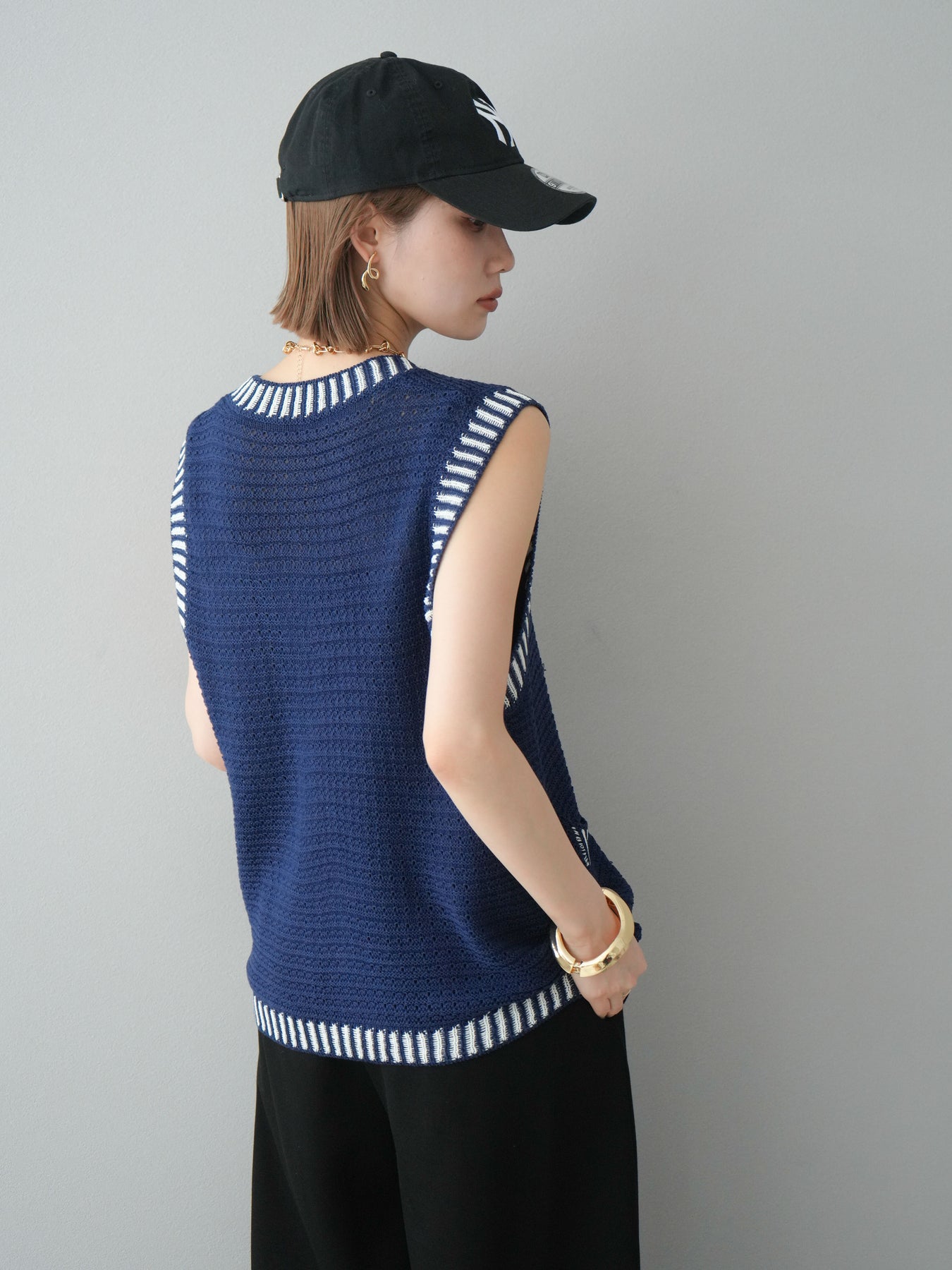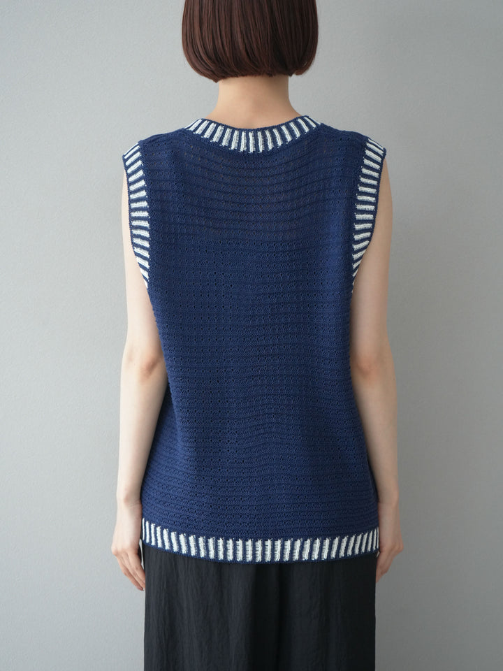 [予約]ポイントラインサマーニットベスト/ネイビー