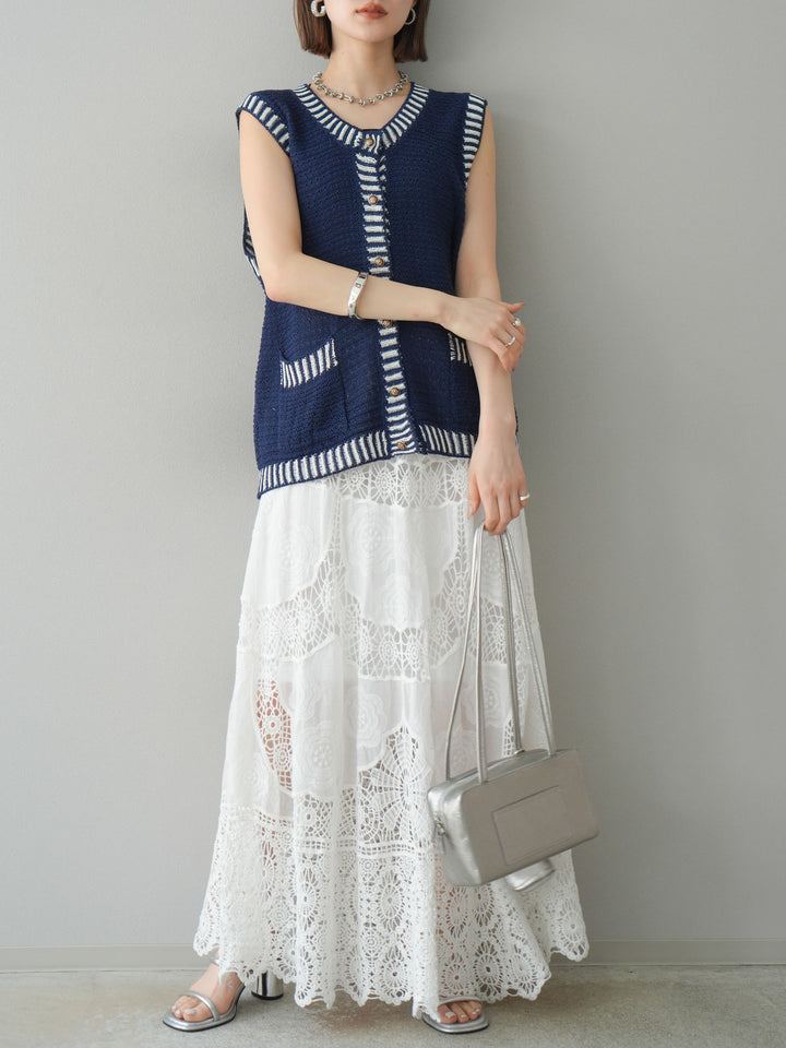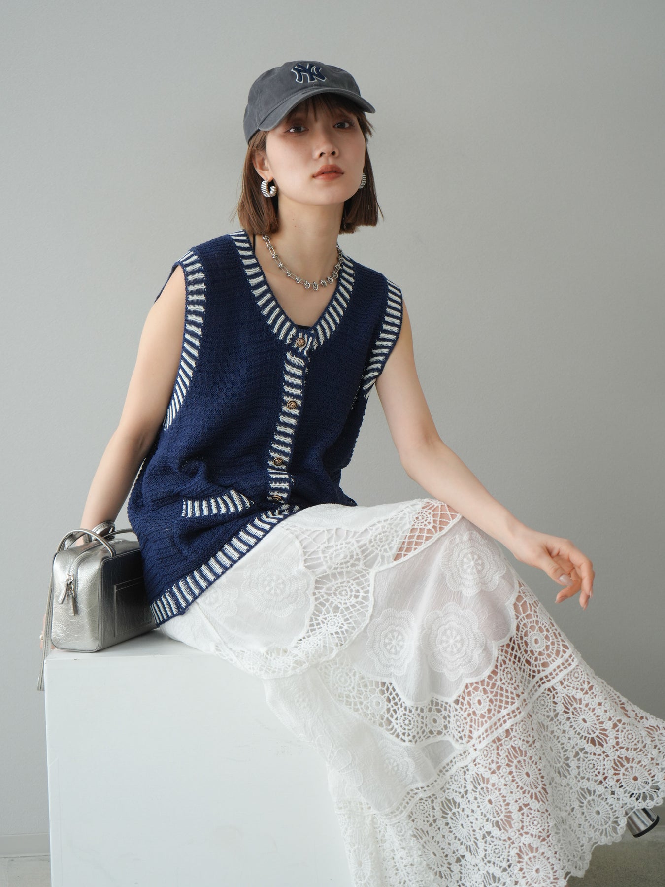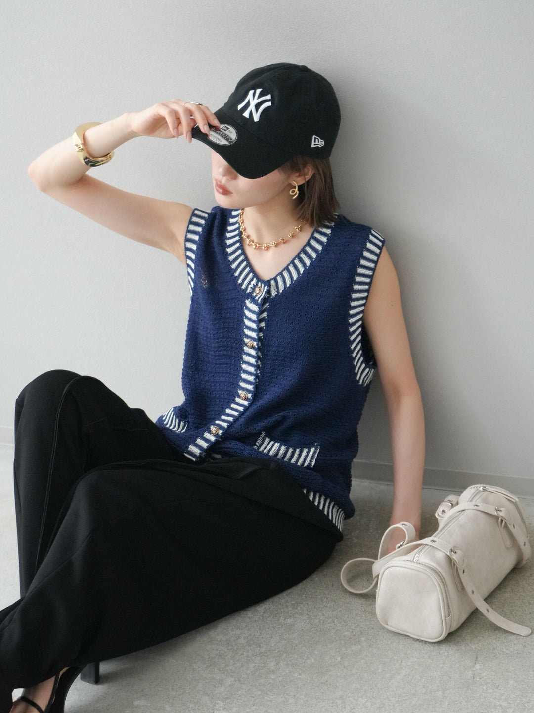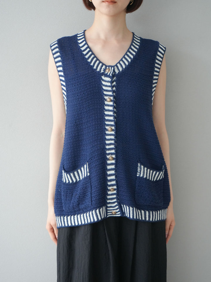 [予約]ポイントラインサマーニットベスト/ネイビー