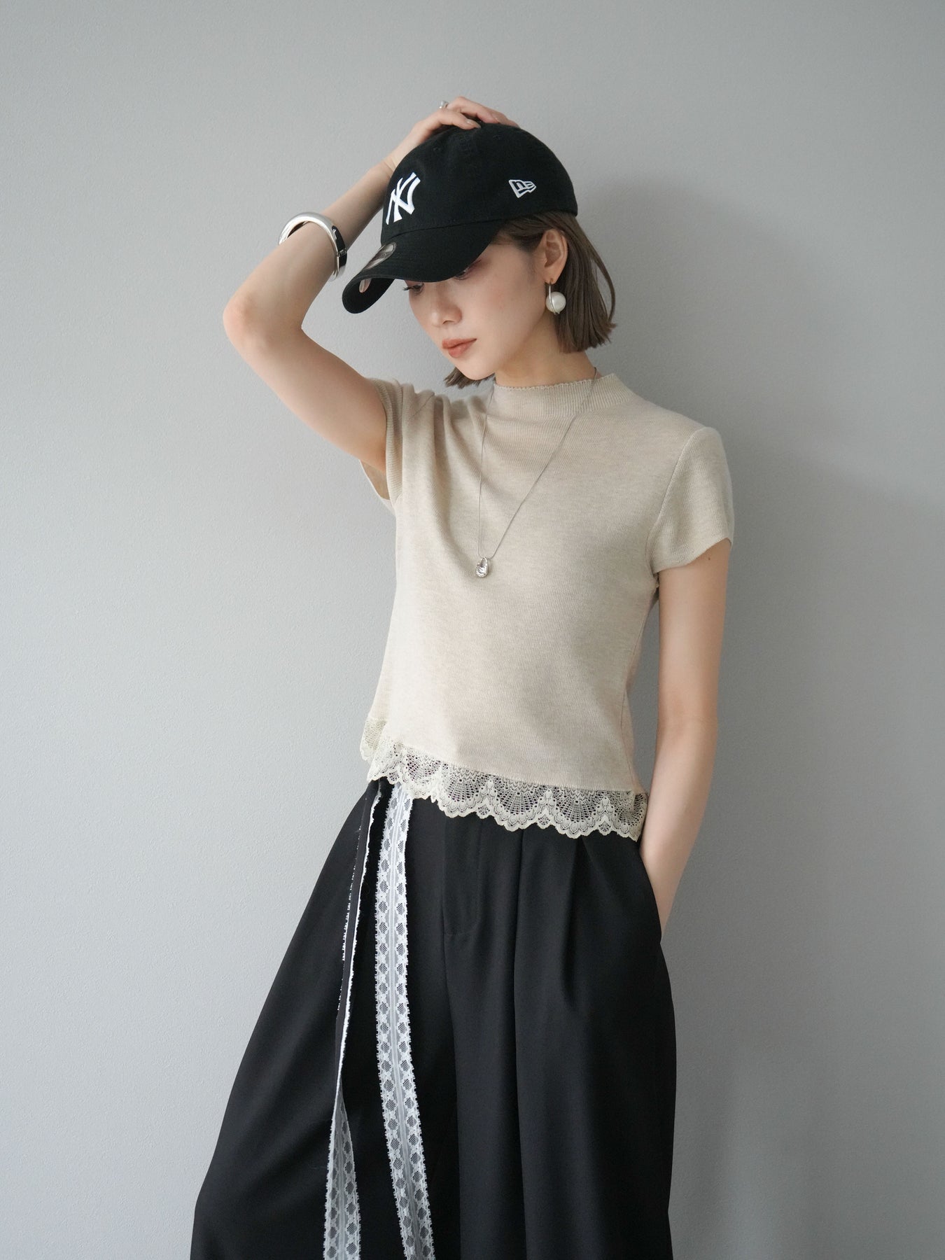 [予約]裾レースプチネックニットトップスに関連する商品を探す↓