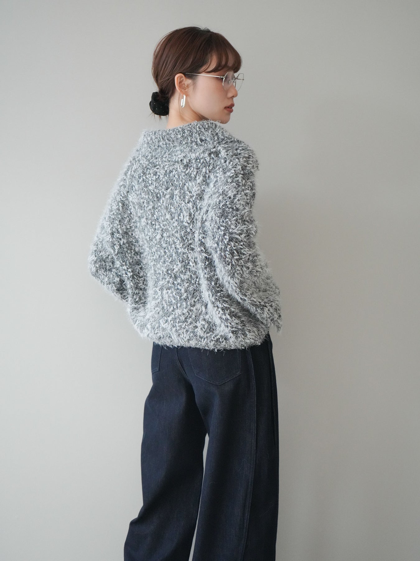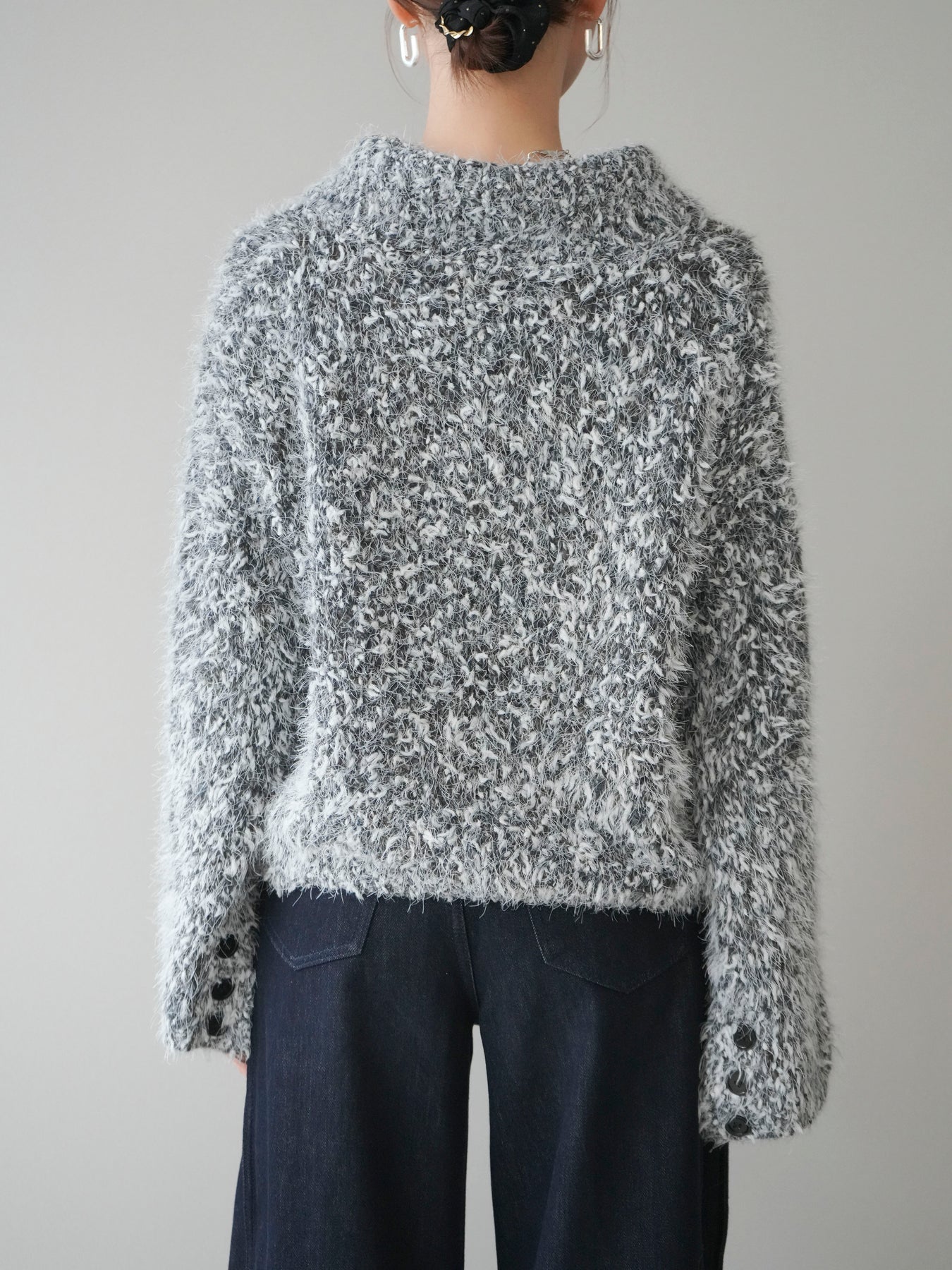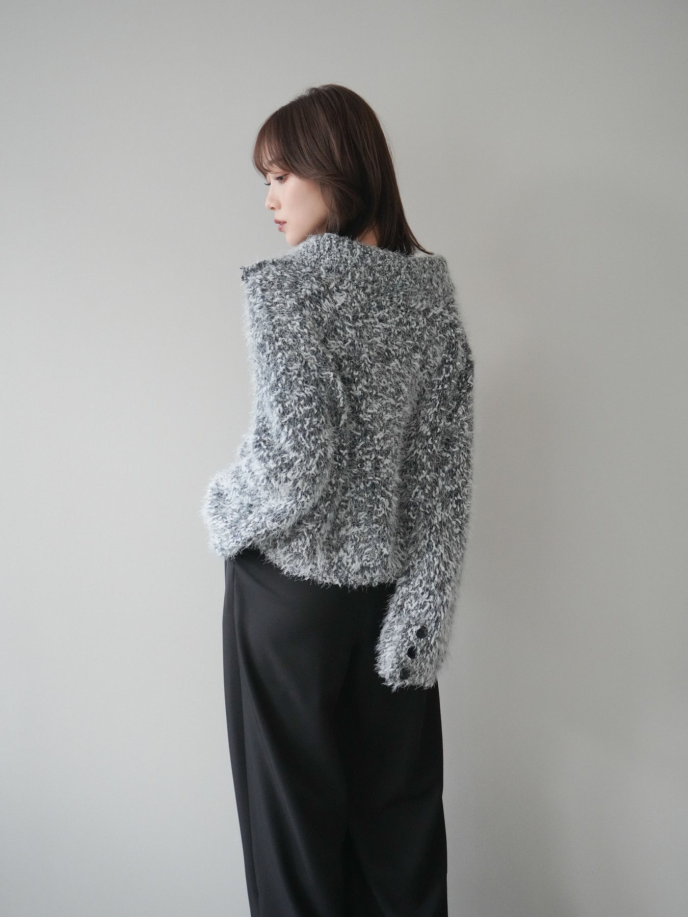 [予約]ミックスシャギージップニットカーディガン/black
