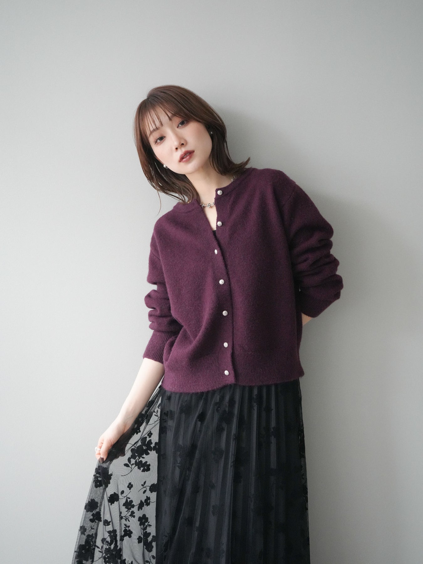 アンティーク調のボタンをアクセントにした、上品な雰囲気漂うニットカーディガン。柔らかな風合いのニットがふんわりと身体を包み、程よいゆとりのあるシルエットがリラックス感と女性らしい抜け感を両立します。シンプルなデザインながら、クラシックムード漂うボタンがさりげない存在感をプラスし、羽織りとしてもトップス代わりとしても使いやすい万能な一枚。デニムやスカートなど幅広いアイテムと相性が良く、デイリーに活躍してくれます。 ※ボトムス、キャミソール(インナー)以外の商品は一律でインナーは付属していません。
