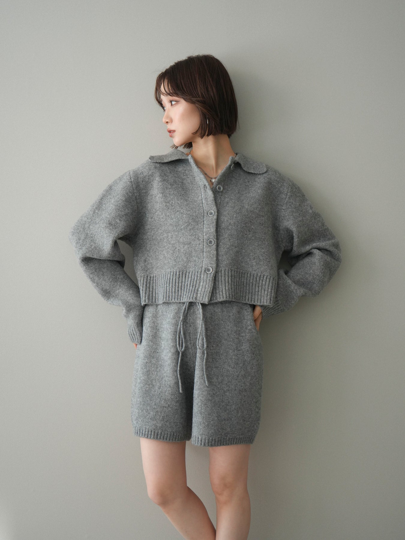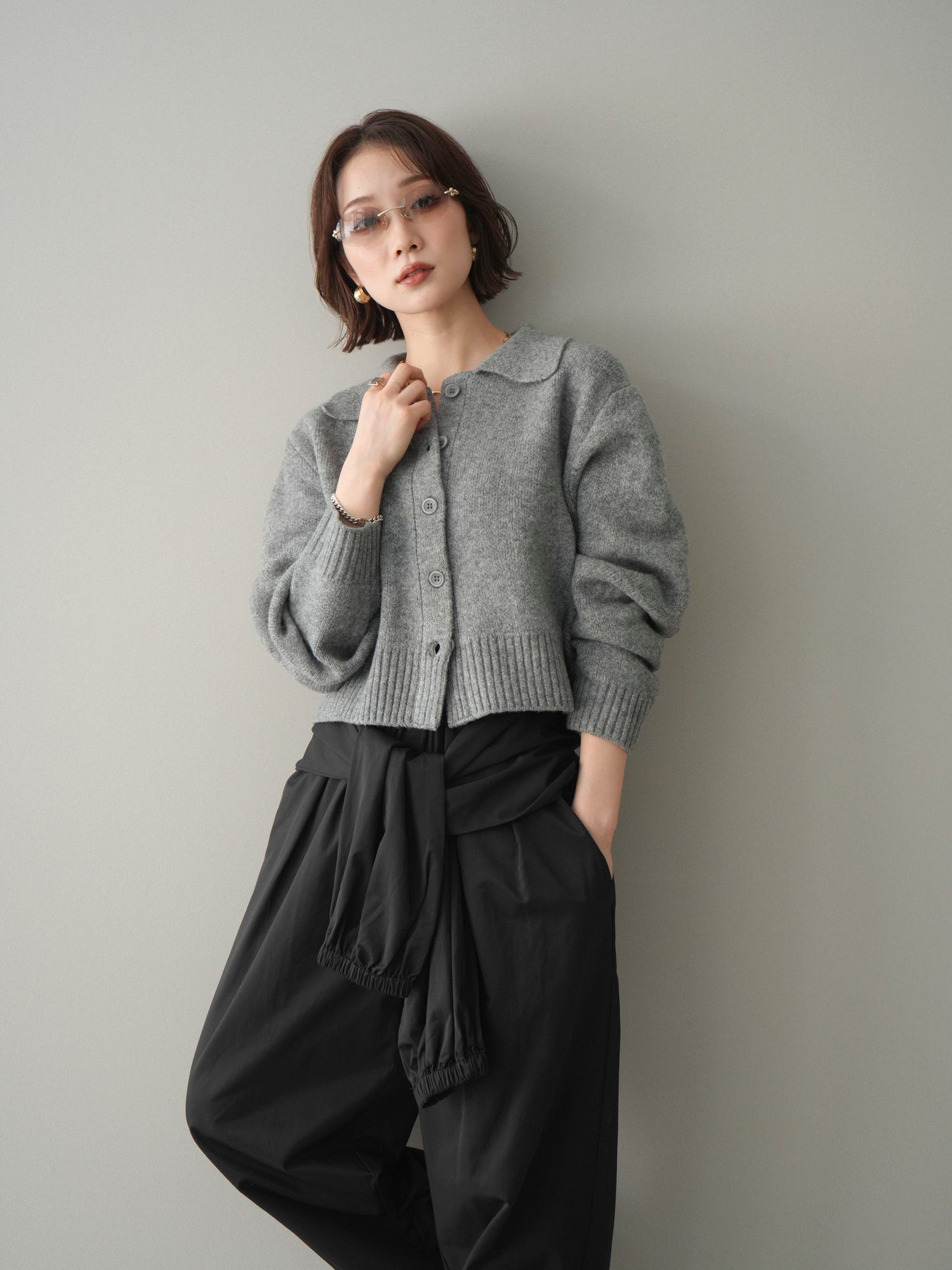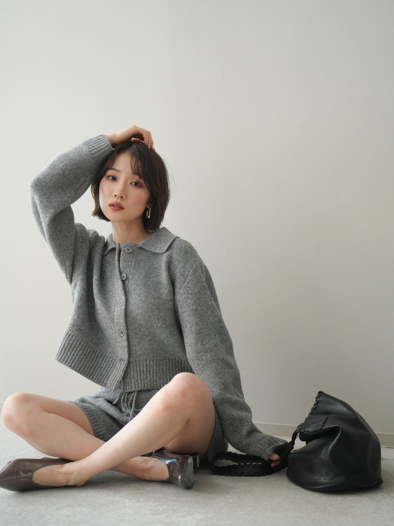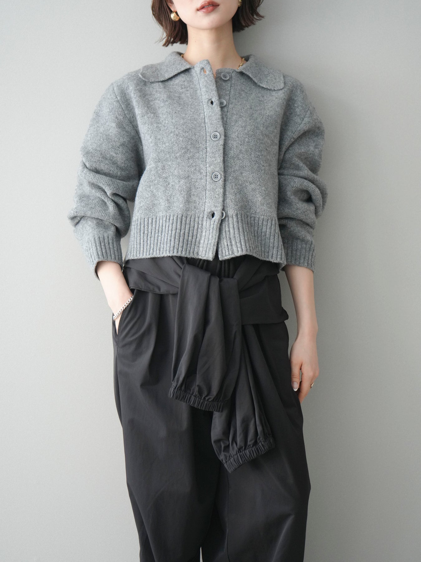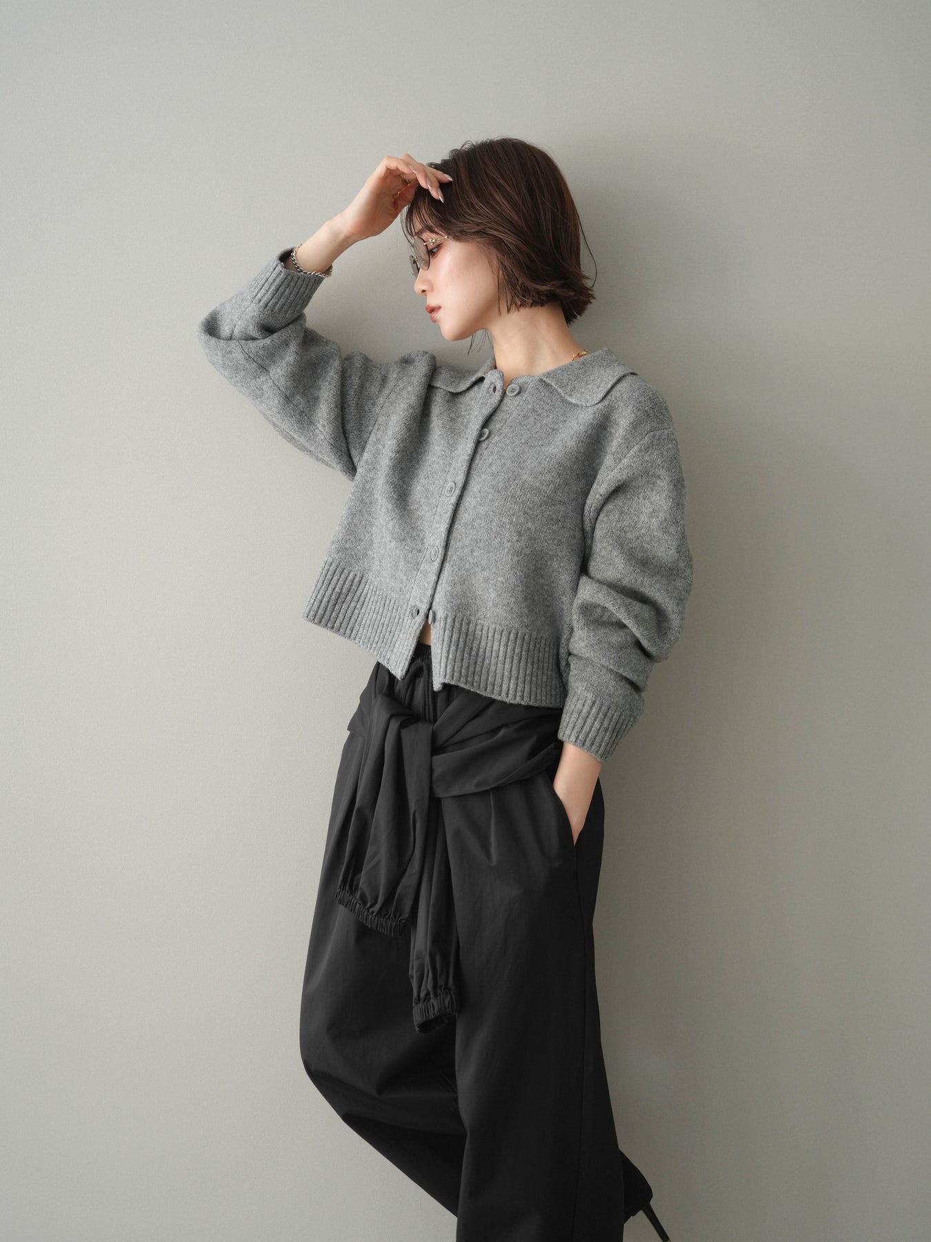 [予約]メランジニット襟付きクロップドカーディガン/gray